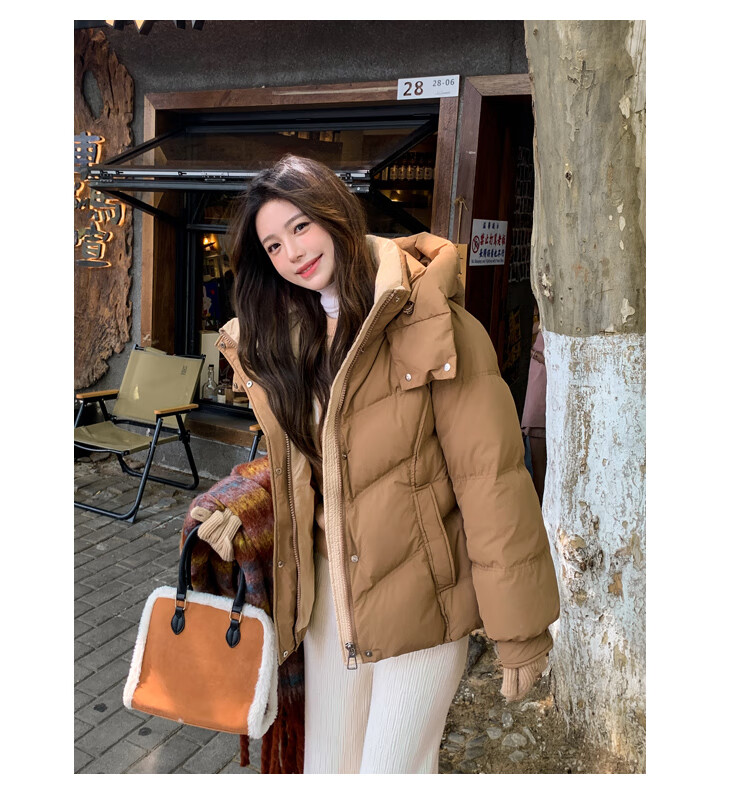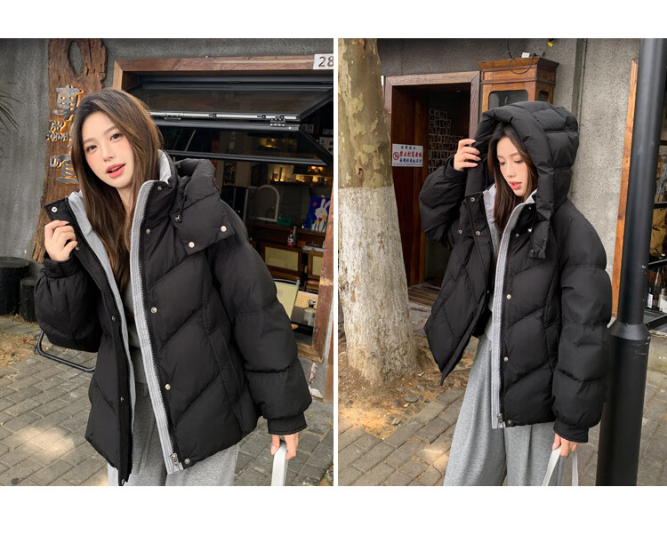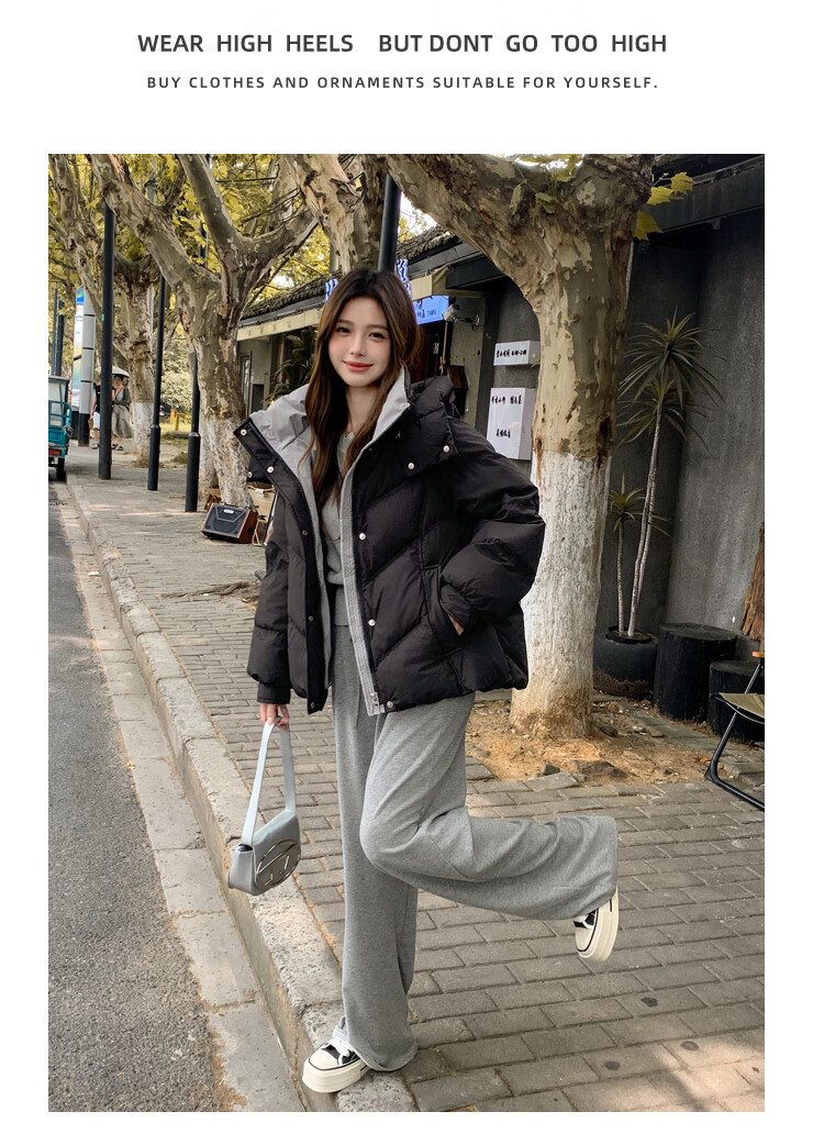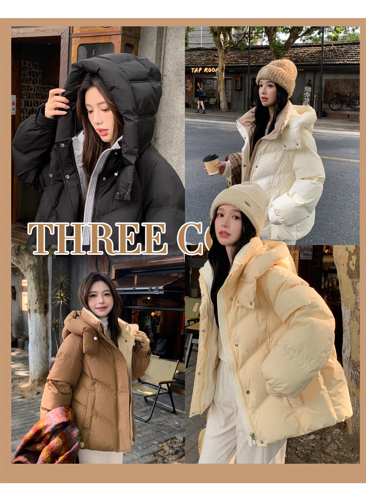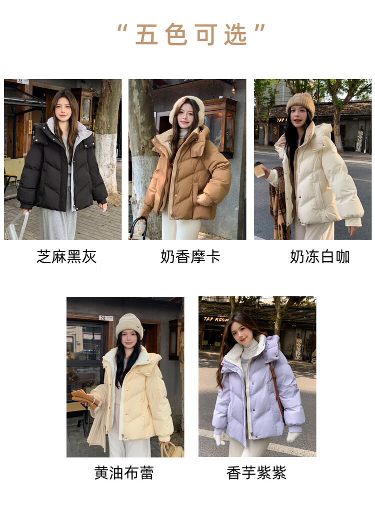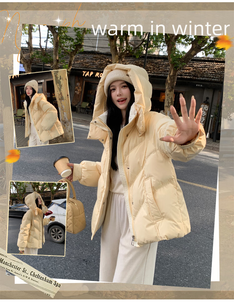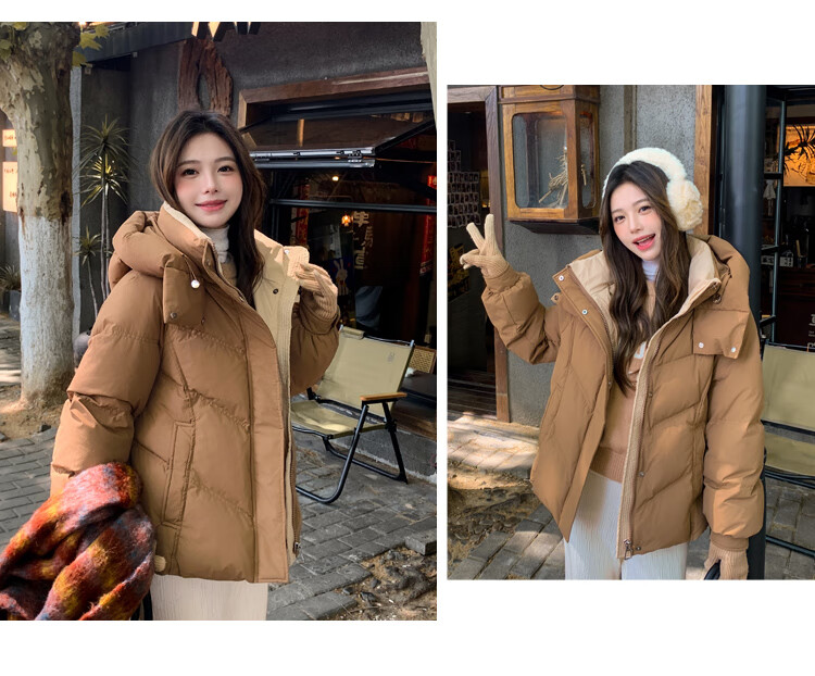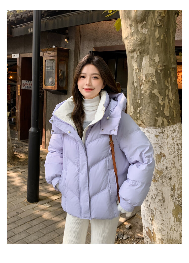 ETLK new winter style simple and fashionable color matching thickened down jacket women's short loose style white duck down jacket Maillard white new national standard 90 down S 90-120 catties (small people must take the card number smaller)