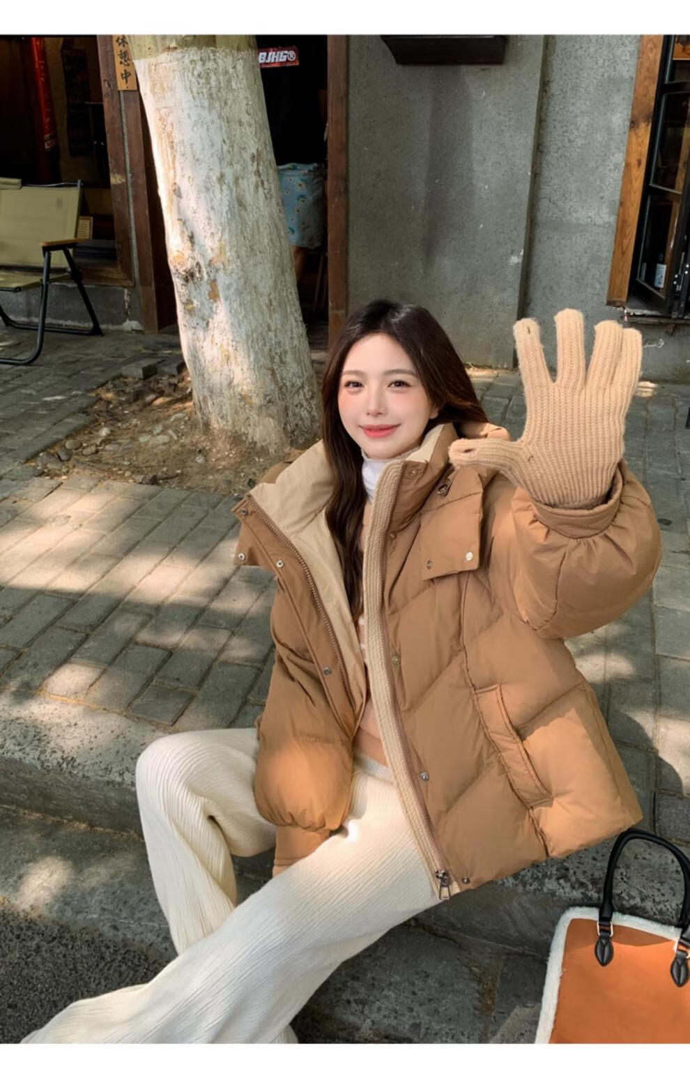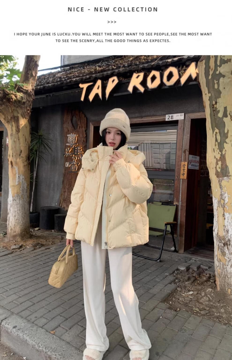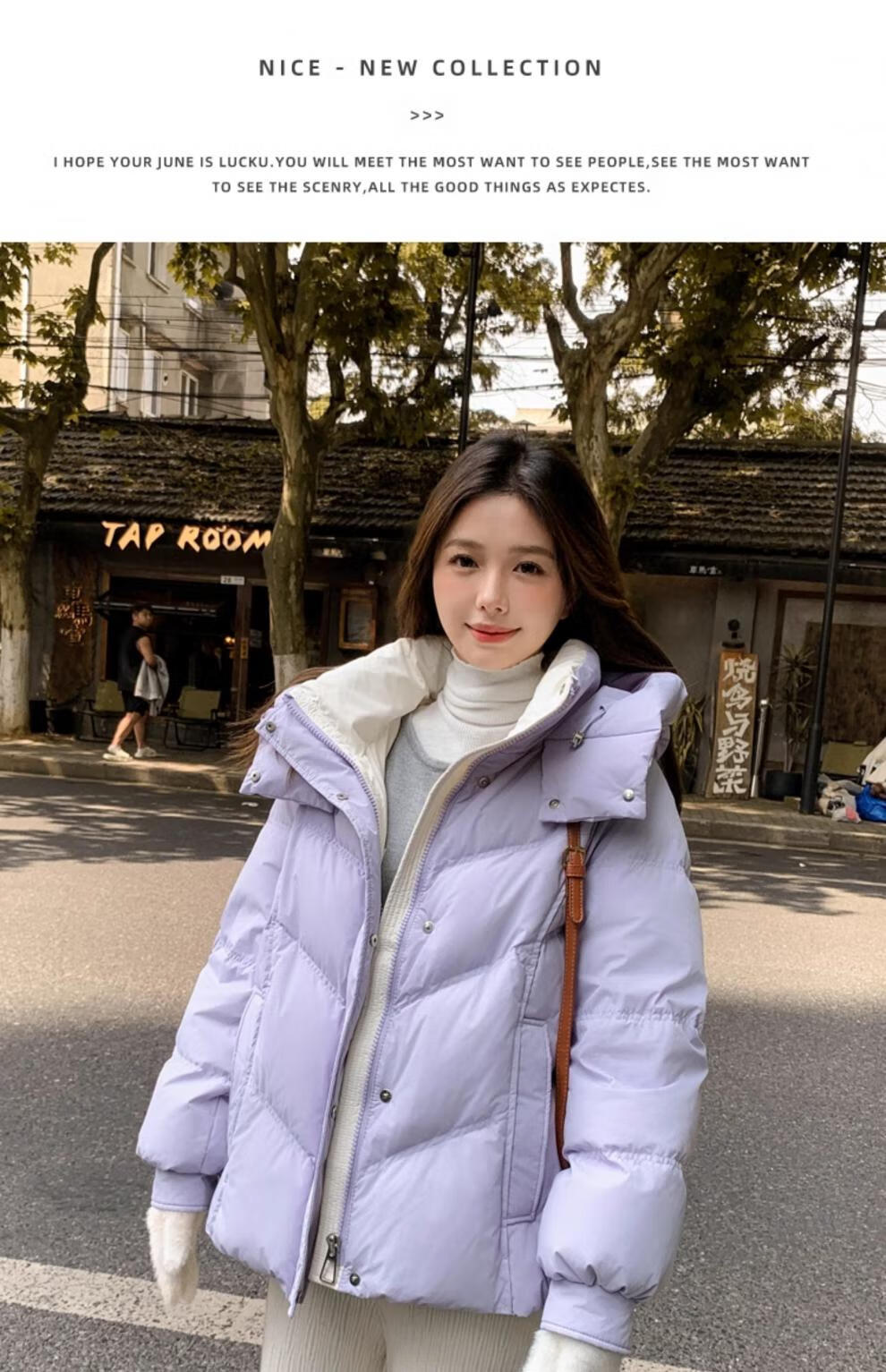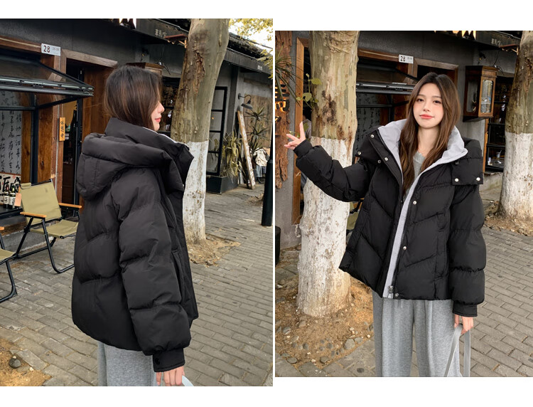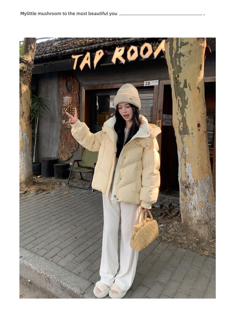 ETLK new winter style simple and fashionable color matching thickened down jacket women's short loose style white duck down jacket Maillard white new national standard 90 down S 90-120 catties (small people must take the card number smaller)
