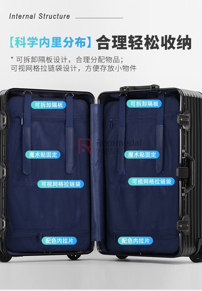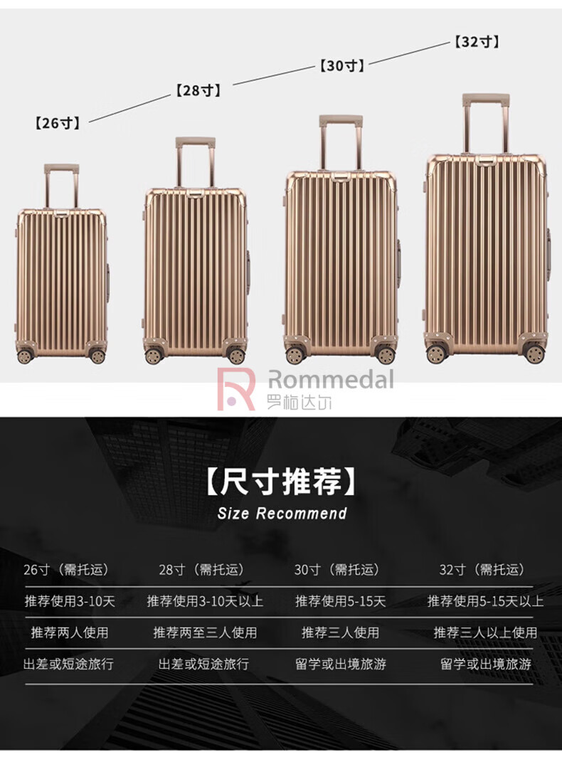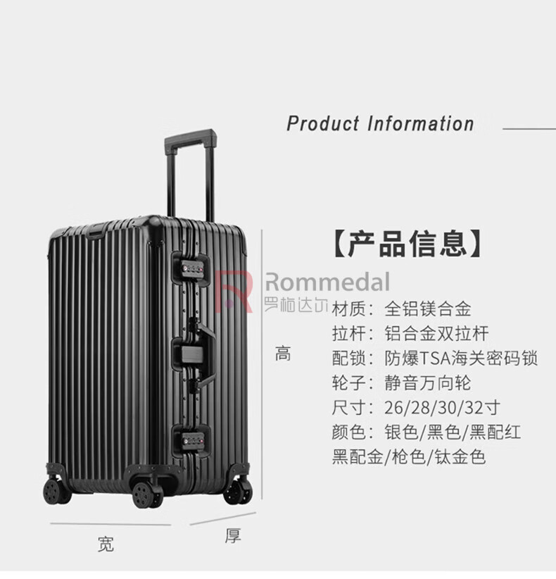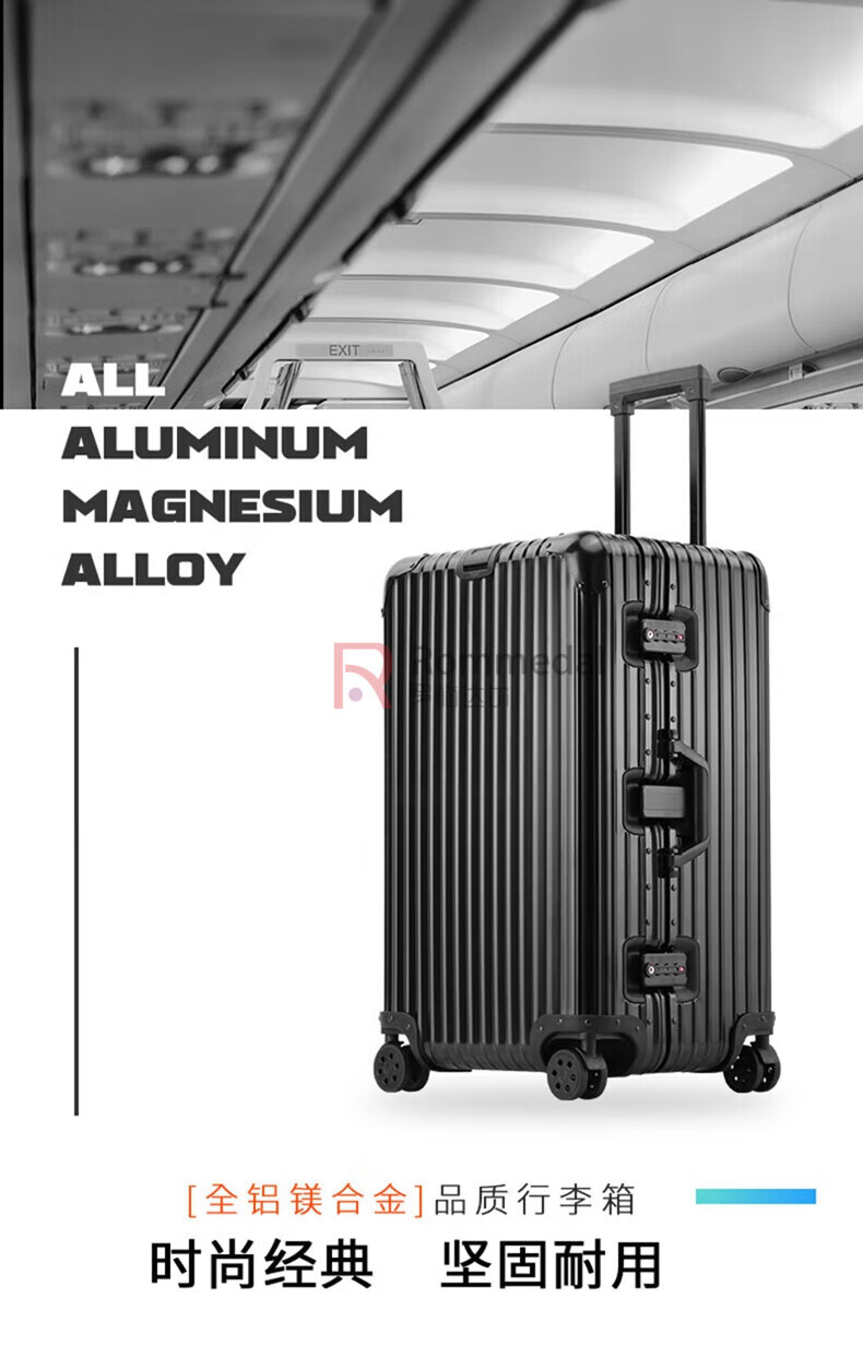 Rommedal high-end all-aluminum sports version thickened large-capacity suitcase aluminum frame aluminum-magnesium alloy trolley case business trip suitcase silver sports version increased capacity 28 inches