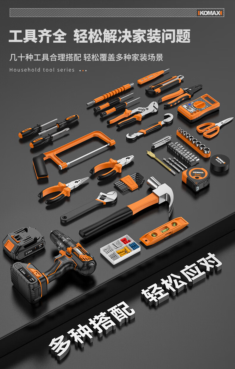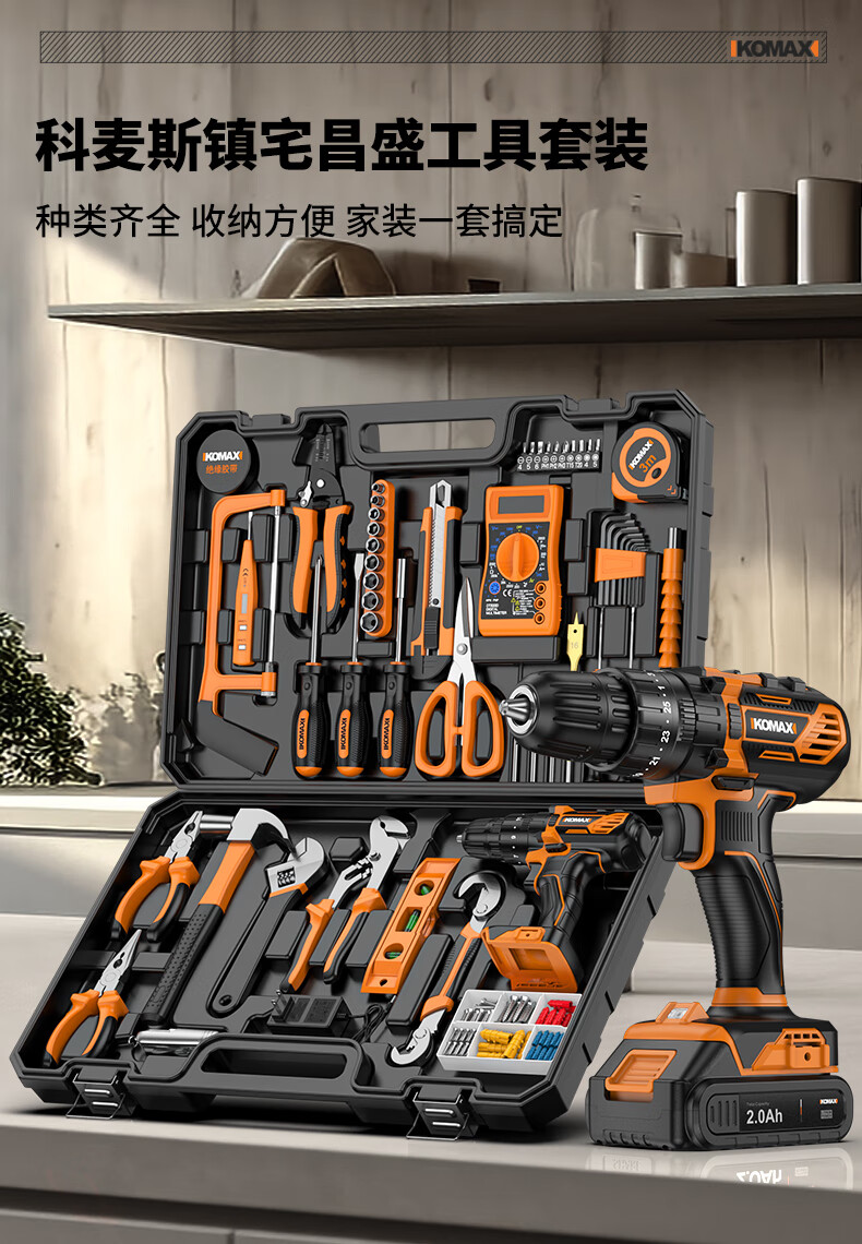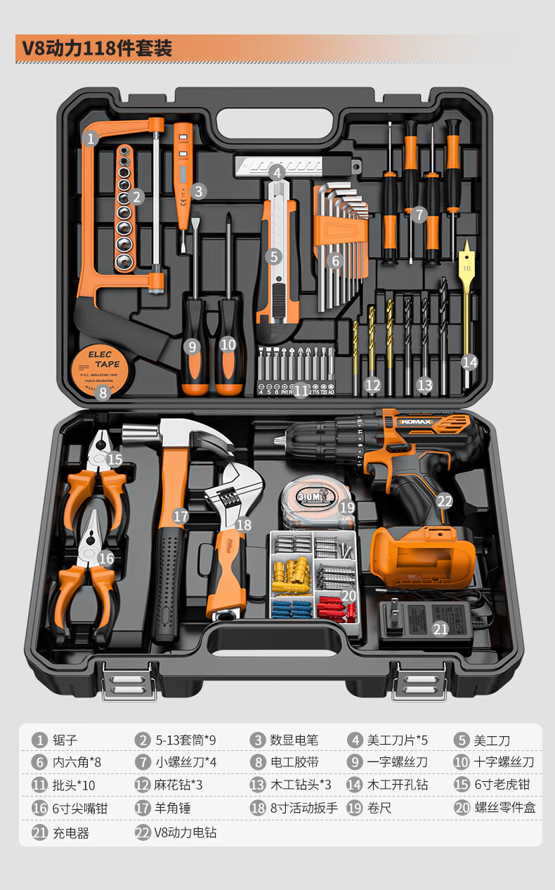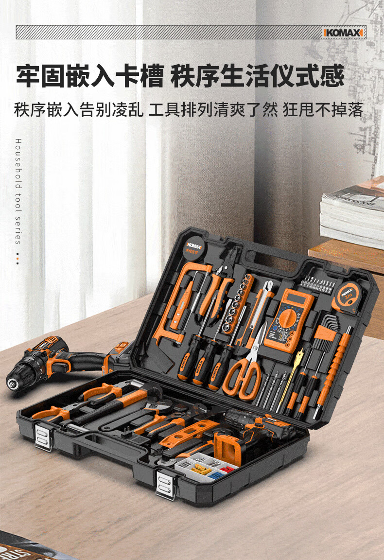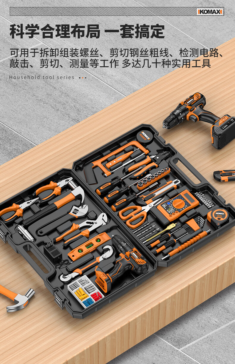 KOMAX rechargeable electric drill electric screwdriver lithium electric drill household tool box full set repair combination hardware tool set W4 power 1 battery/118 piece set