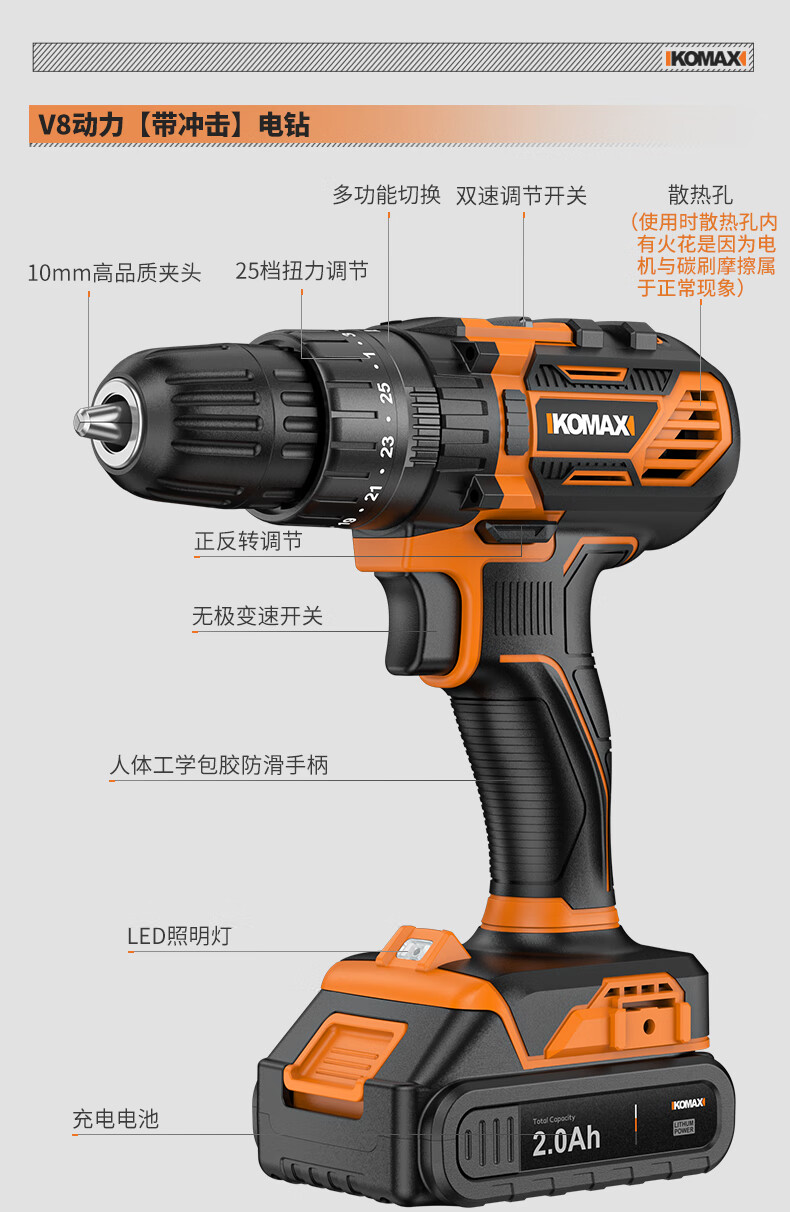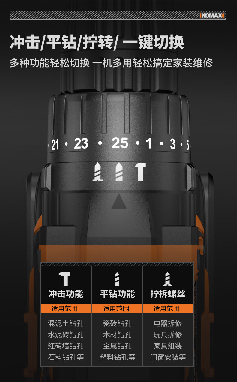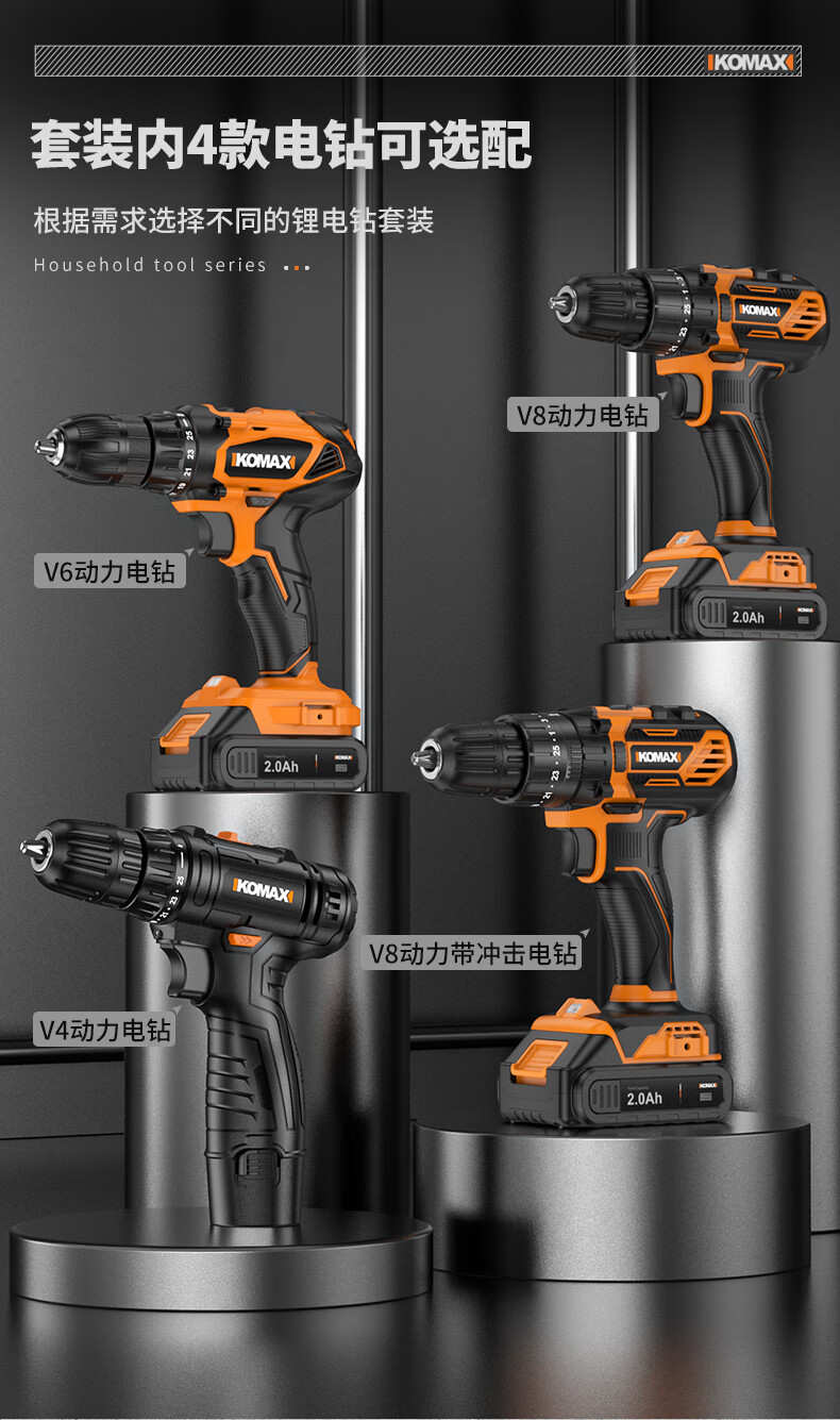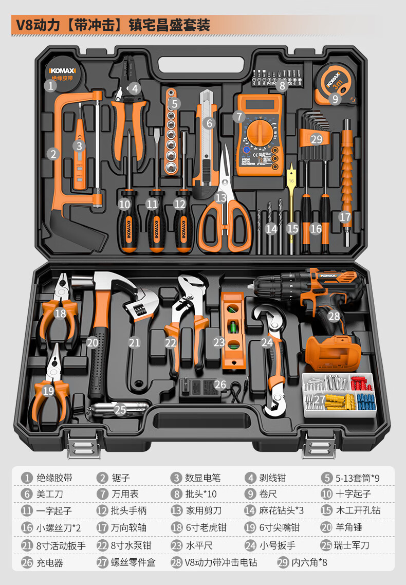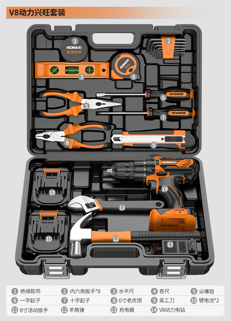KOMAX rechargeable electric drill electric screwdriver lithium electric drill household tool box full set repair combination hardware tool set W4 power 1 battery/118 piece set