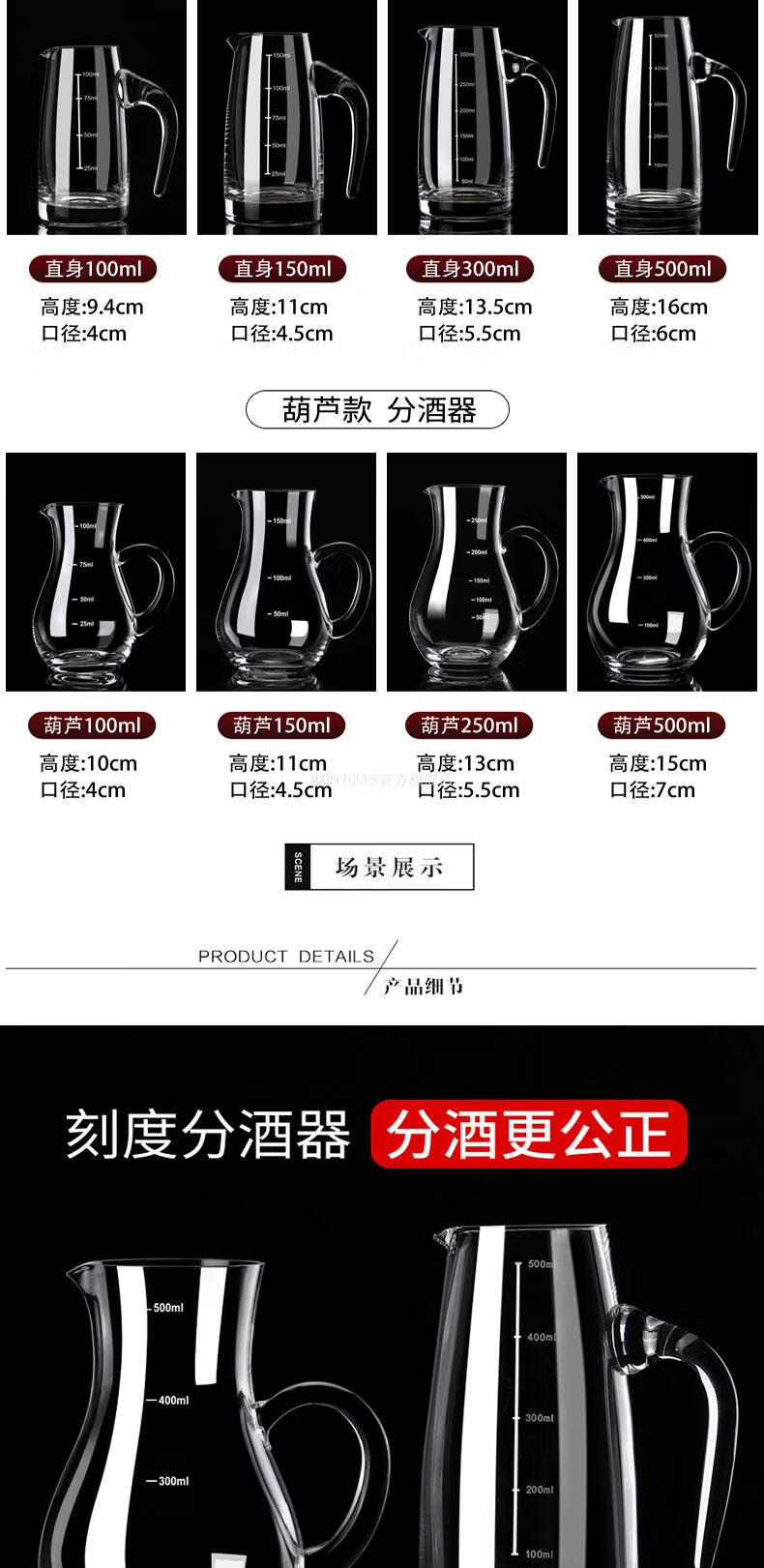 DSHCOTE white wine dispenser red wine decanter household wine jug fair cup crystal glass with scale wine cup set 12 100ml wine dispenser + 12 hole large hole bamboo rack