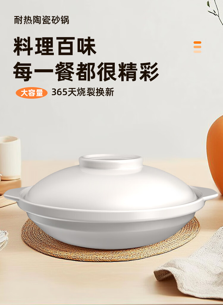 Kangshu Clay Pot Household White Shallow Pot Dry-cooked Uncoated Gas Can Use High Temperature Resistant Claypot Rice Special Clay Pot Stew Pot Kangshu Yunxi White Shallow Pot Suitable for 3-5 People 2600ml