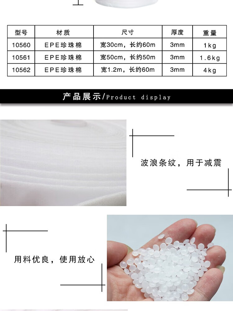 Ansery pearl cotton roll 50cm 50m thick 3mm pearl cotton shock-absorbing filled foam cotton waterproof and moisture-proof pearl cotton white 10561