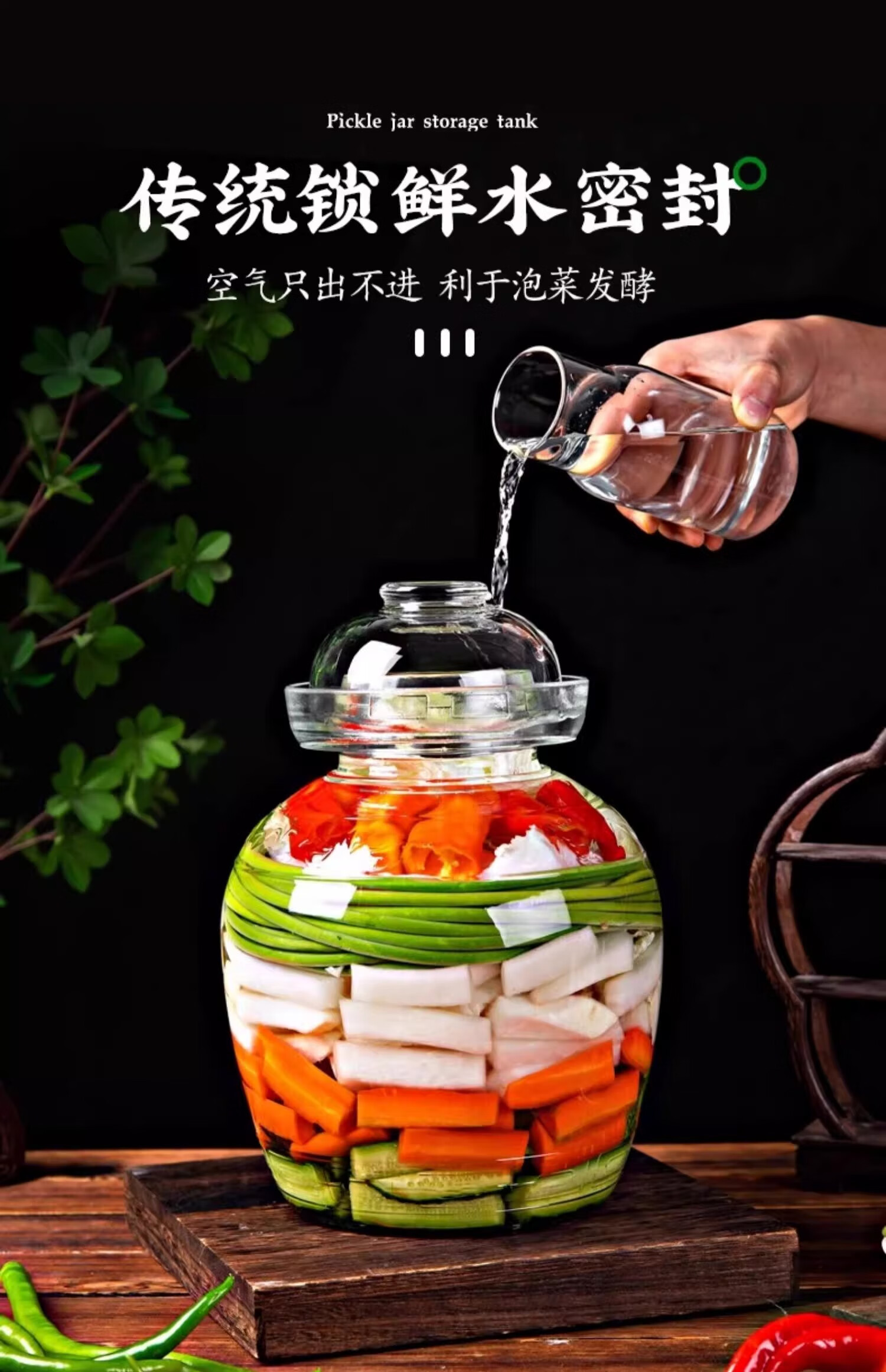 Luyu Sichuan pickle jar household glass jar sealed jar pickle jar pickled sauerkraut special jar old-fashioned pickle jar 3 pounds Xiangyun style