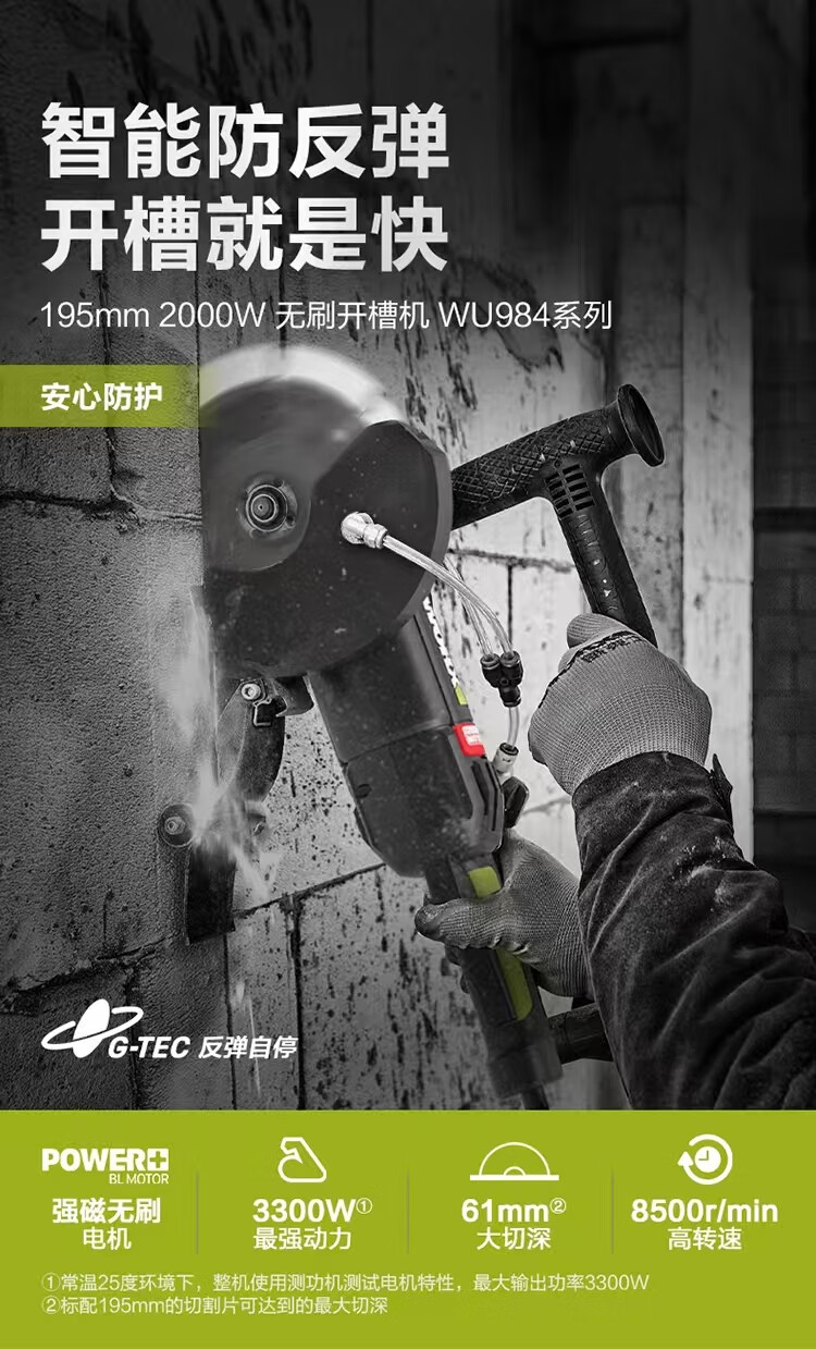 Vickers WU984 Brushless Grooving Machine Model 195 High Power Cutting Intelligent Safety Protection Water and Electricity Grooving Artifact Vickers WU984 Grooving Machine
