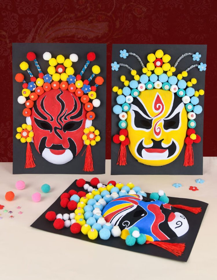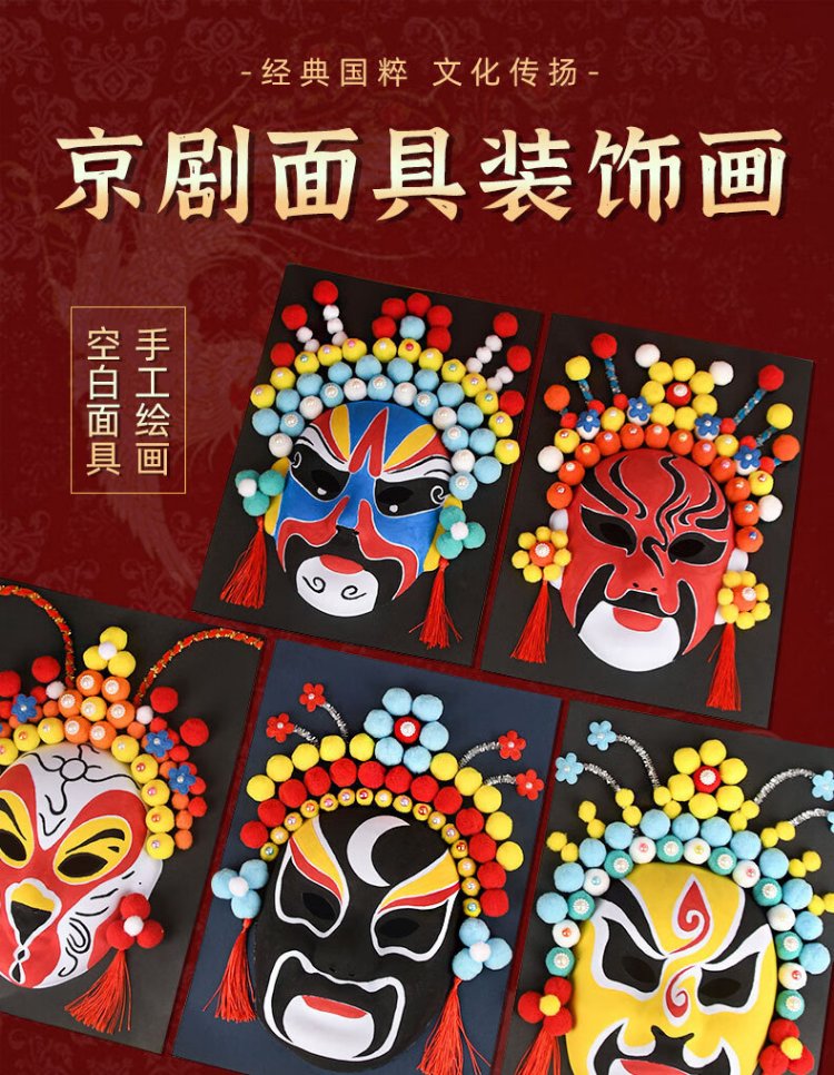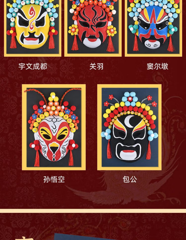 Inkstone seal handmade intangible cultural heritage Peking opera mask material national style culture diy kindergarten free hook line hand-painted Sichuan opera opera intangible cultural heritage handmade Peking opera mask random single style
