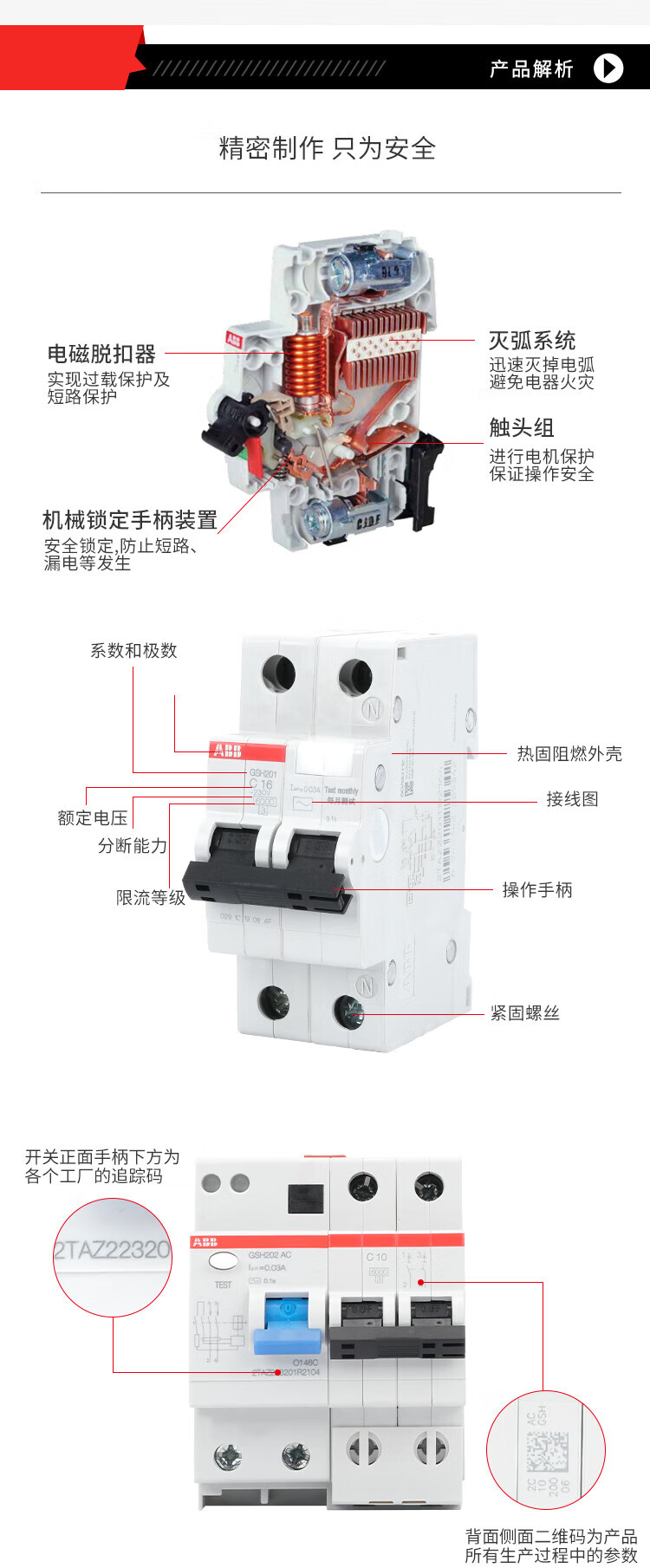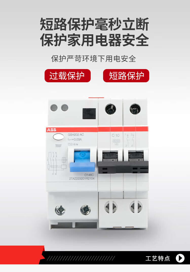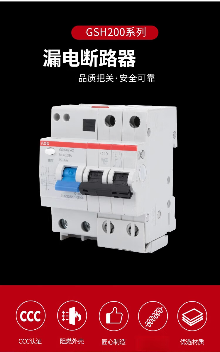 ABB leakage protector GSH201/204 air switch circuit breaker 1P/2P/4P household 6A/63A air conditioner 4p 20A