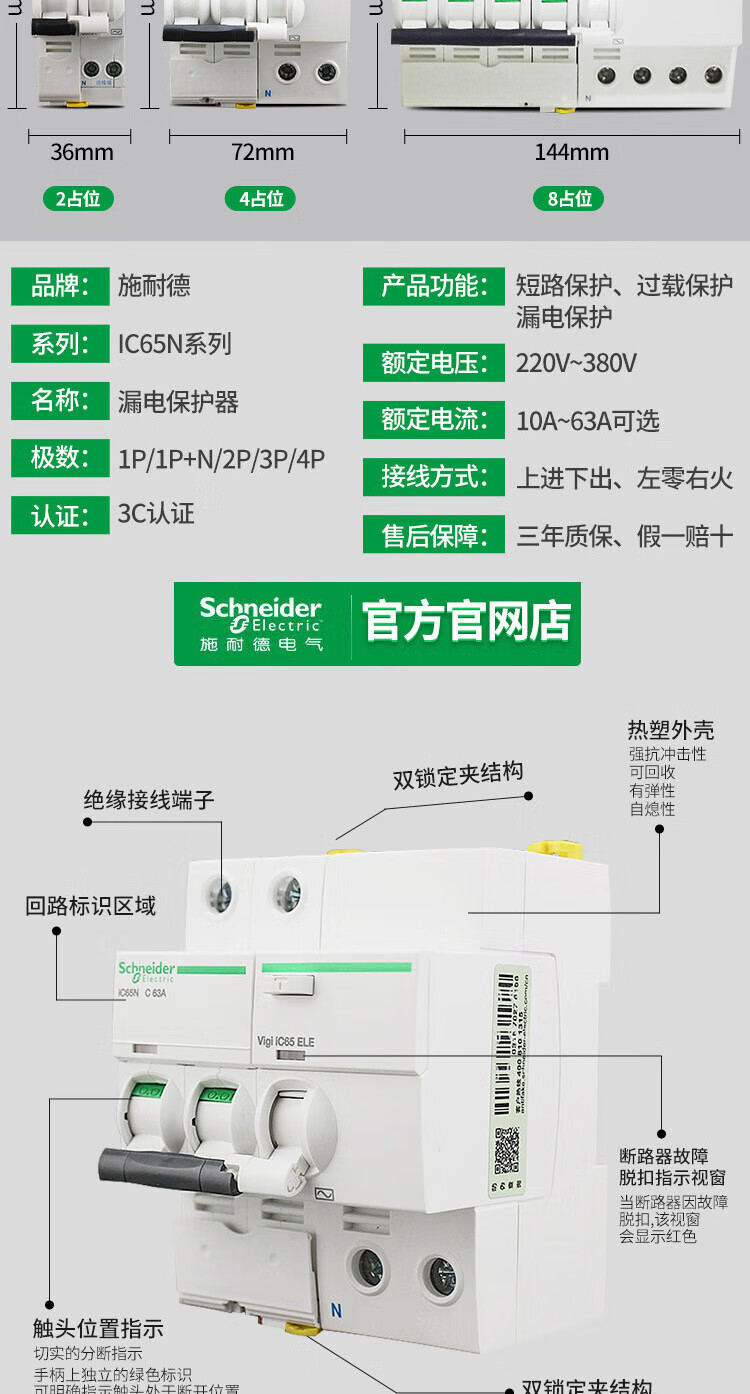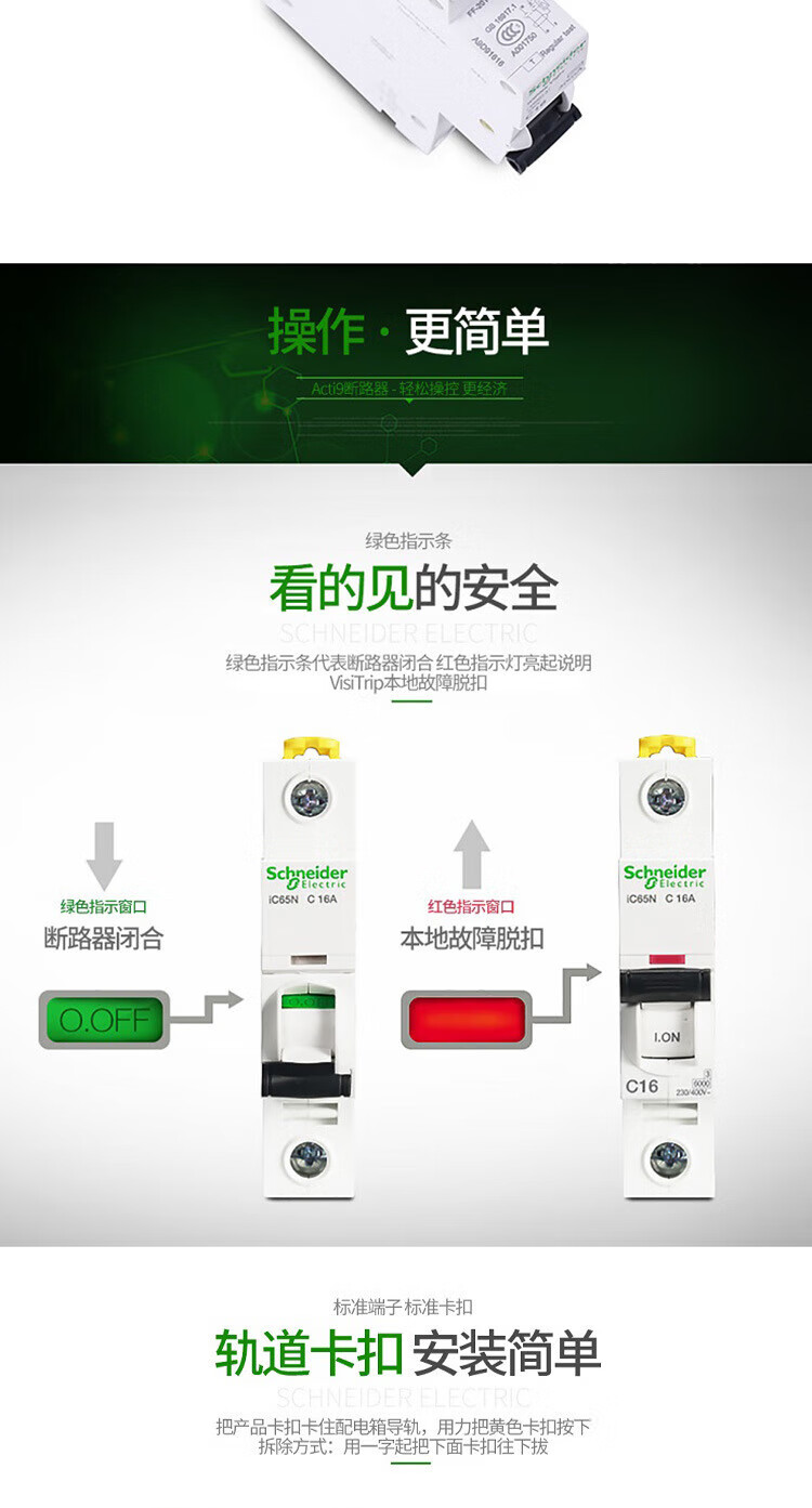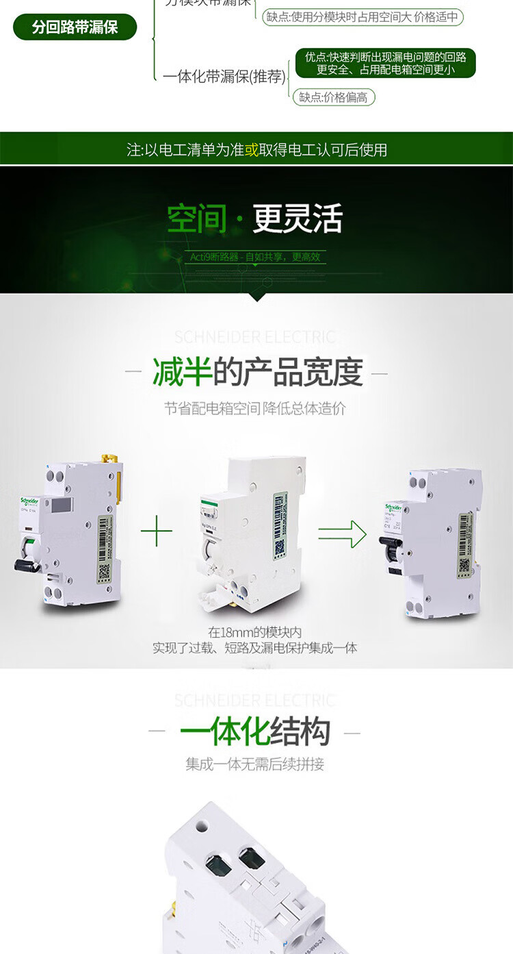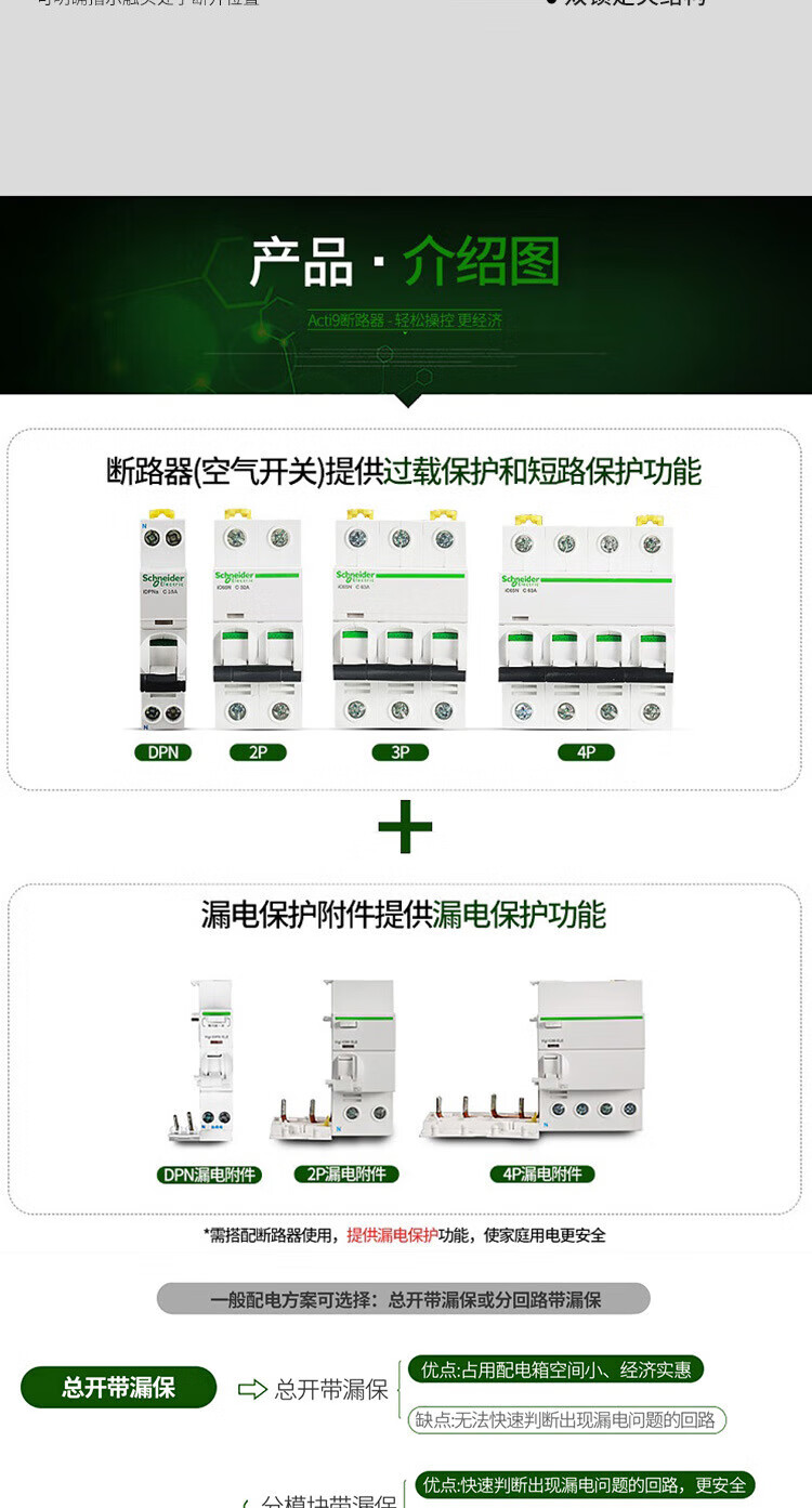 Schneider original A9 miniature circuit breaker vigi iC65N Type C with leakage protection 1P+N2P3P4P 20A 4p