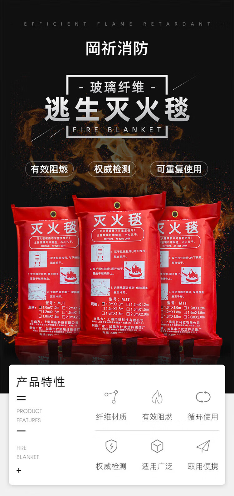 Fire blanket 1Mx1M fire blanket home kitchen commercial fiberglass fire retardant escape blanket