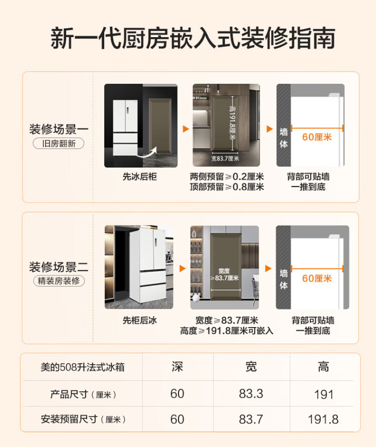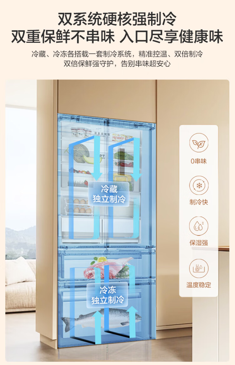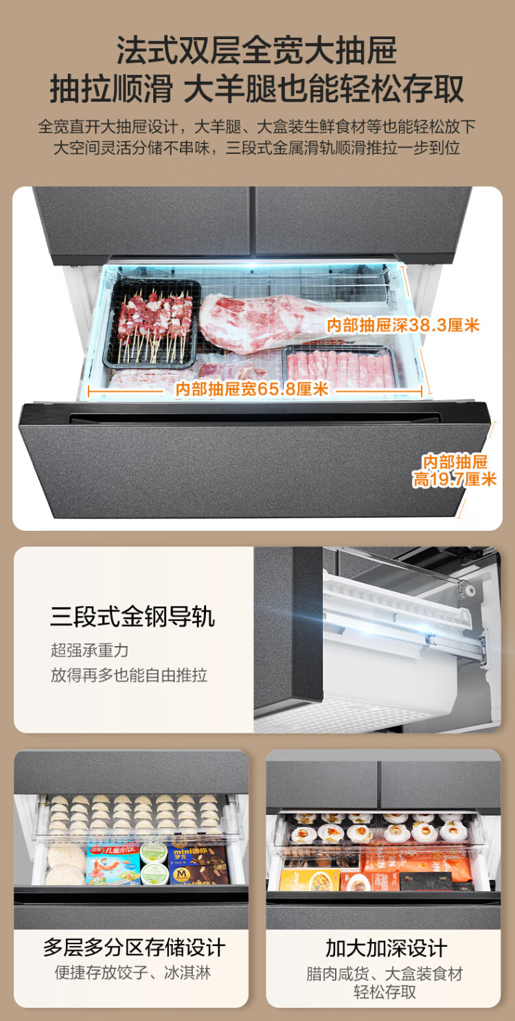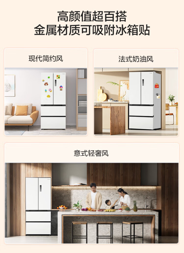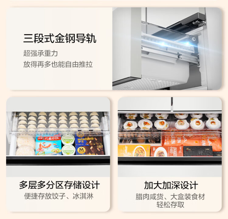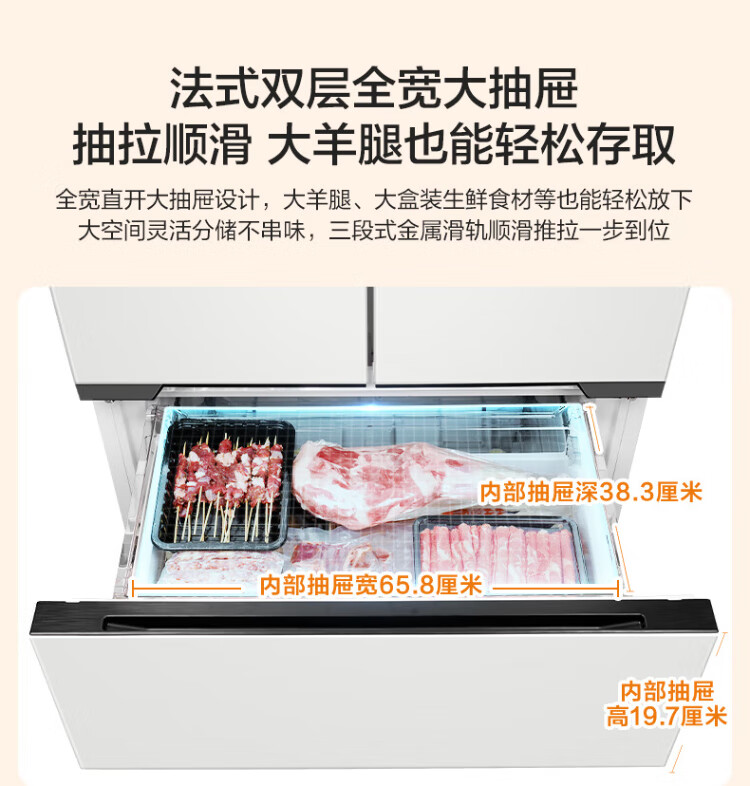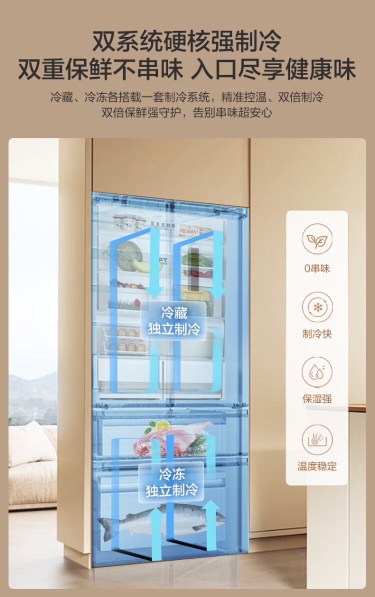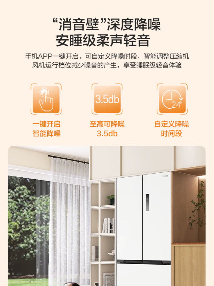 Midea Zhenxiang series 508 French multi-door 60cm ultra-thin zero-embedded four-door dual-system bottom cooling refrigerator subsidy instant discount BCD-508WUFPZM (E) Stardust Sand