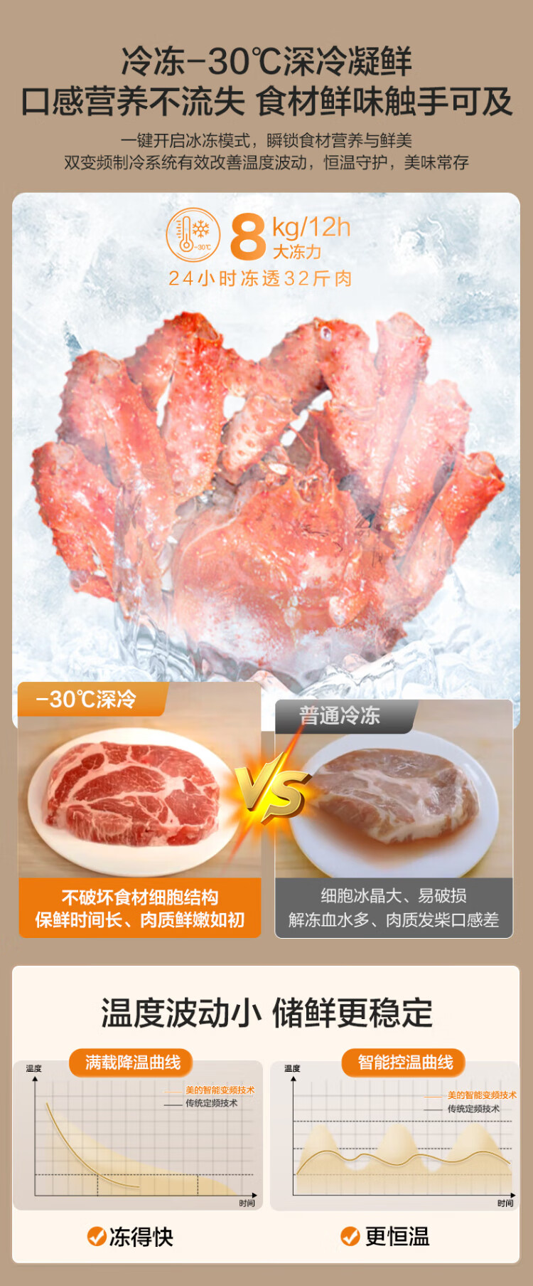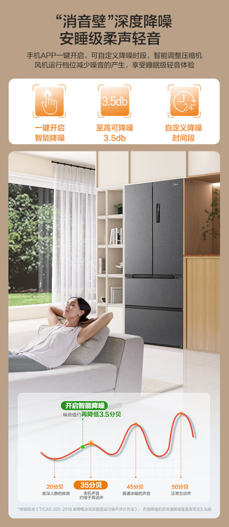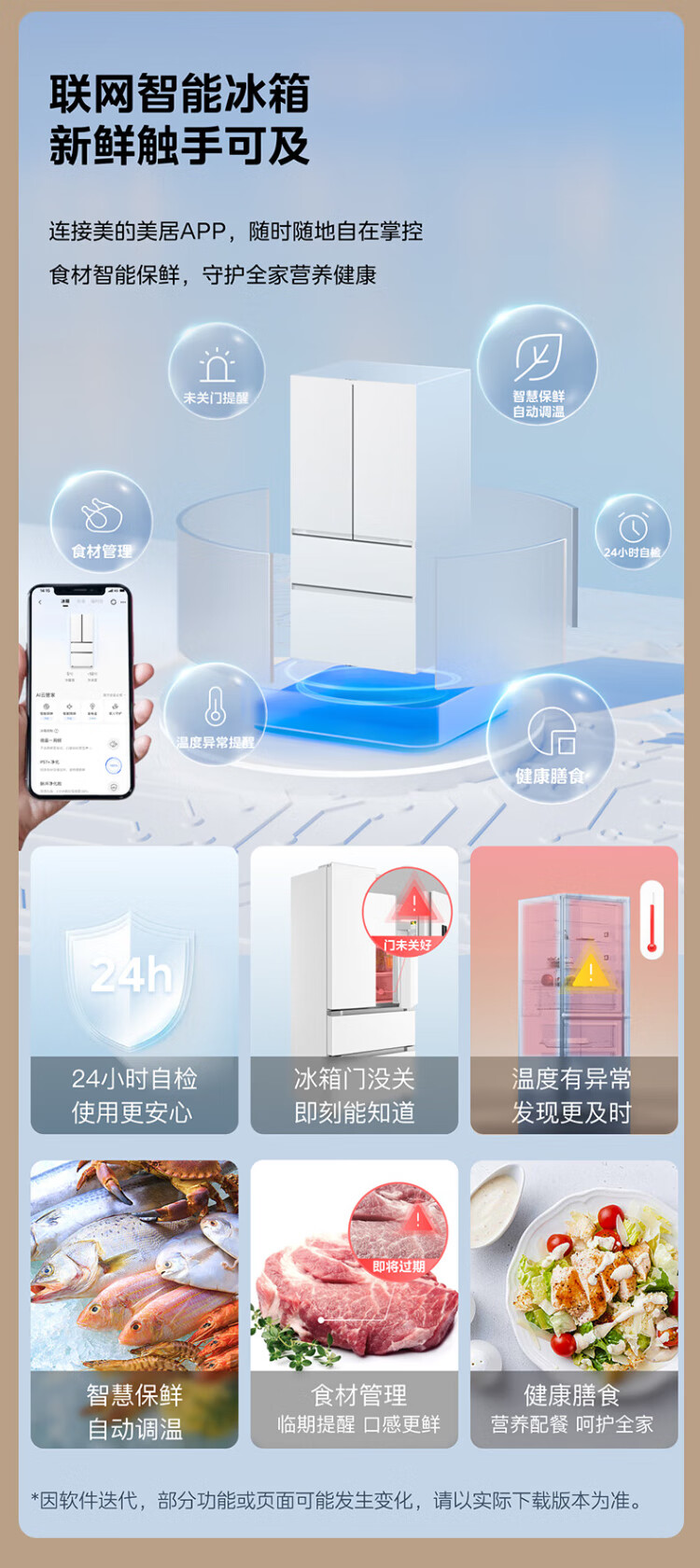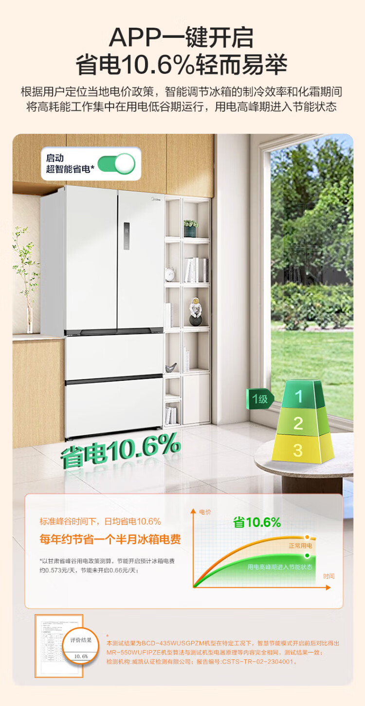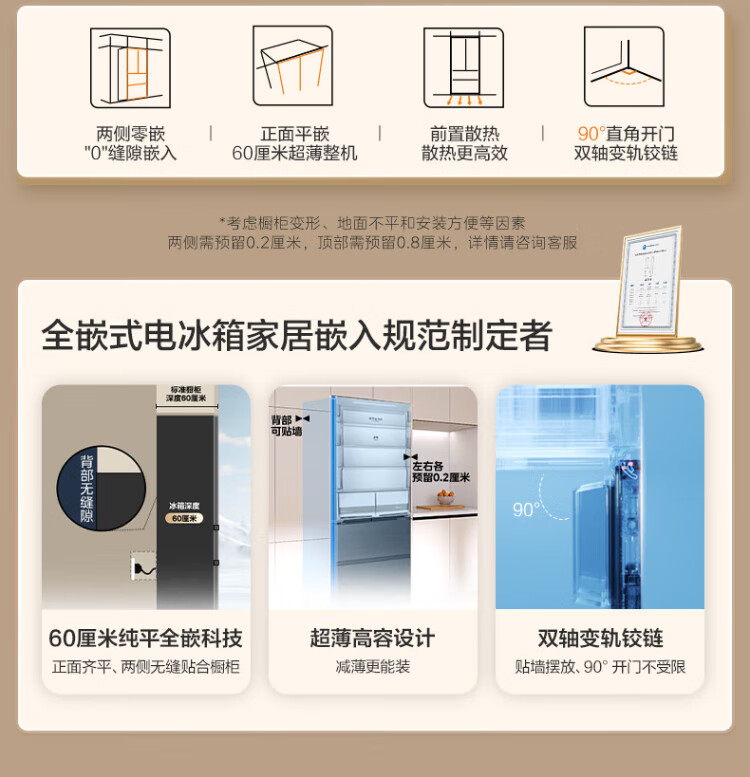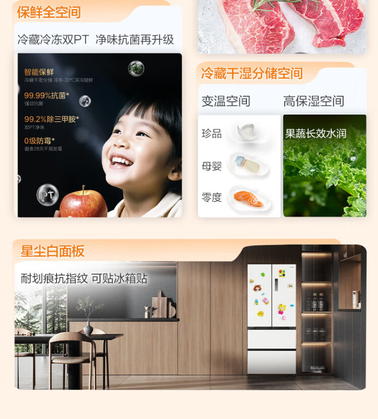 Midea Zhenxiang series 508 French multi-door 60cm ultra-thin zero-embedded four-door dual-system bottom cooling refrigerator subsidy instant discount BCD-508WUFPZM (E) Stardust Sand