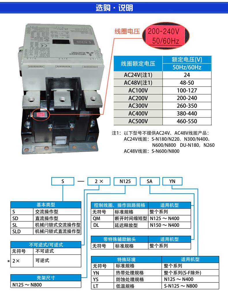 Mitsubishi contactor S-N125 S-N150 S-N180/S-N220 S-N600AB S-N600AB