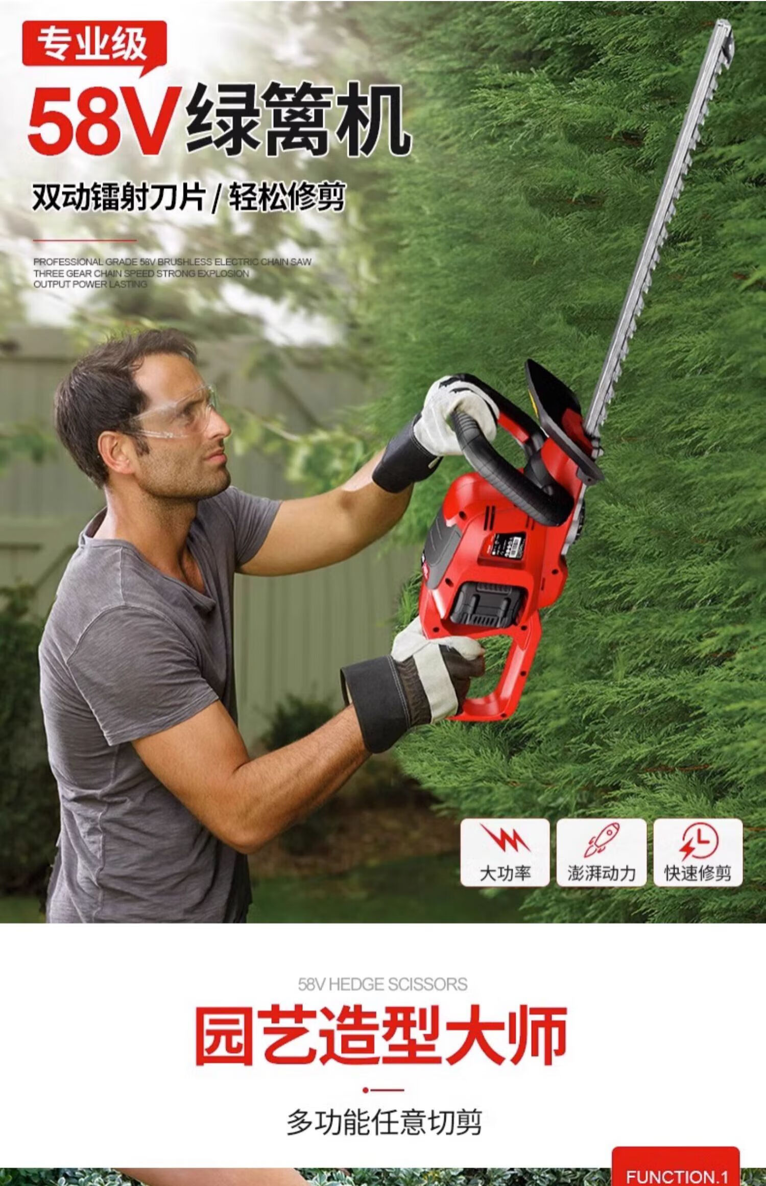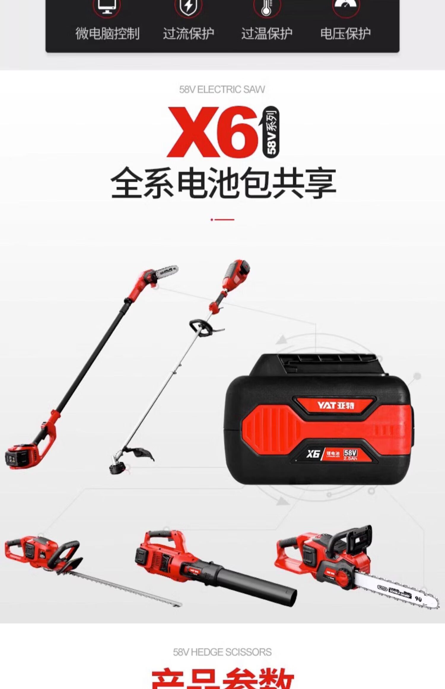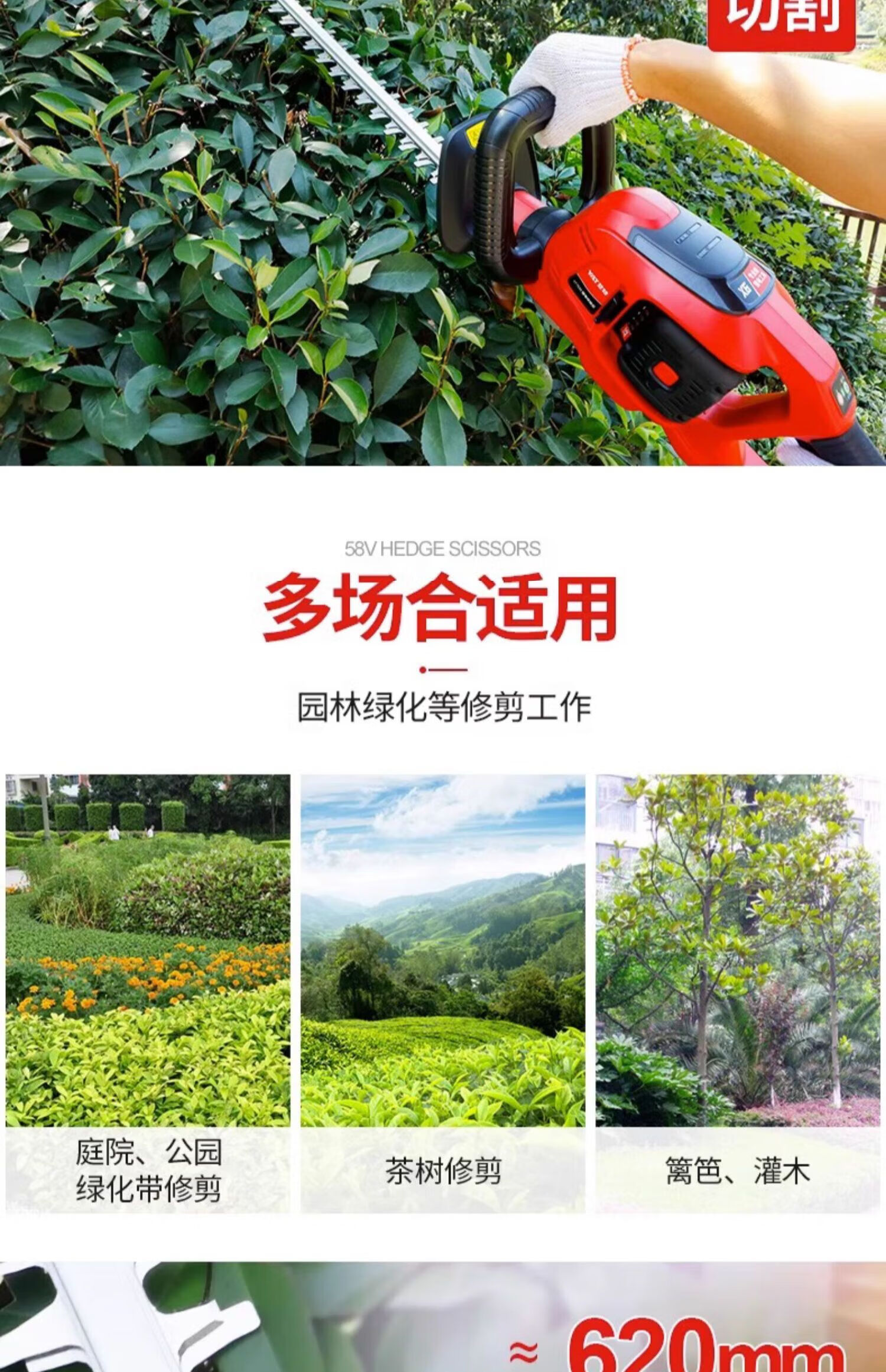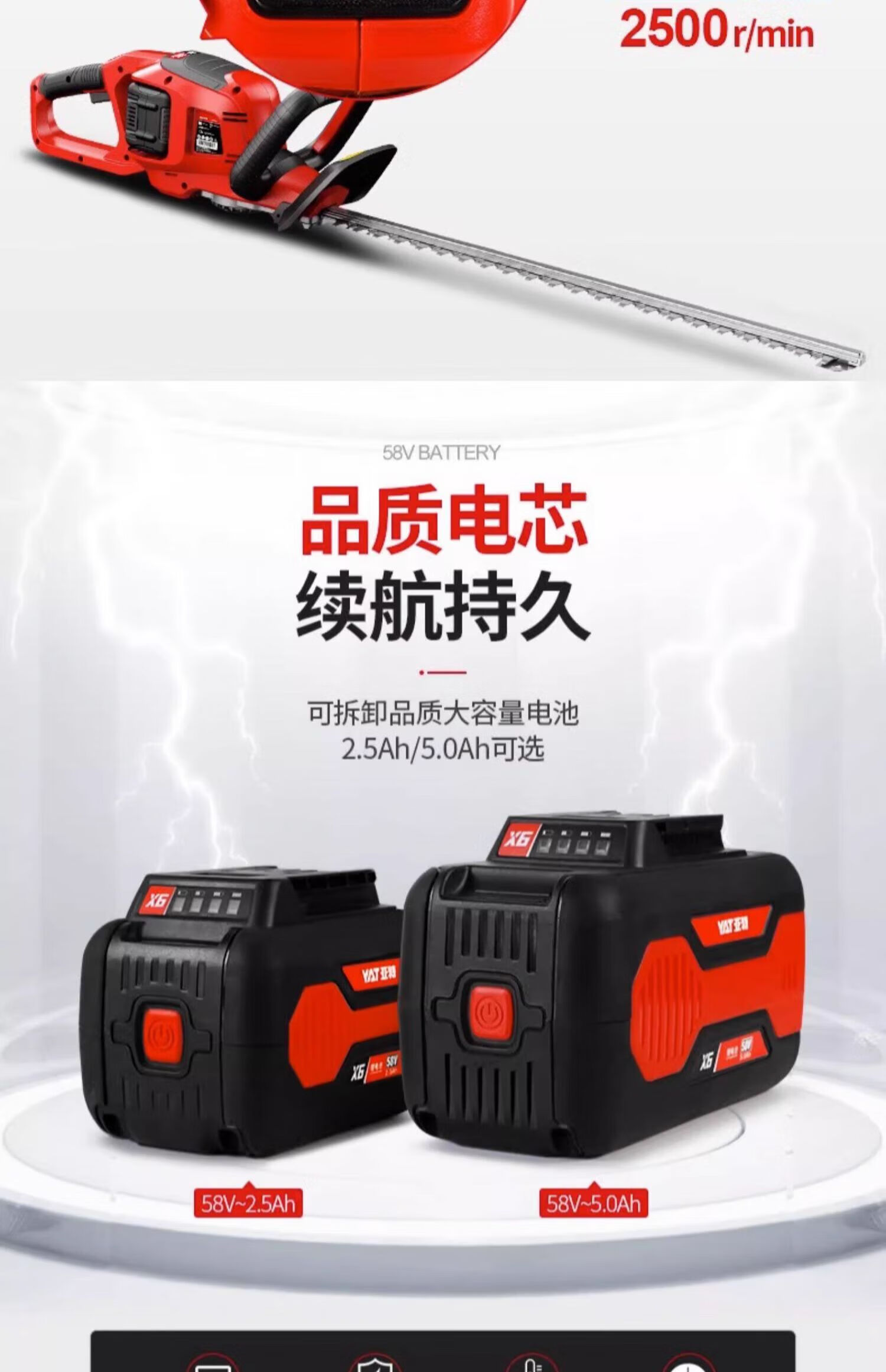 Yate YT7539 Electric Trimmer 58V Rechargeable Hedge Shear Garden Pruning Tea Tree YT7539 No Battery Charger