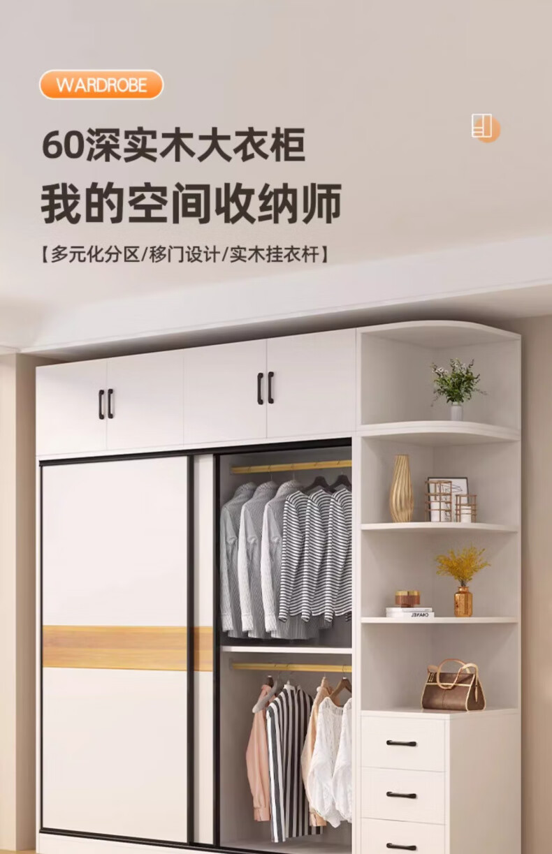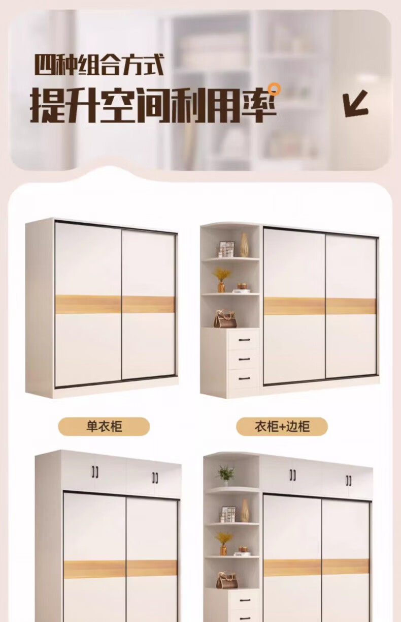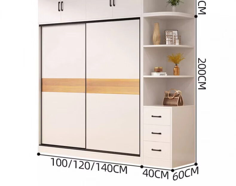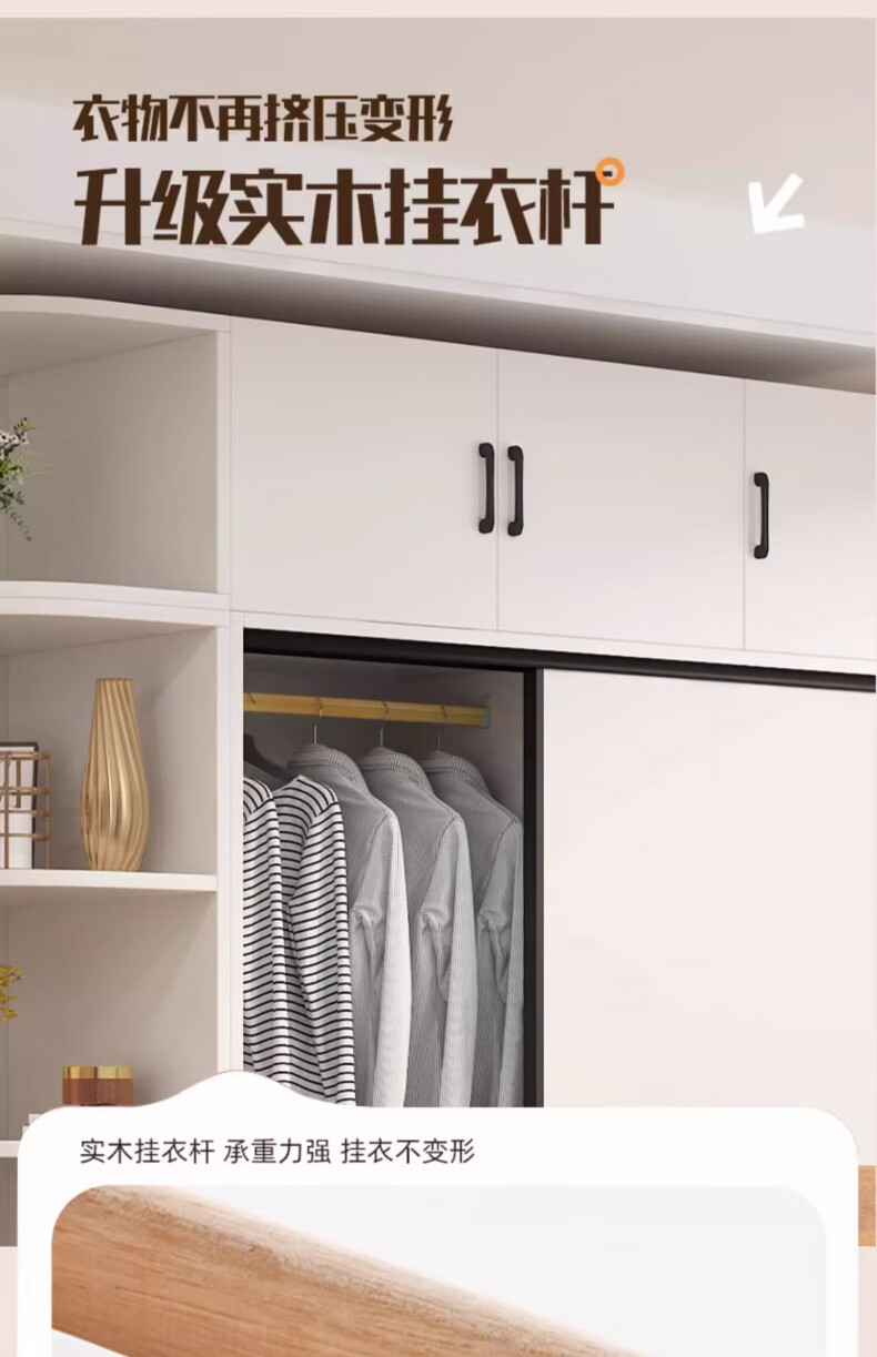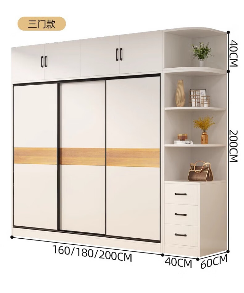 Muyansen package installed solid wood wardrobe home bedroom large wardrobe with sliding door simple storage furniture storage cabinet storage cabinet 200CM main cabinet + top cabinet + side cabinet