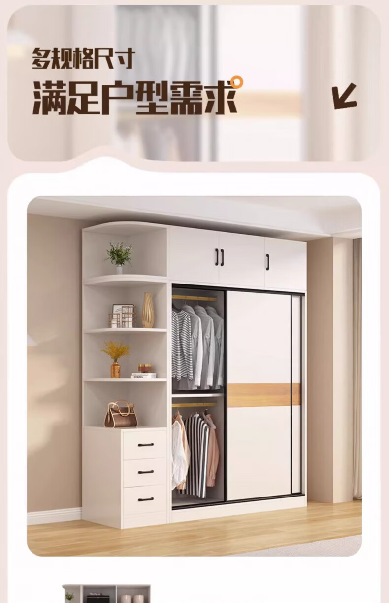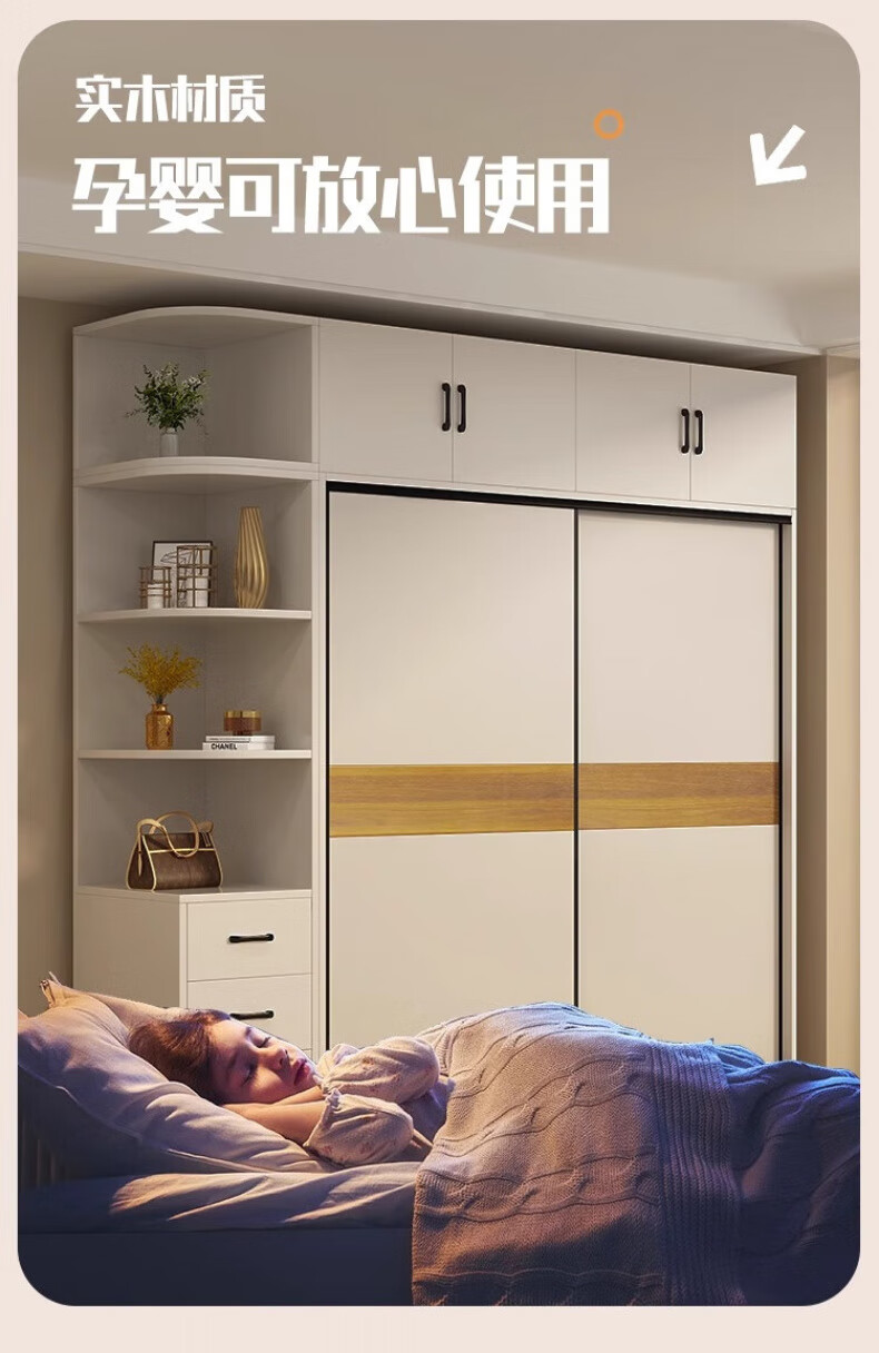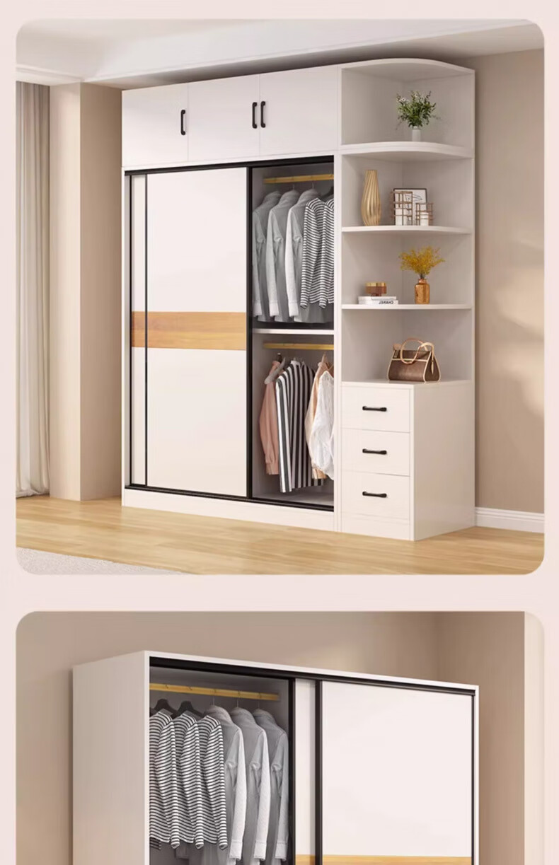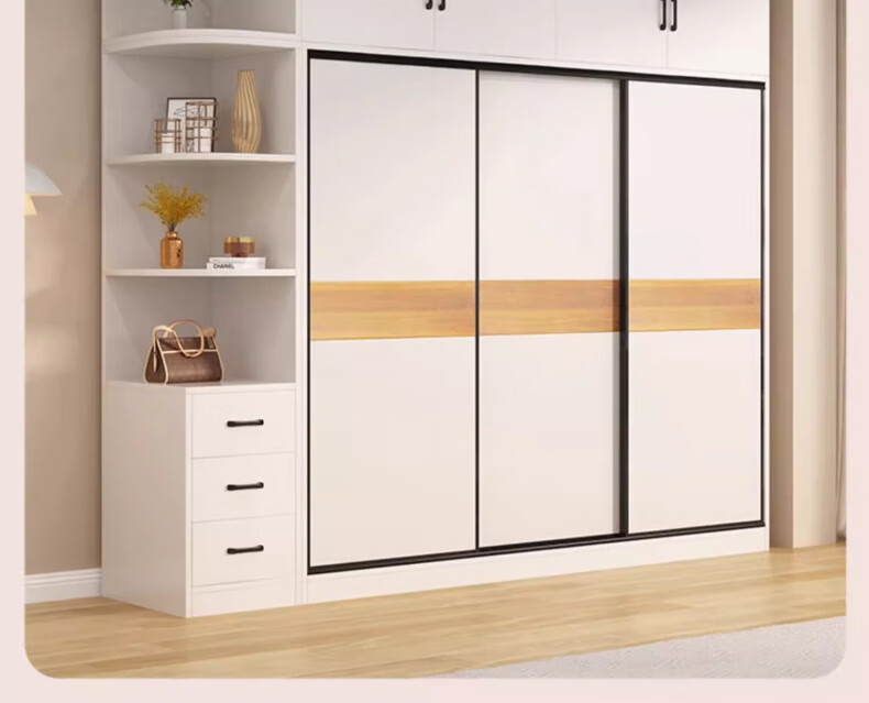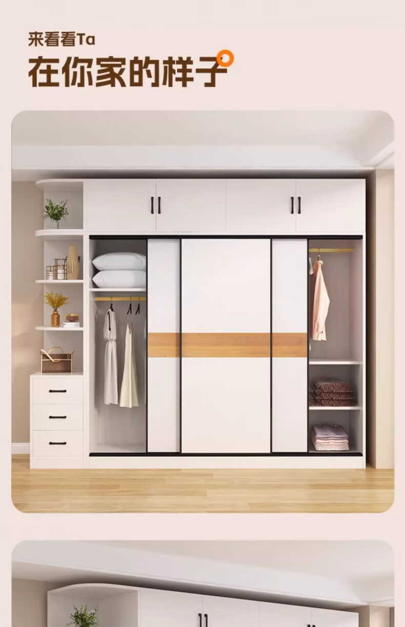 Muyansen package installed solid wood wardrobe home bedroom large wardrobe with sliding door simple storage furniture storage cabinet storage cabinet 200CM main cabinet + top cabinet + side cabinet