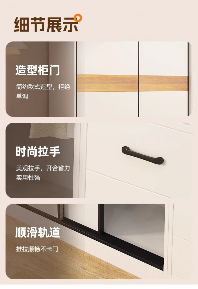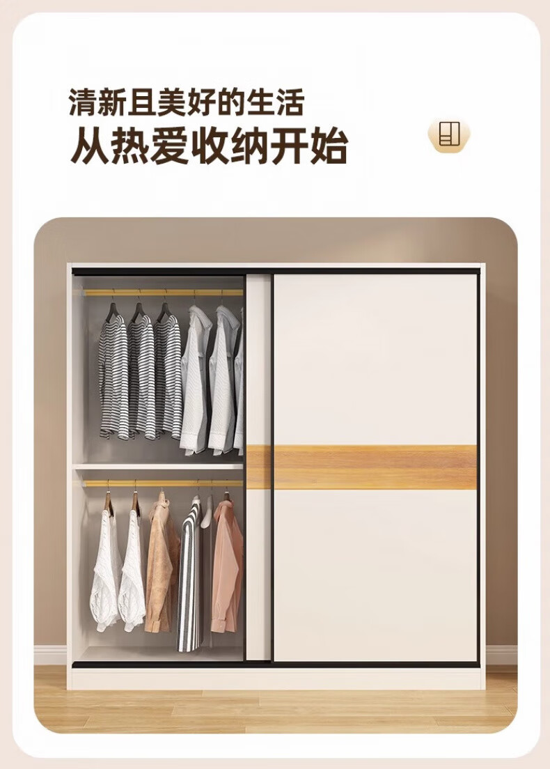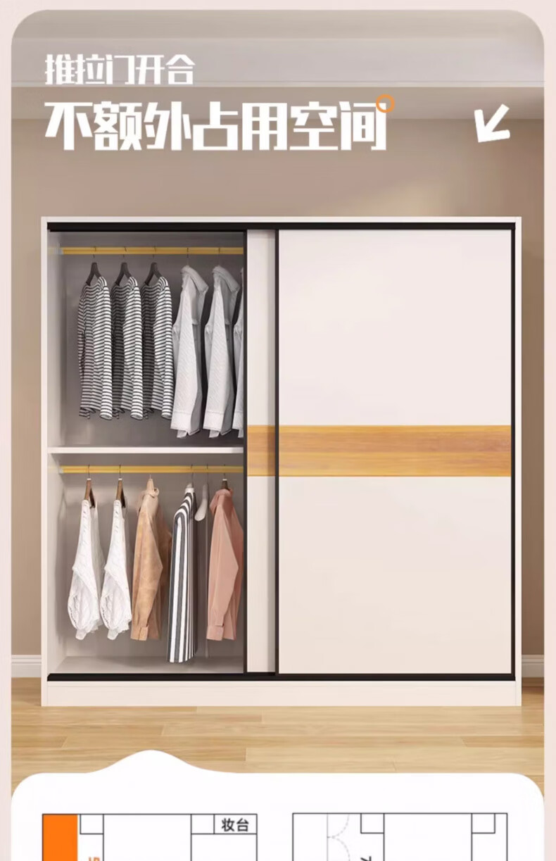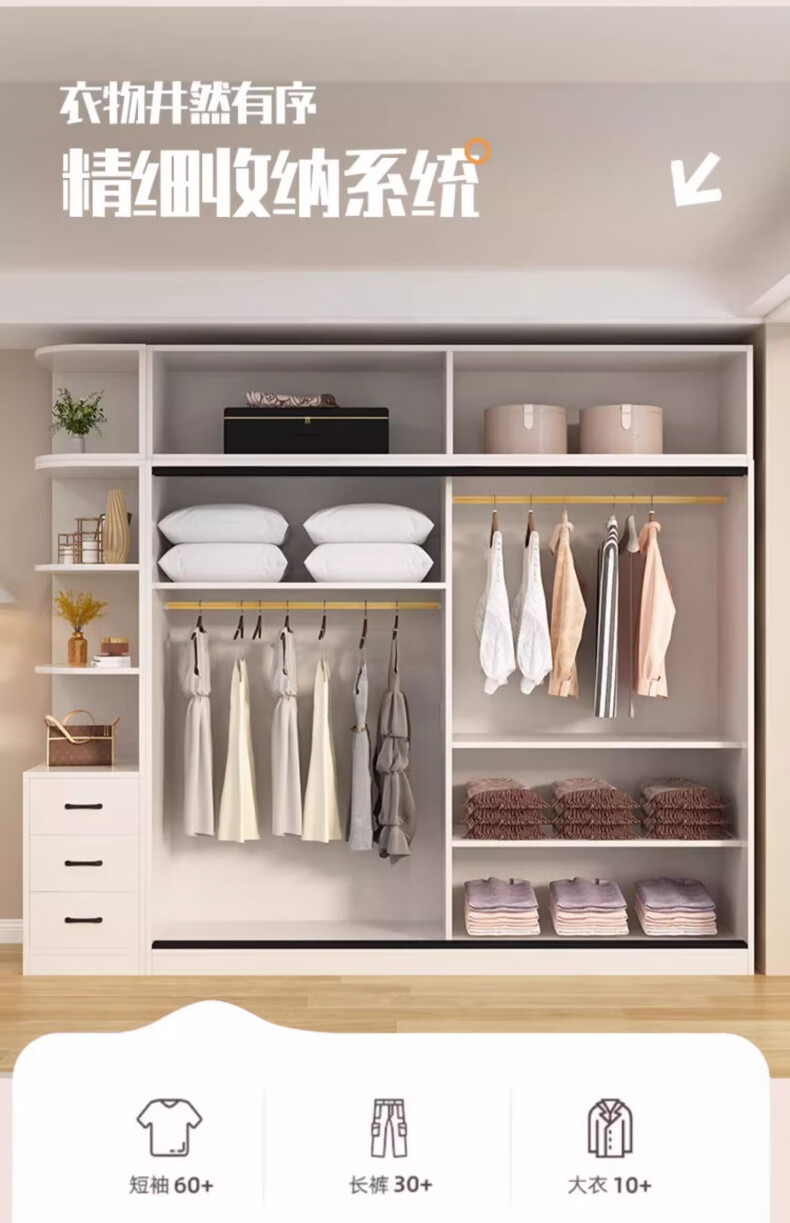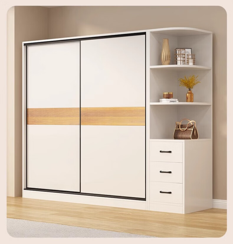 Muyansen package installed solid wood wardrobe home bedroom large wardrobe with sliding door simple storage furniture storage cabinet storage cabinet 200CM main cabinet + top cabinet + side cabinet