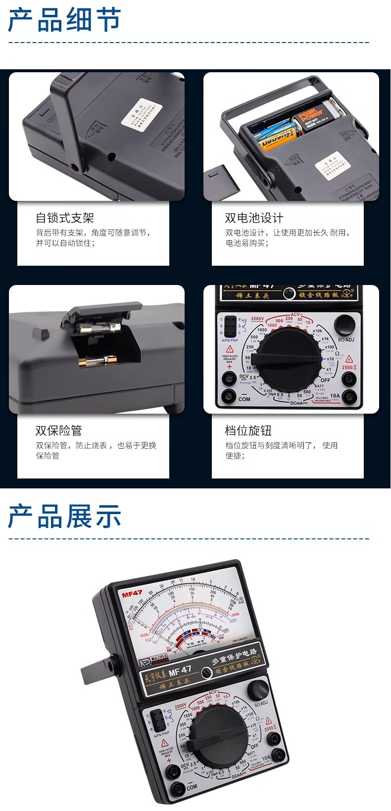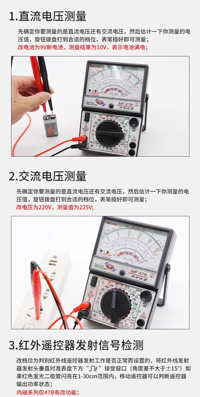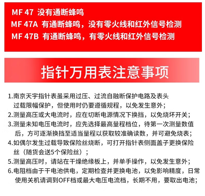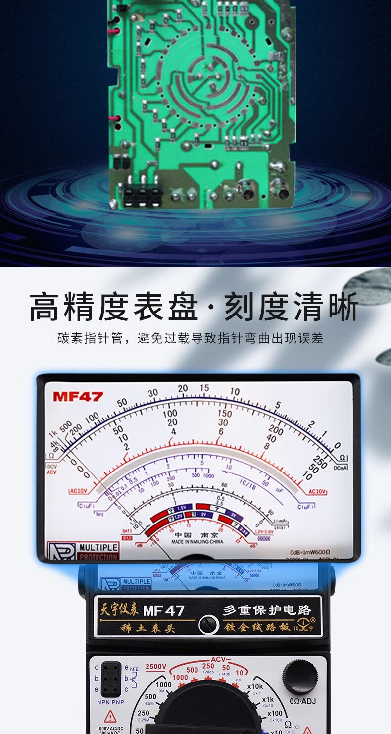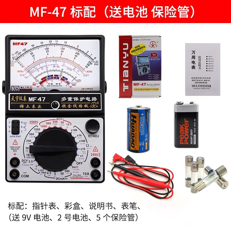 NJTY Nanjing Tianyu MF47 pointer multimeter internal magnetic mechanical meter high-precision anti-burn full protection circuit MF-47 standard + package comes with battery fuse