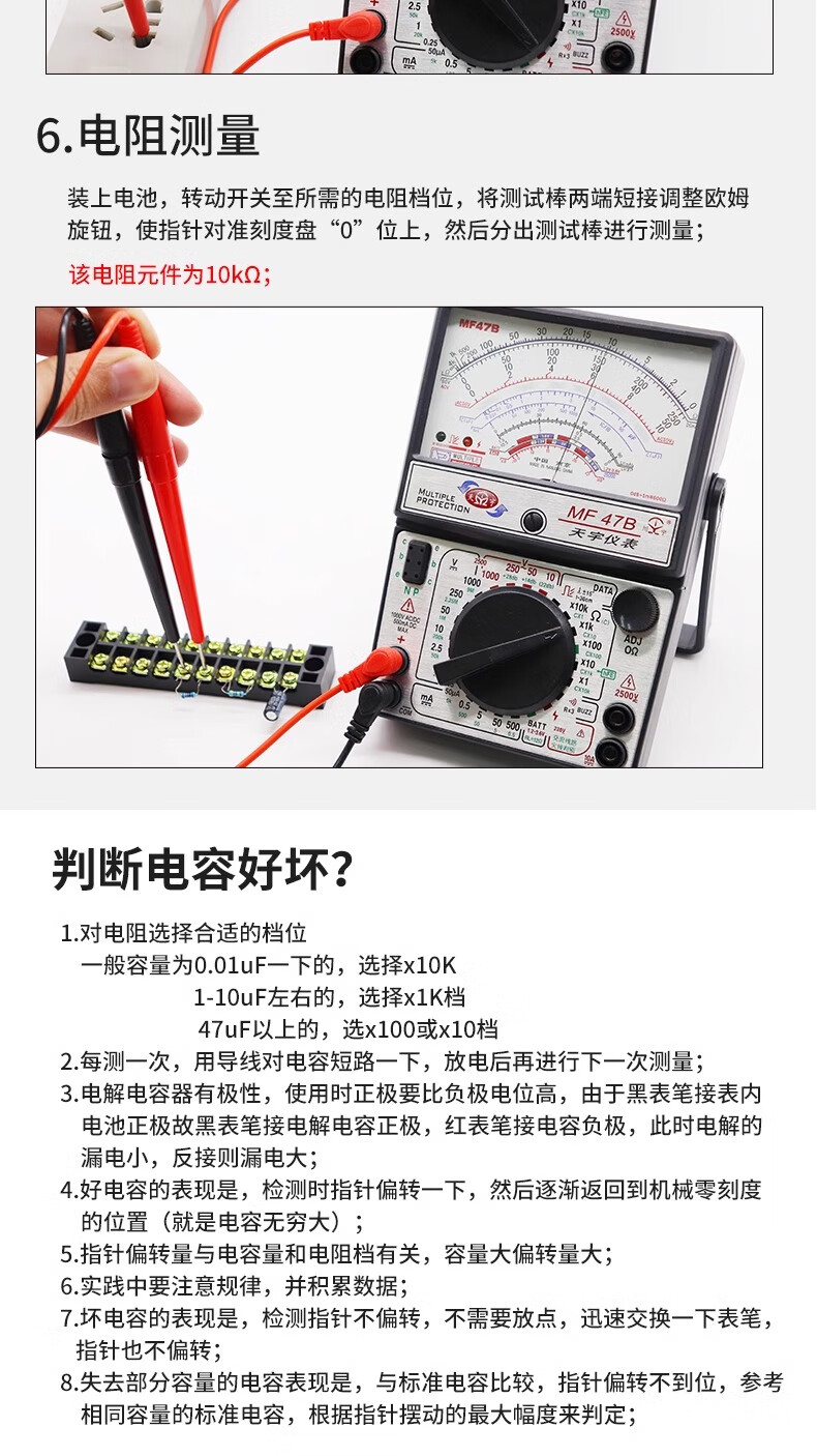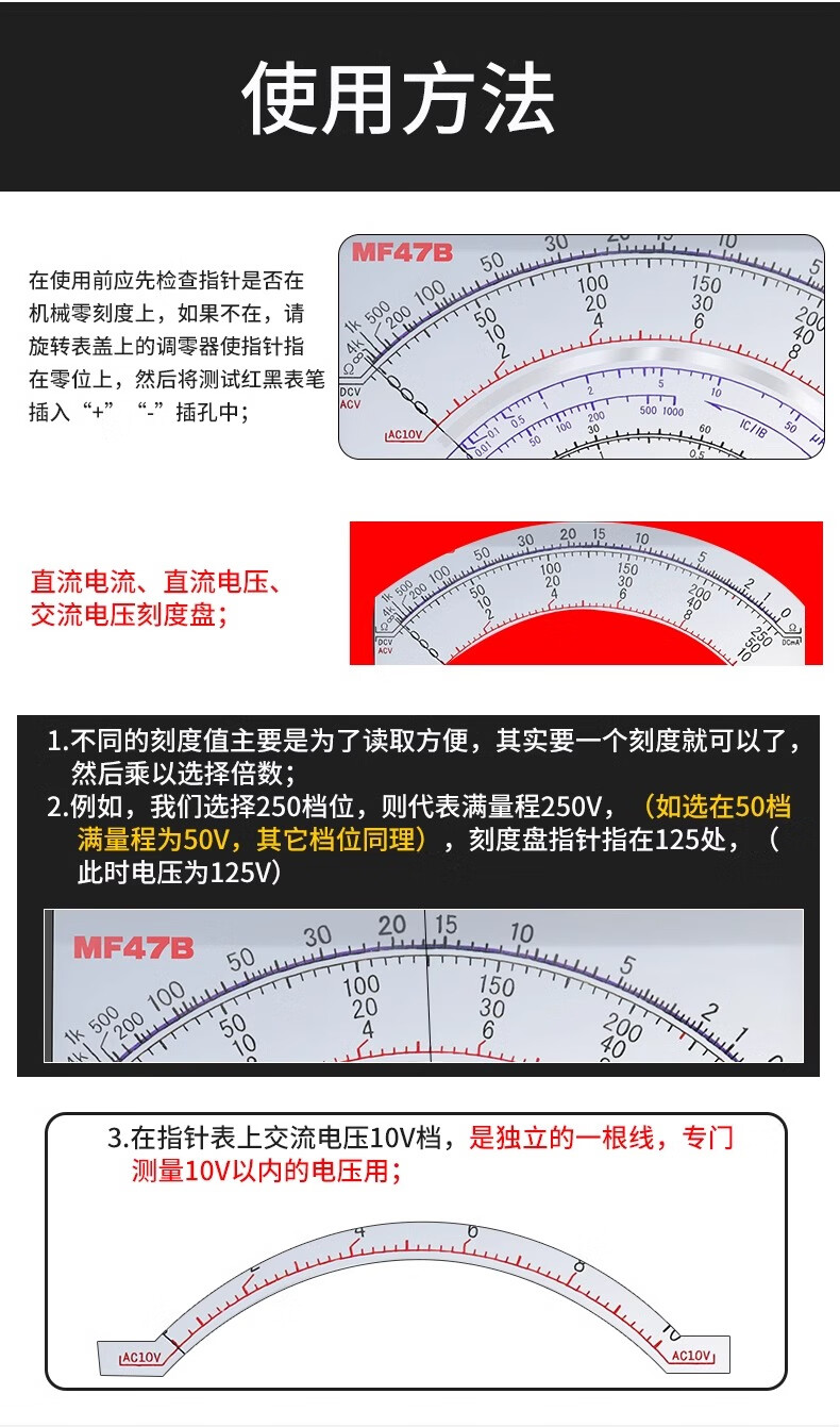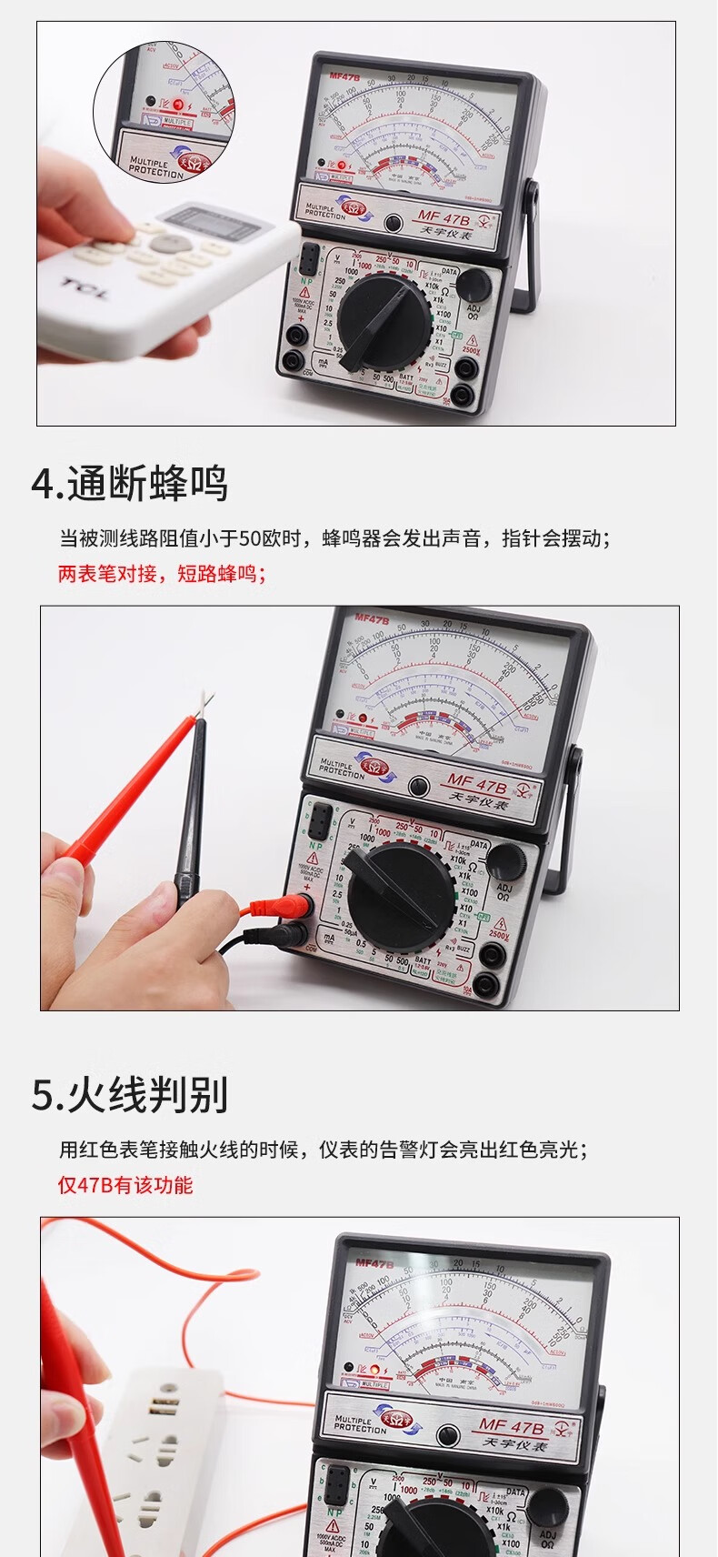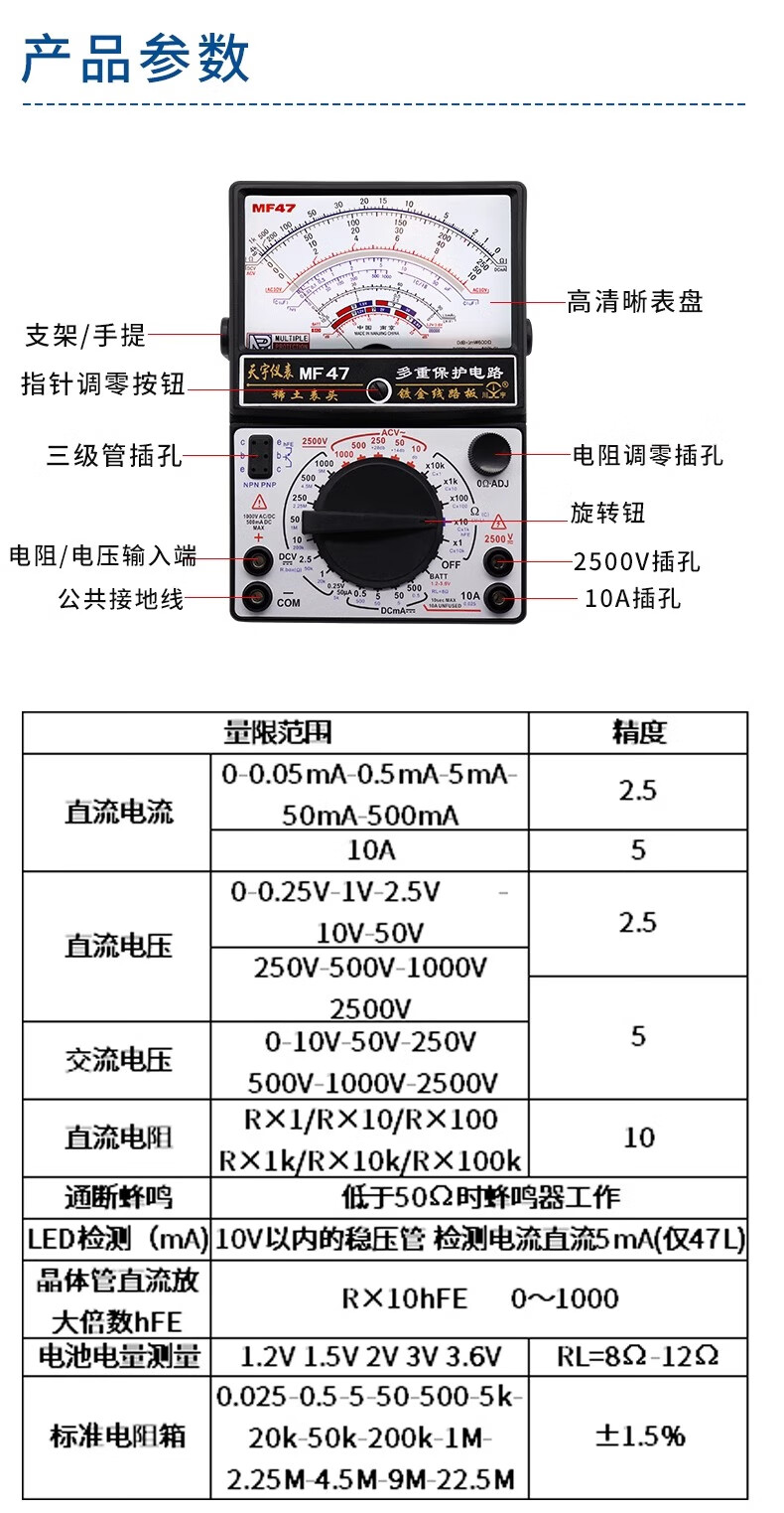 NJTY Nanjing Tianyu MF47 pointer multimeter internal magnetic mechanical meter high-precision anti-burn full protection circuit MF-47 standard + package comes with battery fuse