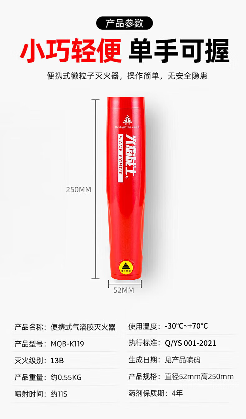 Flame Warrior Aerosol Fire Extinguisher Vehicle-mounted Portable Nanoparticle Residue-Free Home Fire Fighting Equipment MQB/119g Aerosol (13B) Directly from the Manufacturer