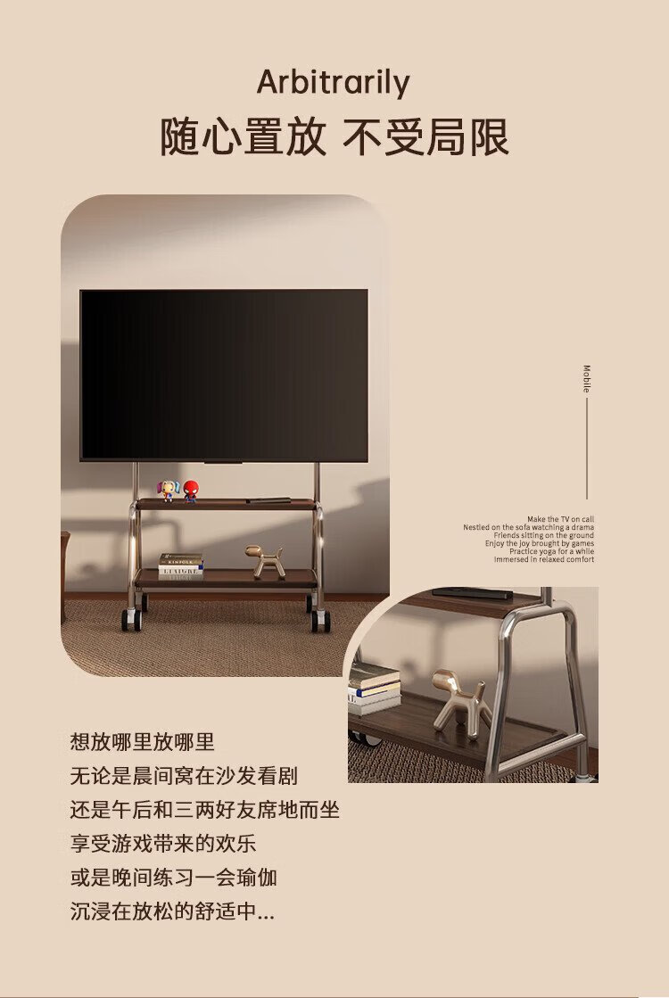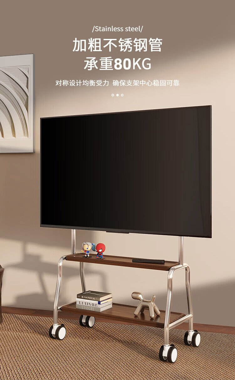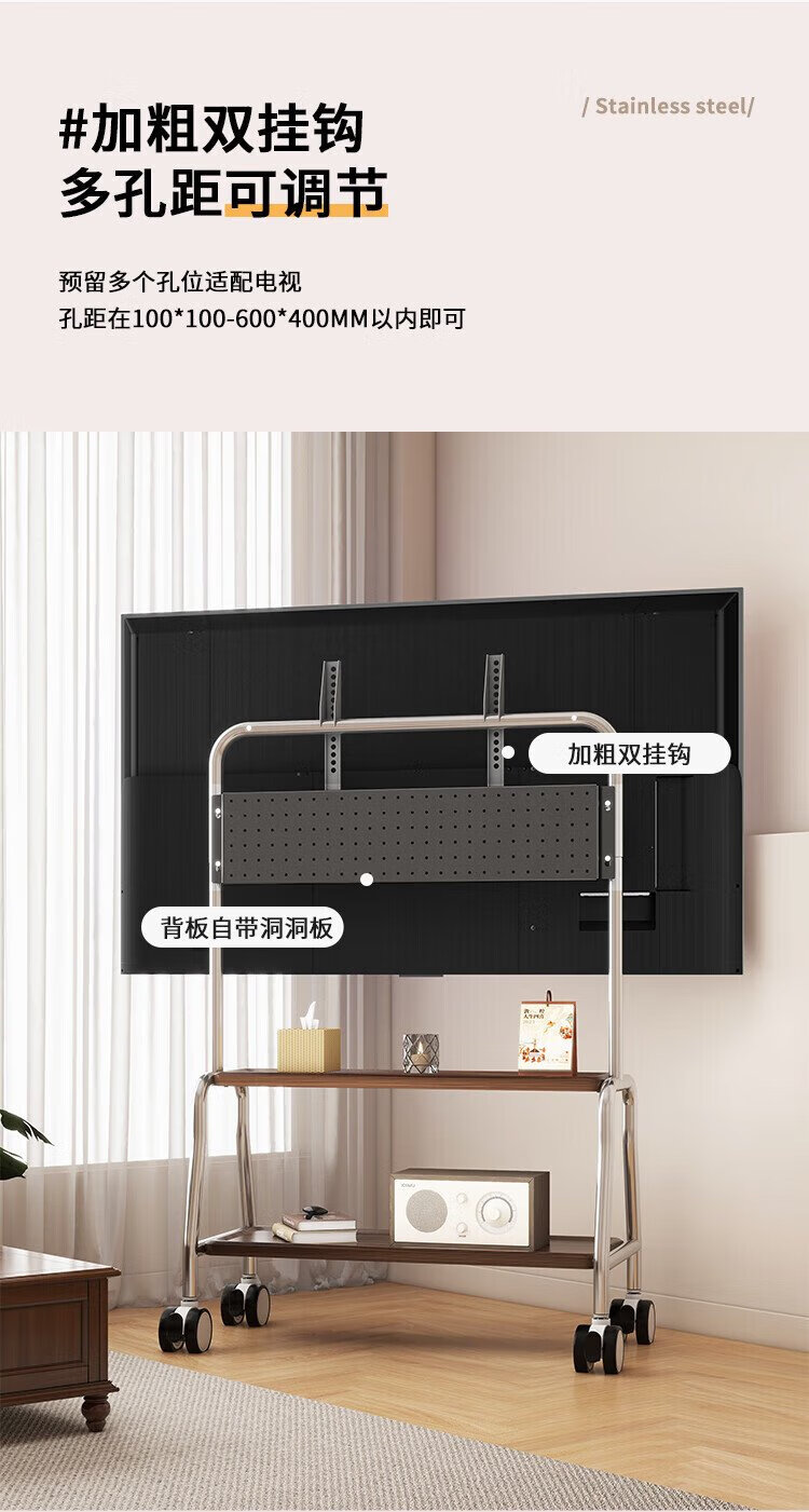 Chuanghao TV Mobile Bracket 32-75 inches Universal TV Floor Stand Movable Stainless Steel/Wood Grain Wheels Living Room Bedroom TV Hanger Perforated Board Storage Trolley 32-75 Inch Stainless Steel/Single Layer Shelf/Perforated Board Storage