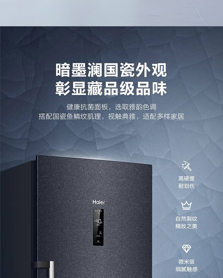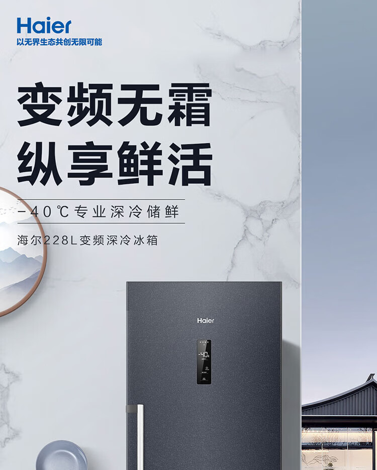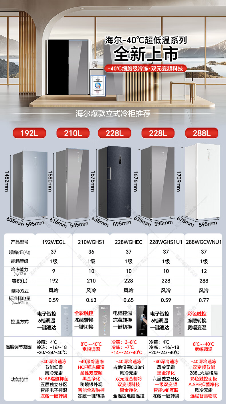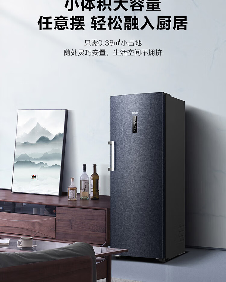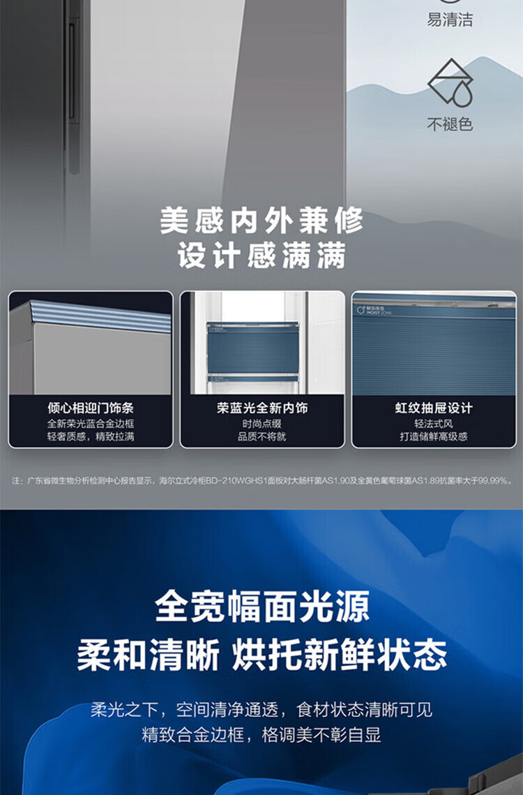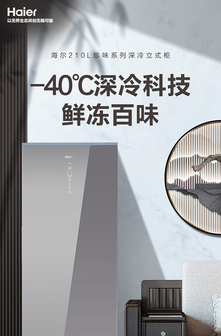 Haier's flagship new upgrade - 40 degree vertical freezer, dual frequency conversion ultra-low temperature household refrigeration and freezer, air-cooled, frost-free, cryogenic quick freezing, first-class energy efficiency 228WGHS1U1, new color crystal glass panel 228L