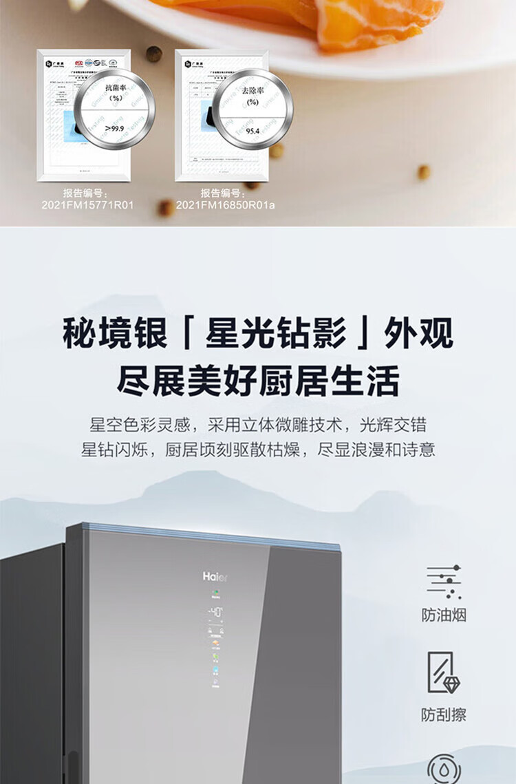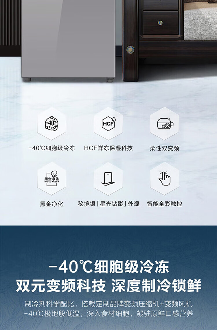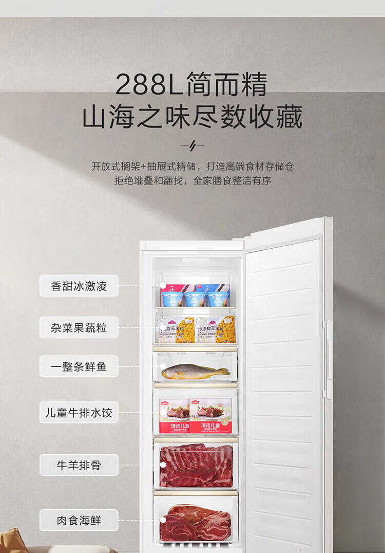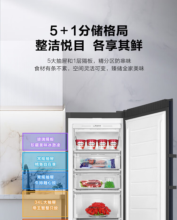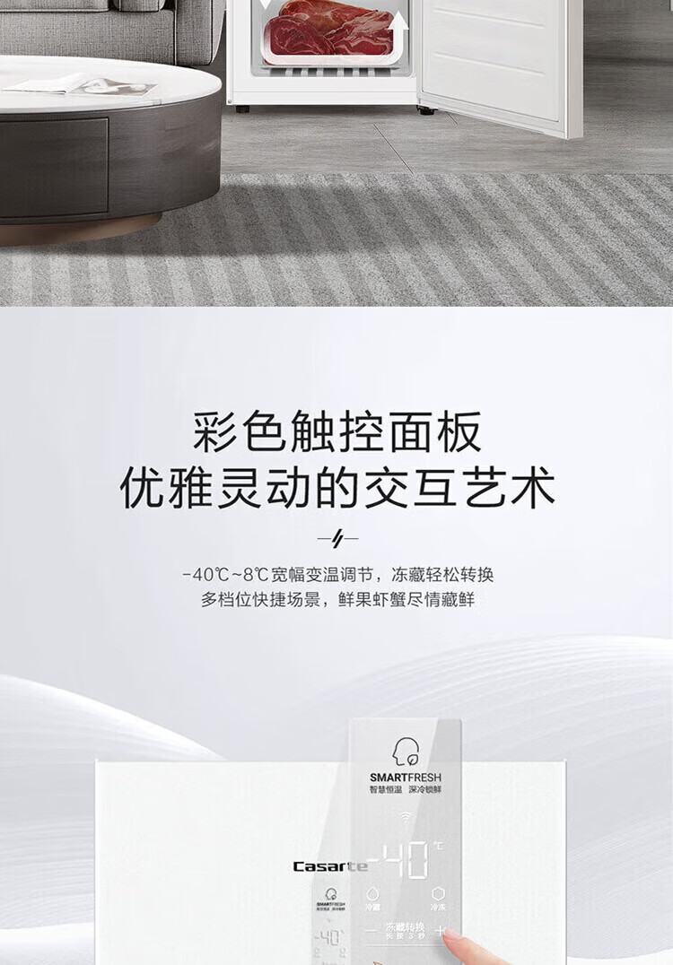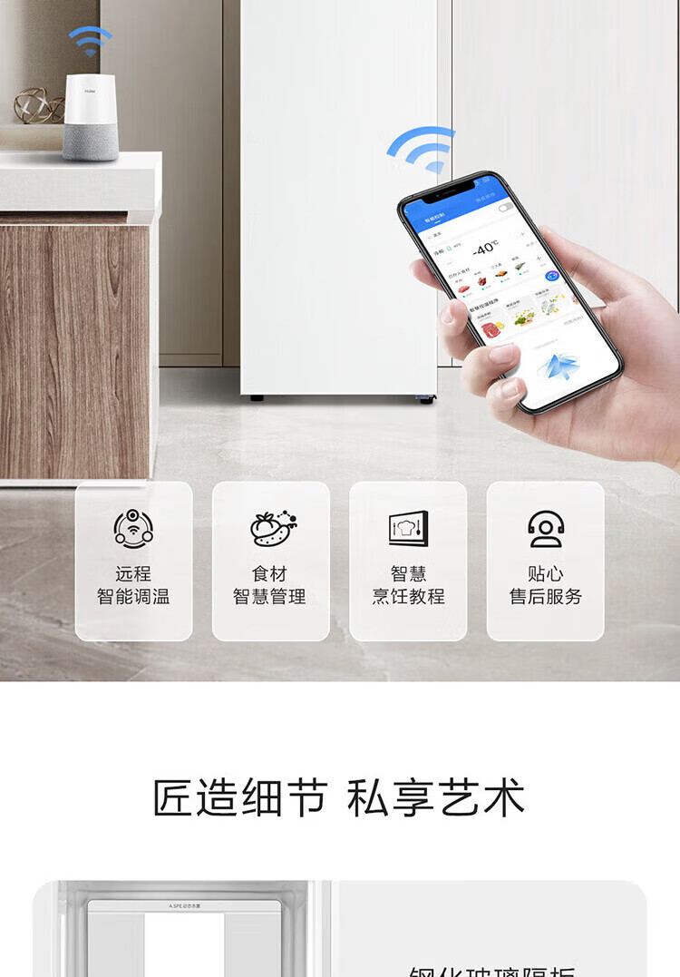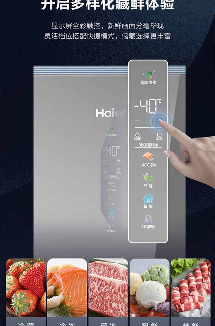 Haier's flagship new upgrade - 40 degree vertical freezer, dual frequency conversion ultra-low temperature household refrigeration and freezer, air-cooled, frost-free, cryogenic quick freezing, first-class energy efficiency 228WGHS1U1, new color crystal glass panel 228L