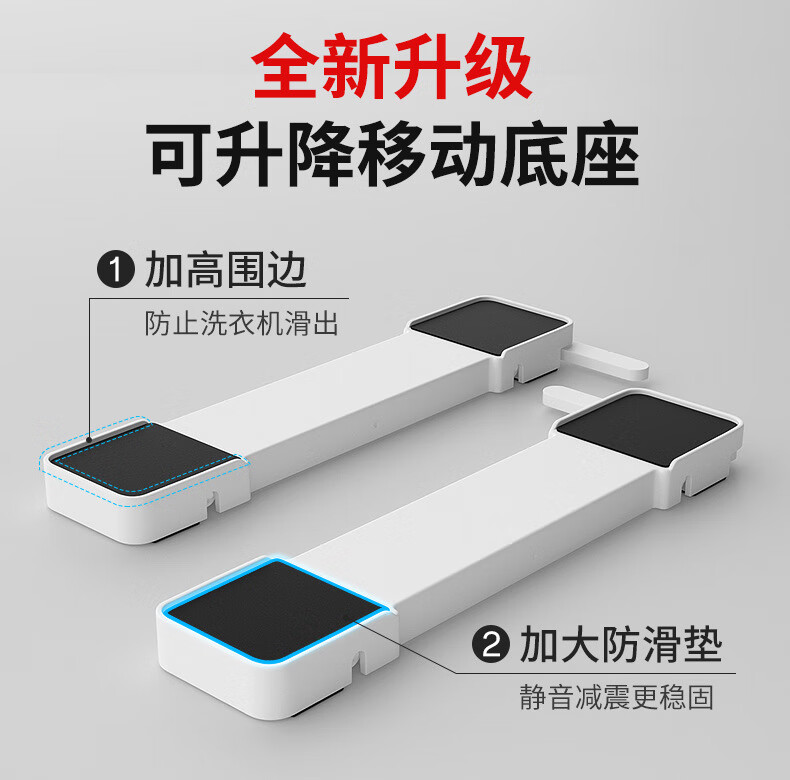 Washing machine base bracket drum refrigerator universal storage pulley removable anti-slip washing machine fixed bracket black universal model length 55cm increased by 3cm