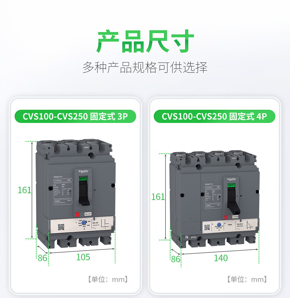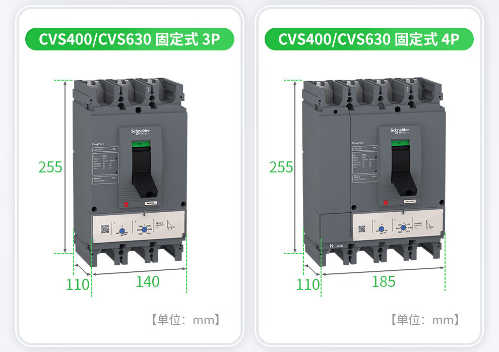 Schneider molded case circuit breaker CVS series 1-4P 100A250A630A short circuit protection circuit breaker 160A CVS160F TM160D 4P3D