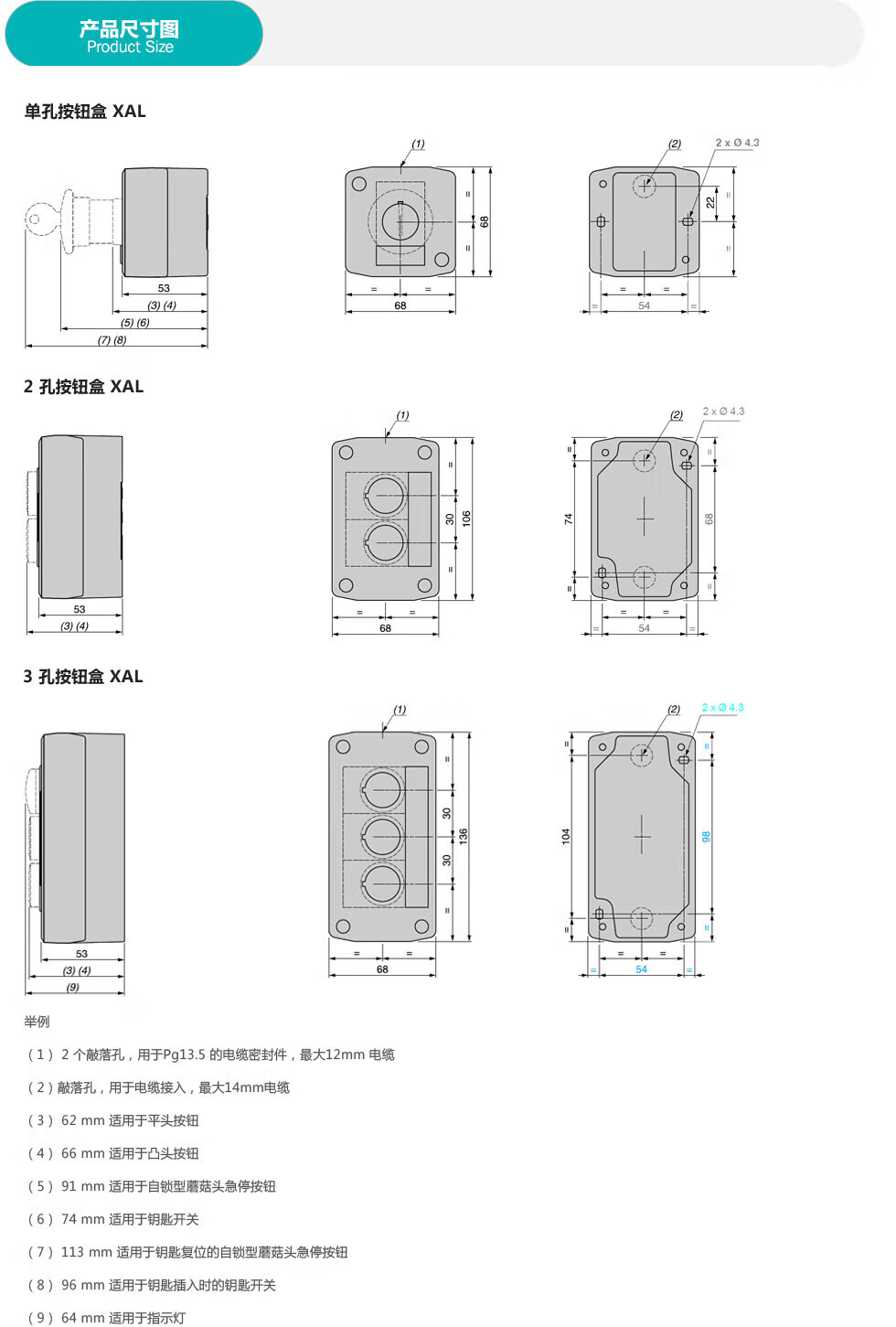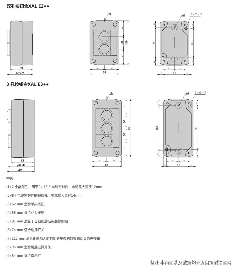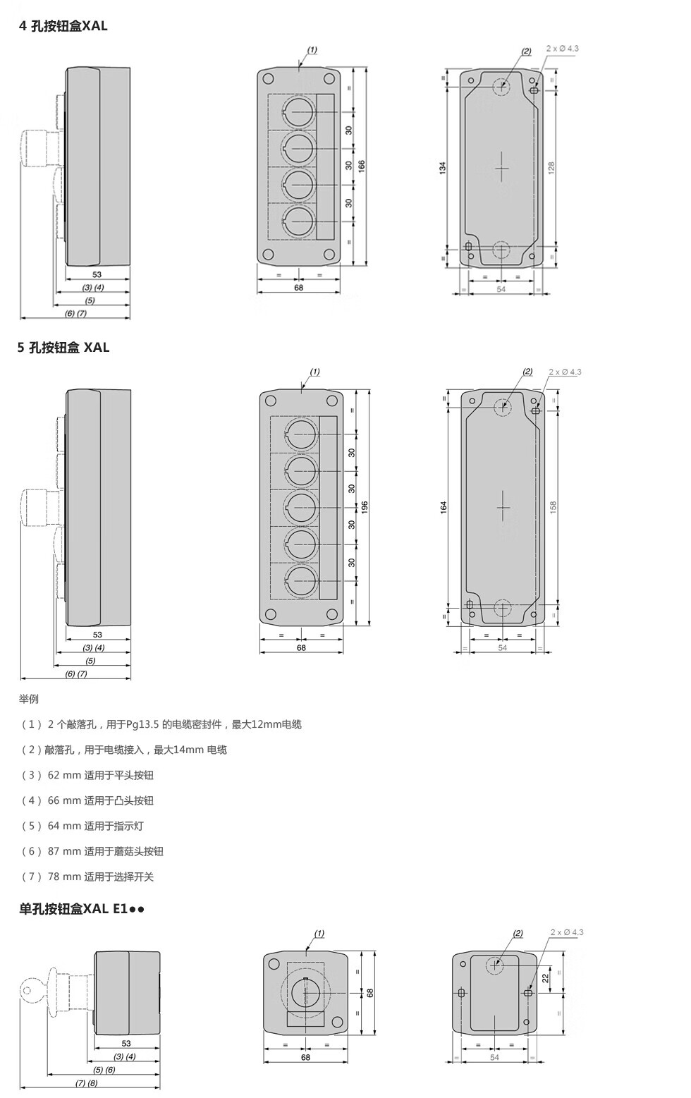 Schneider Electric button box XAL accessories button accessories XB2B empty button box (grey/3 holes) XALB035C
