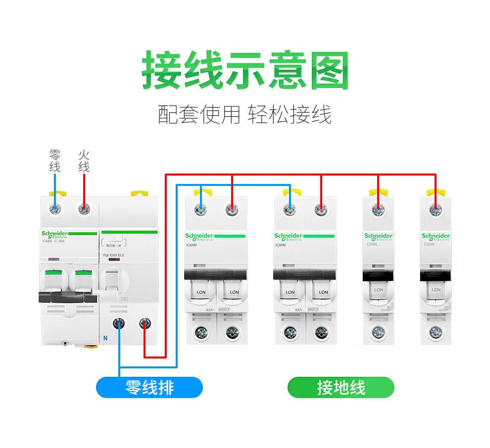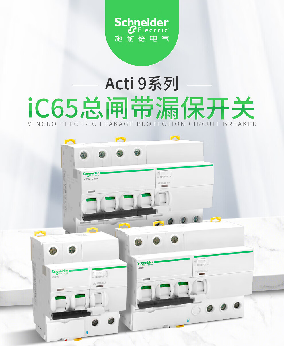 Schneider leakage protection switch IC65 2P-4P 10A50A20A63A household main circuit breaker IC65N 2P C40A+VIGI 30MA