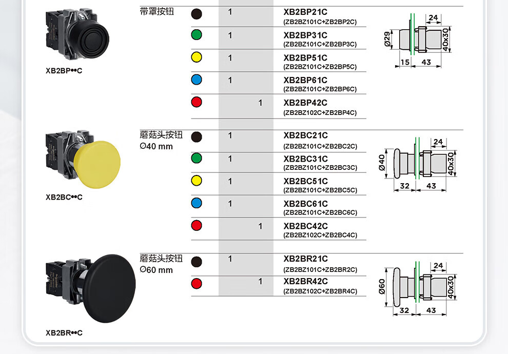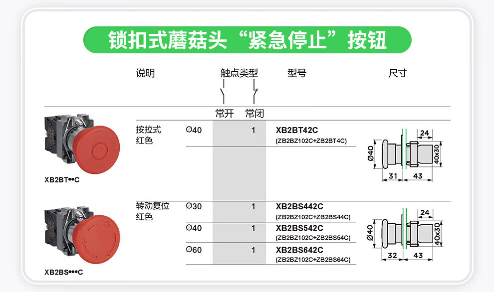 Schneider Electric button indicator light XA2 series mushroom head green 1NO reset XA2AC31