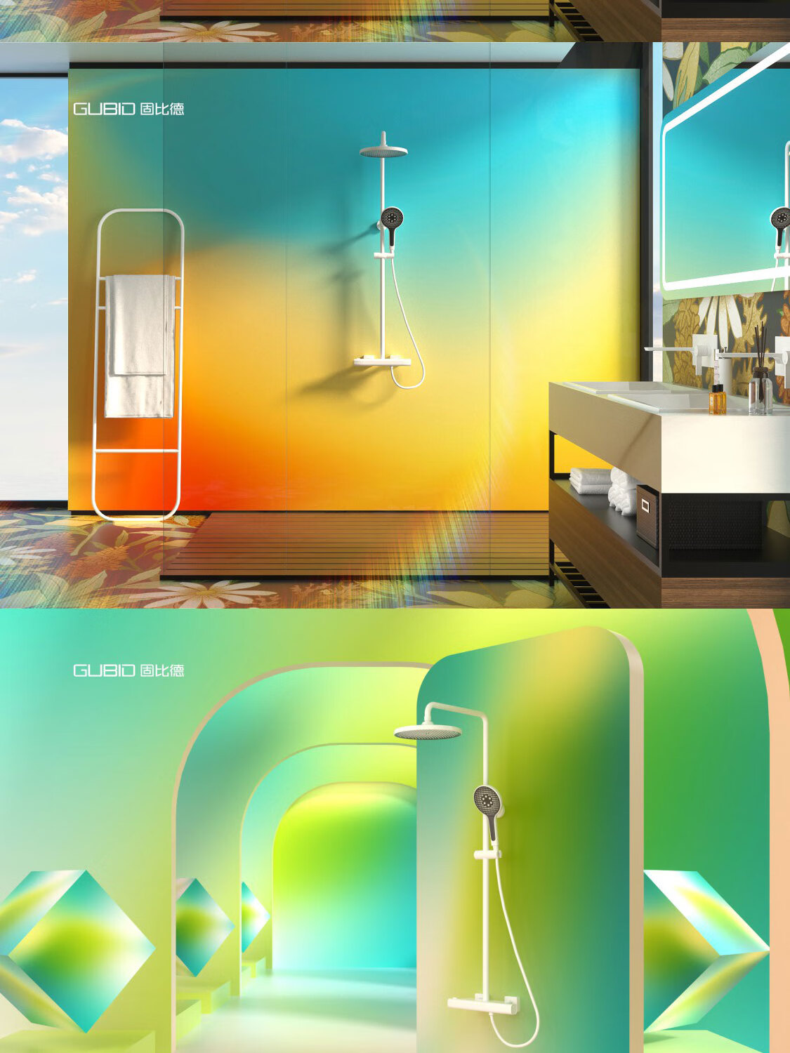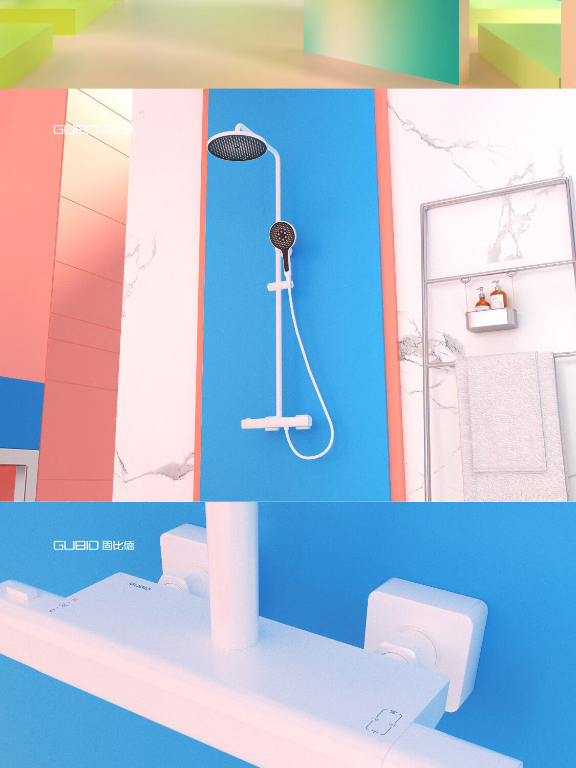GUBID three-function constant temperature shower fine copper body bathroom hot and cold control shower set GD9377-Yao Shiyin