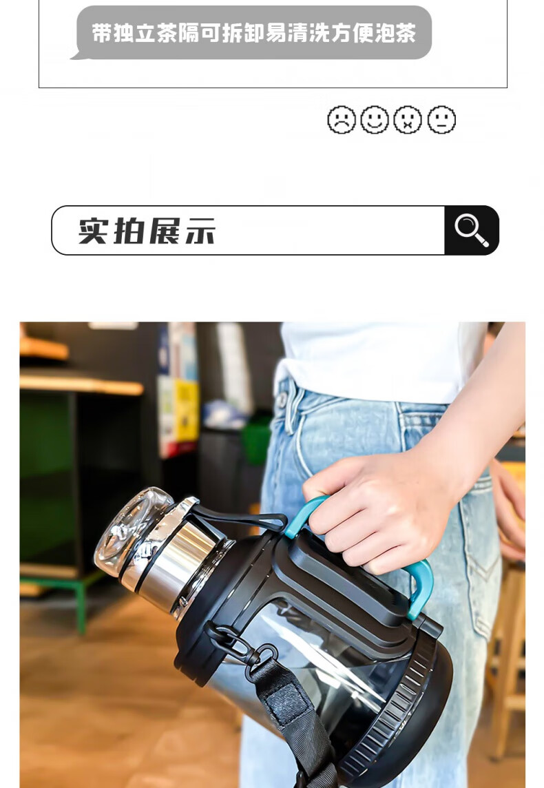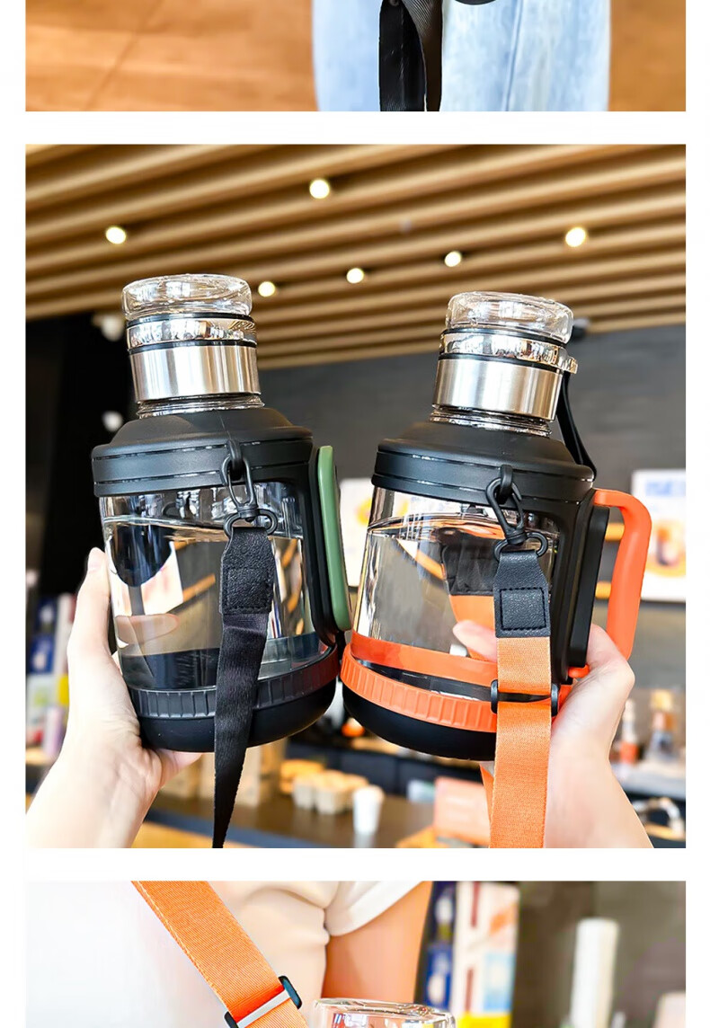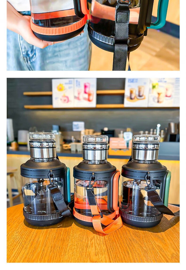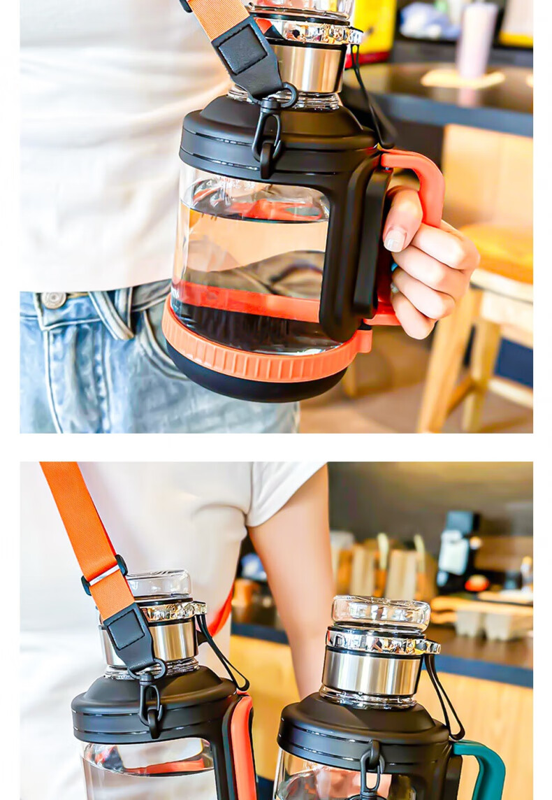 Xulin German glass sports water cup large capacity high borosilicate ton bucket kettle anti-fall and high temperature resistant tea water separation ton cup orange 2000ml