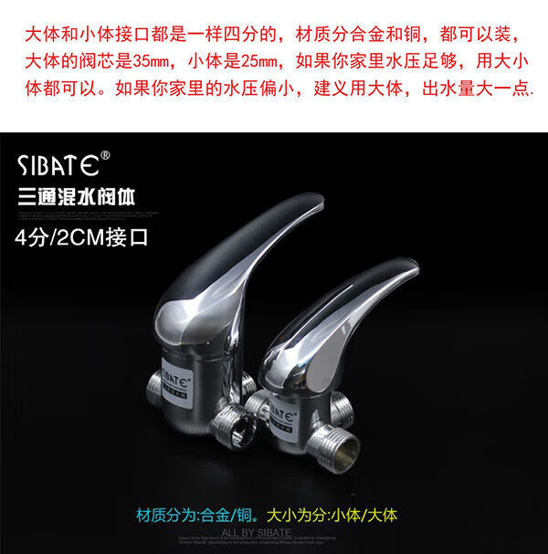 Vinoa electric water heater mixing valve three-way body hot and cold mixing valve four-way faucet general accessories collection alloy body rubber handle
