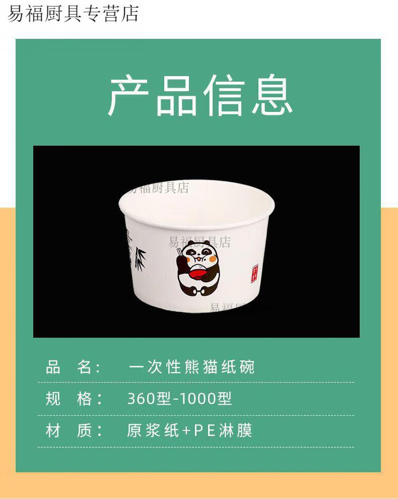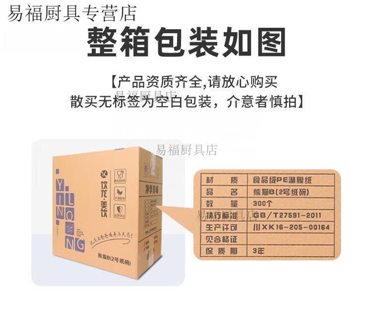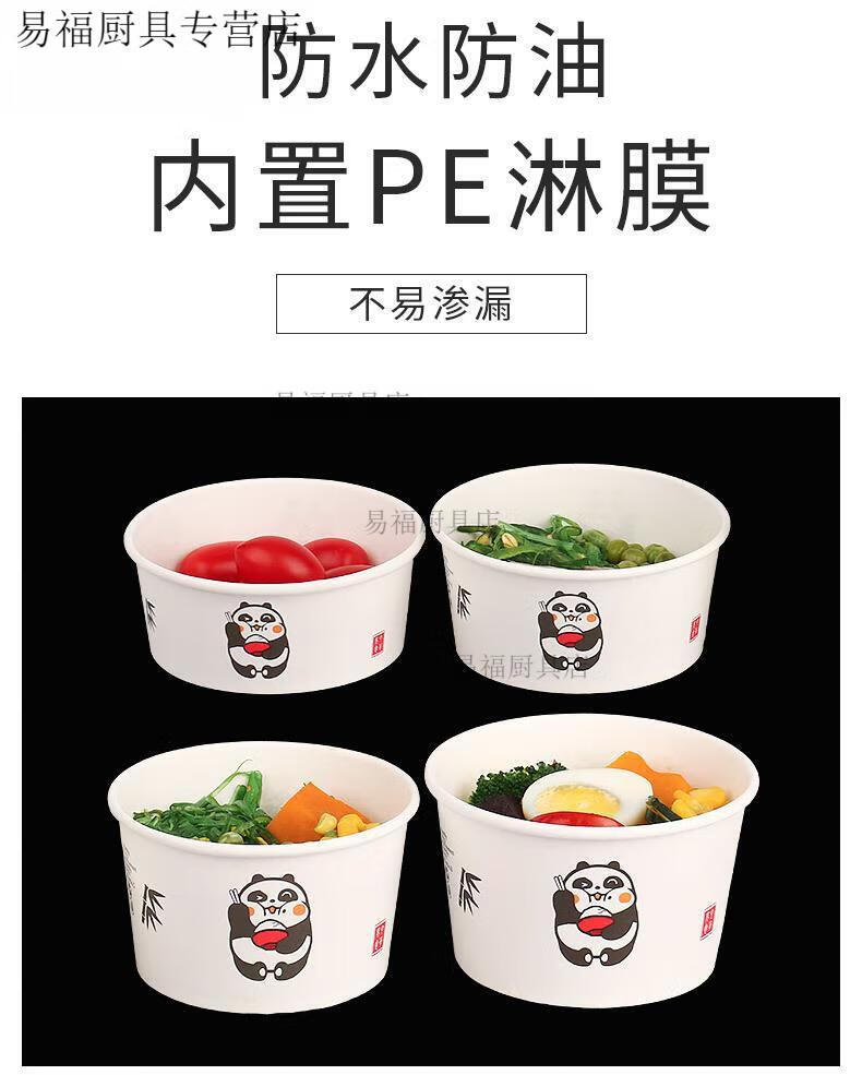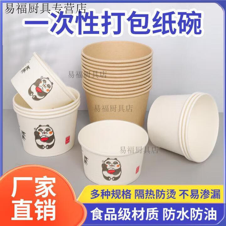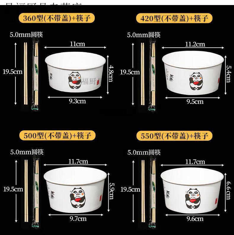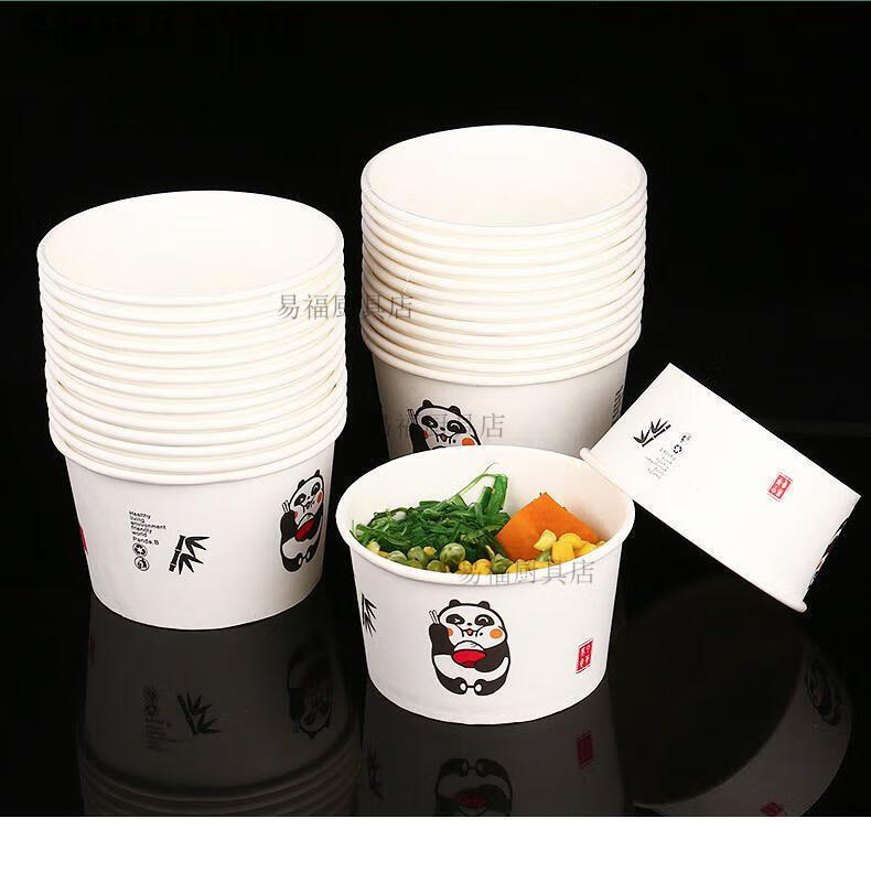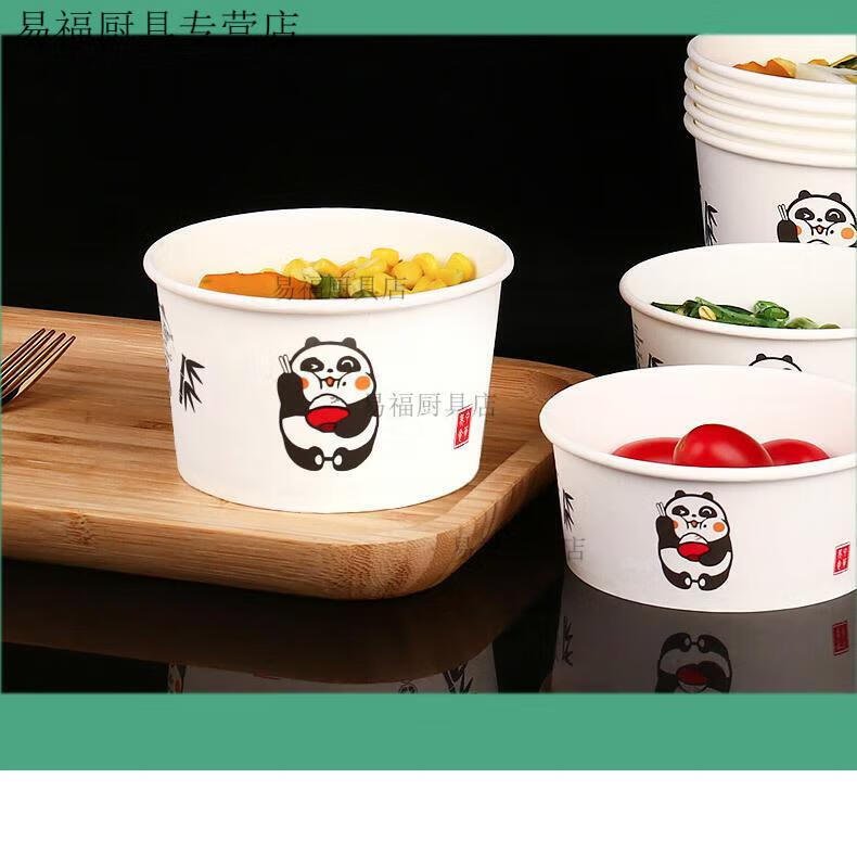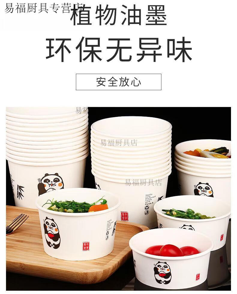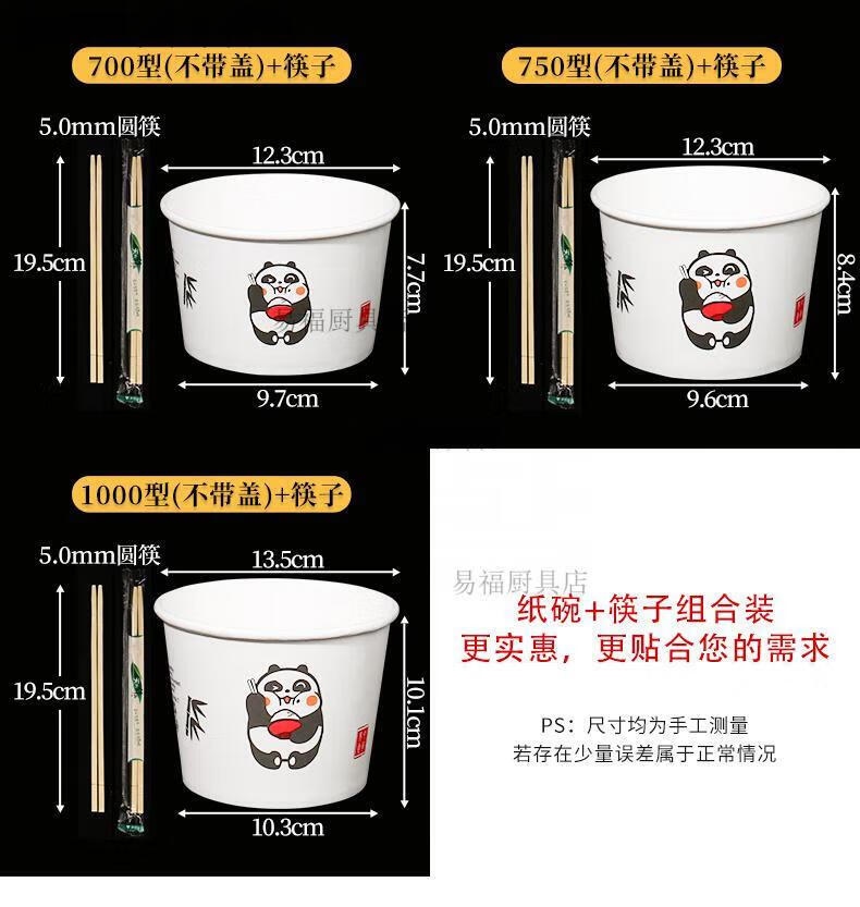 Baichao paper bowl disposable bowl household instant noodle bowl thickened take-out commercial round packaging box whole box bowl and chopsticks set wholesale Panda No. 3 bowl 520ML 100 bowls + 100 pairs of chopsticks