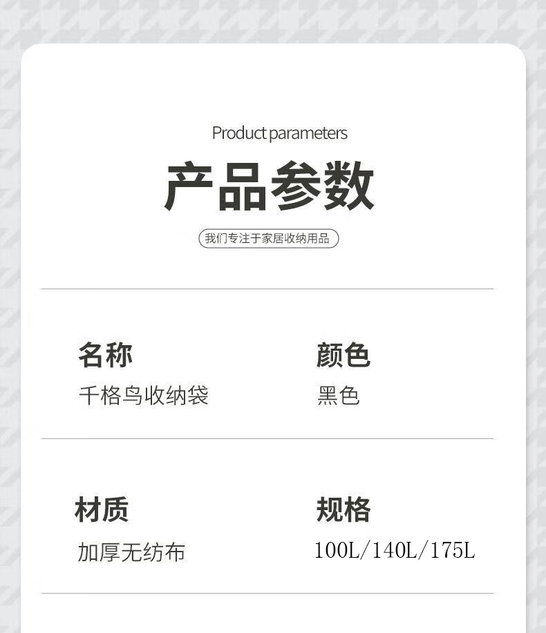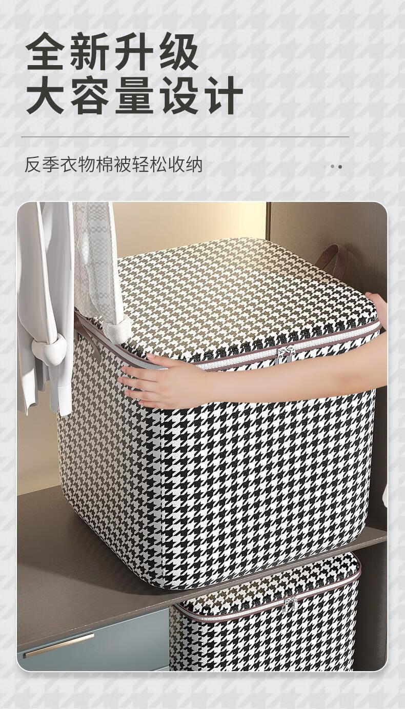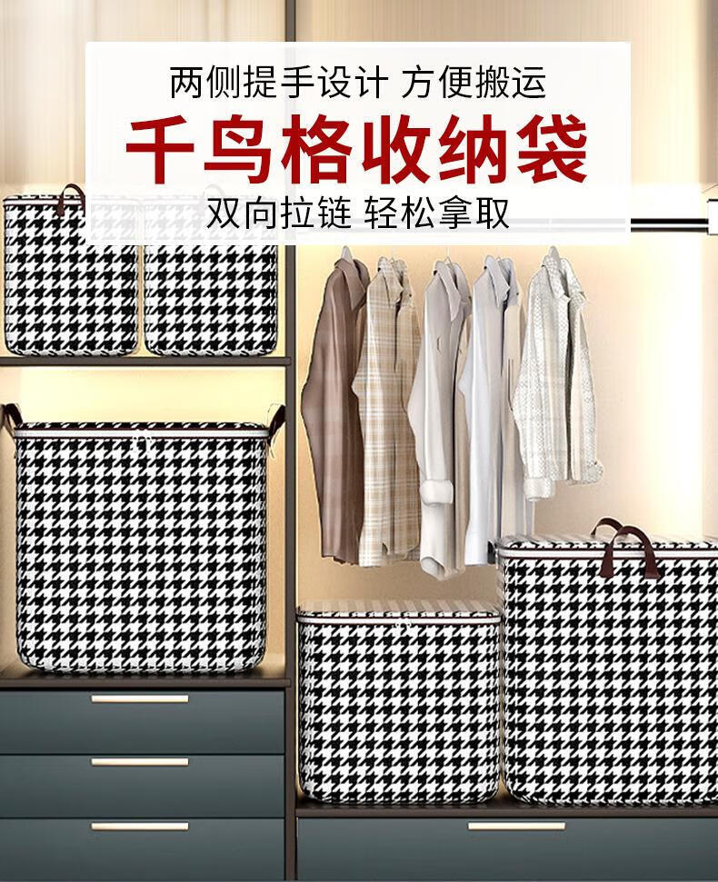 Houndstooth clothing quilt storage bag quilt moving luggage bag zipper storage box large capacity dust-proof and moisture-proof 100L