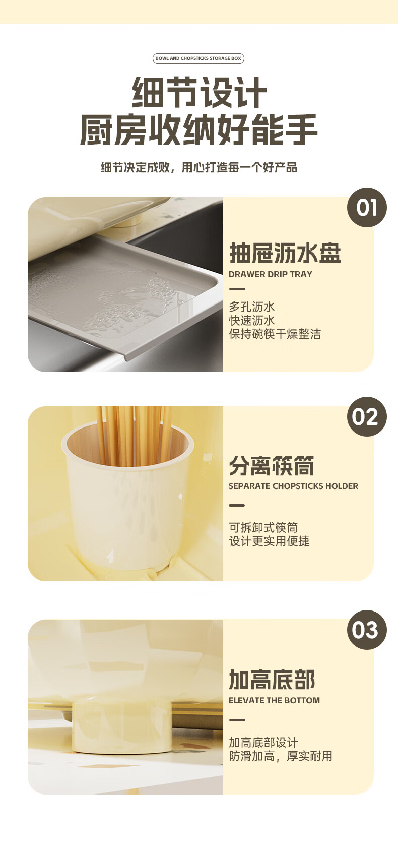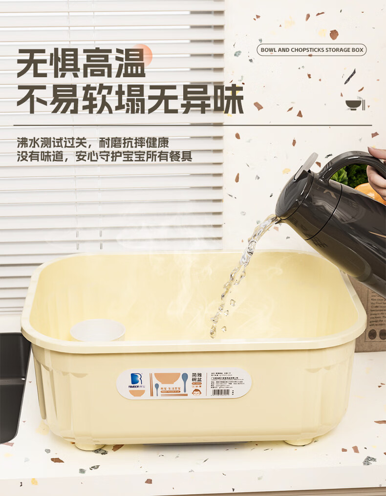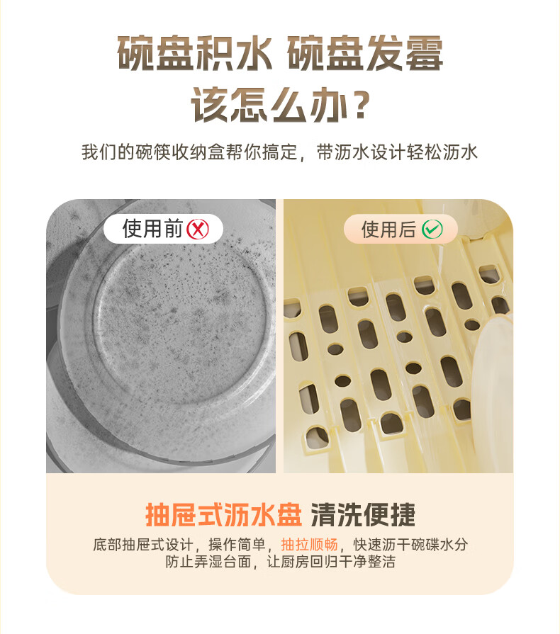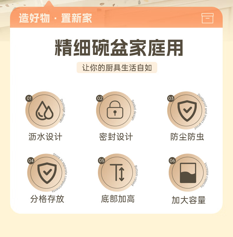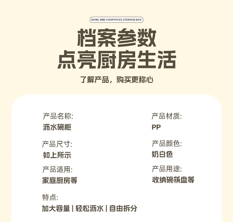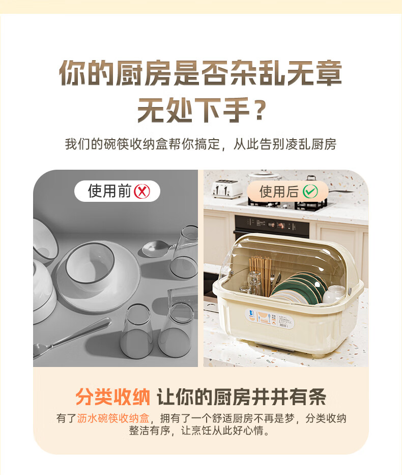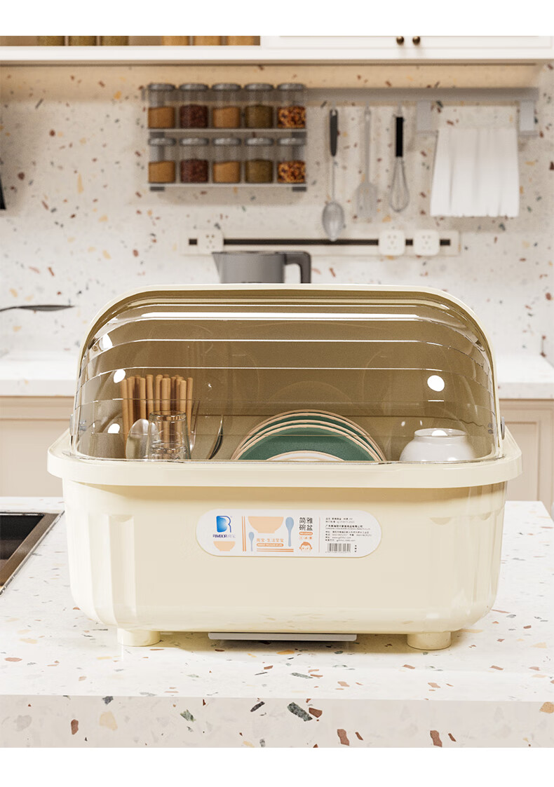 Liangbao bowl rack drain cupboard with cover for dishes, dishes, cutlery box, bowl box, home kitchen dishware rack, bowl and basin, main picture, large flip cover, about 6-10 people, milky white