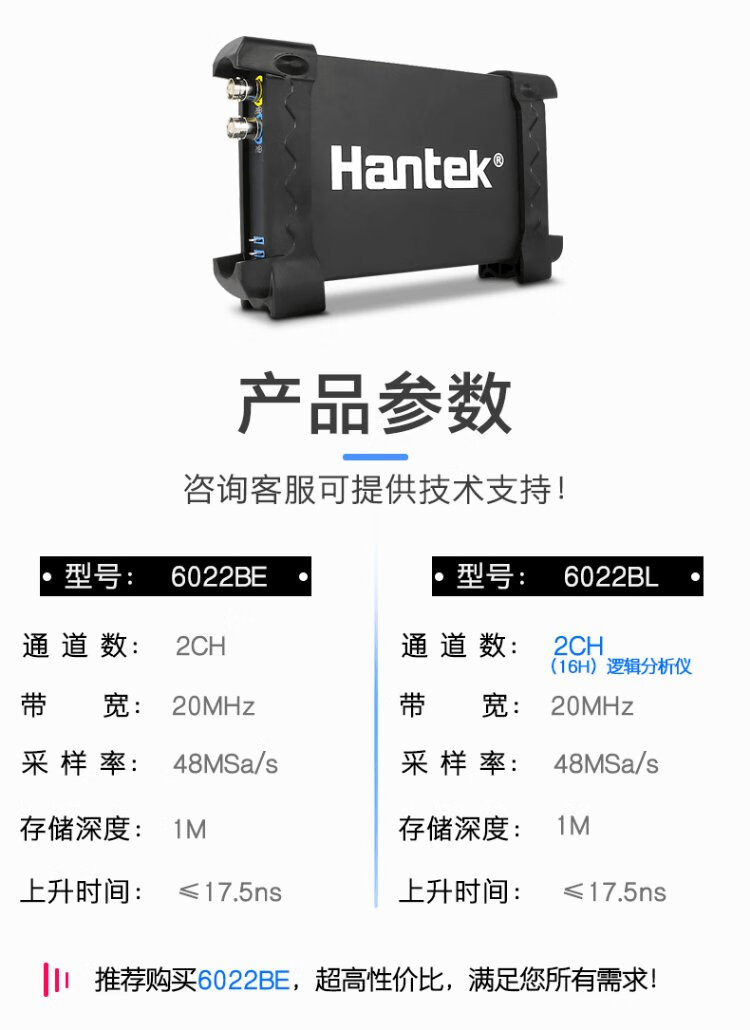 Hantek Hantek 6022BE/6212/6052 virtual oscilloscope oscilloscope instrument with USB logic analyzer 6022BE (dual channel) bandwidth 20M