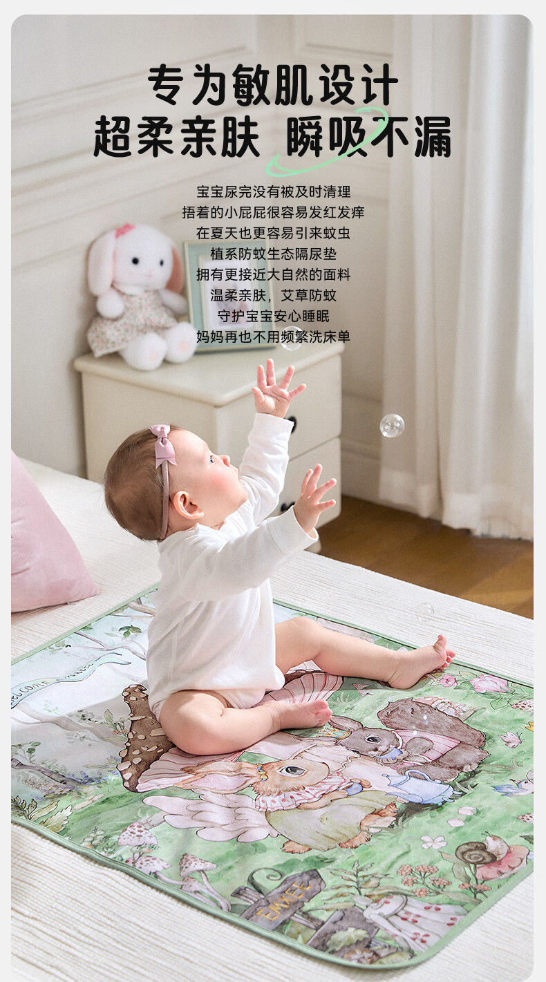 EMXEE diaper pad washable newborn diaper pad baby diaper bed Swan Dance 70x90cm