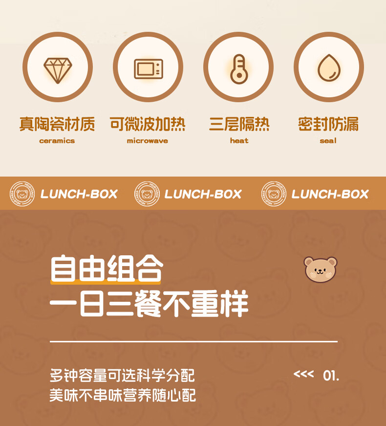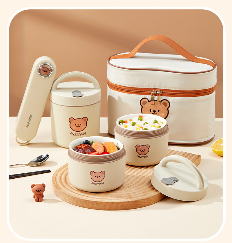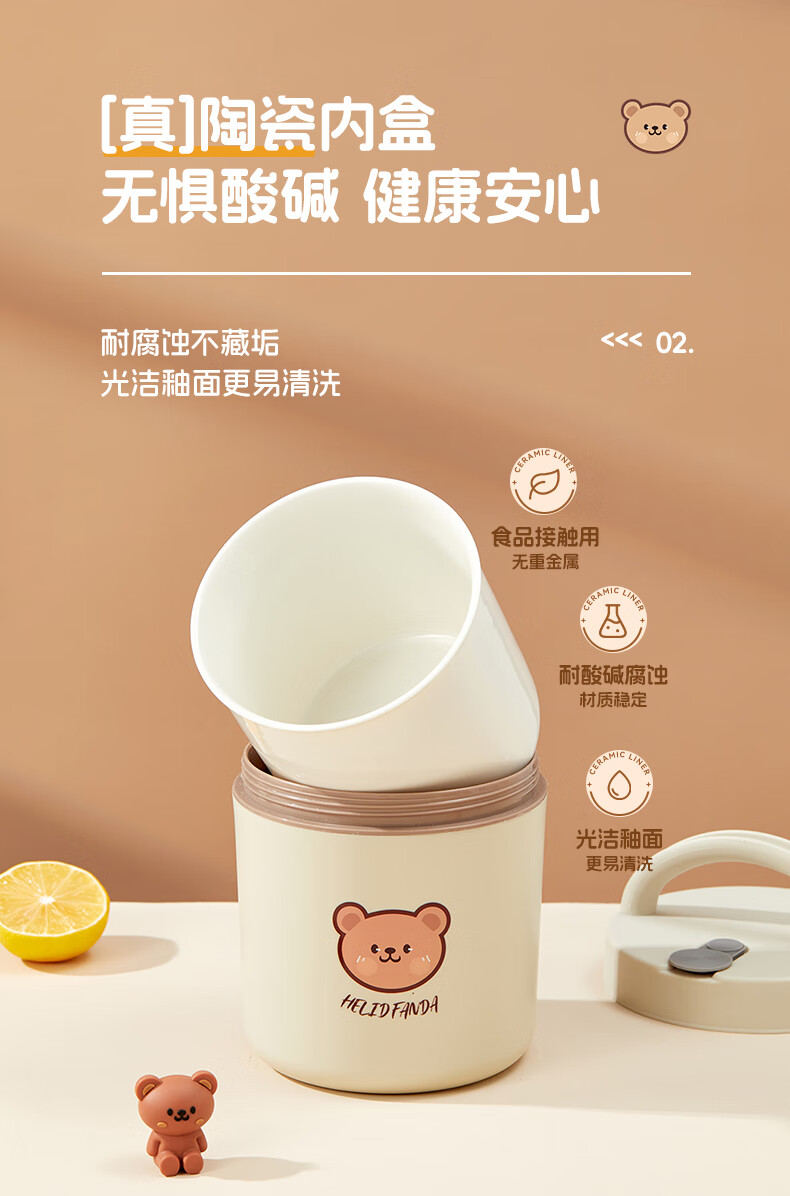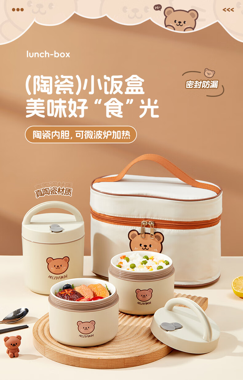WORTHBUY Insulated Lunch Box Microwaveable Ceramic Lunch Box Portable Lunch Box Set Office Workers and Students Bringing Rice Tool Rice White Extra Large 650ml