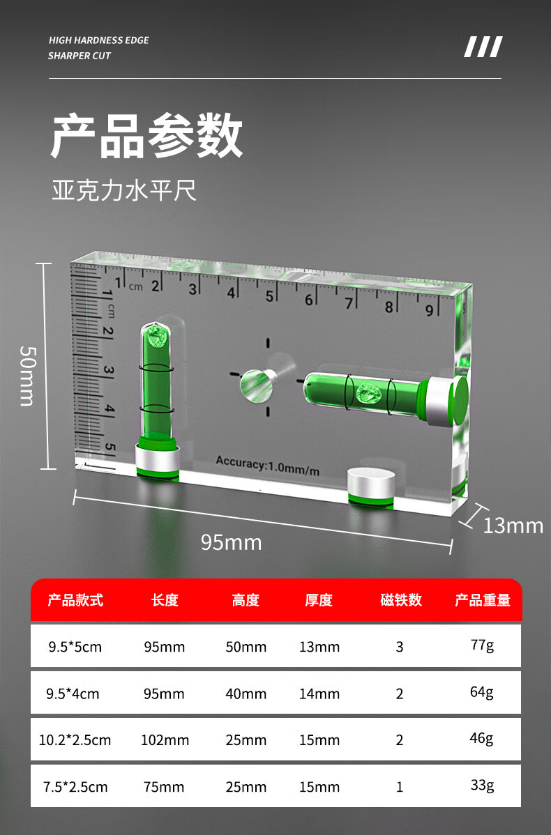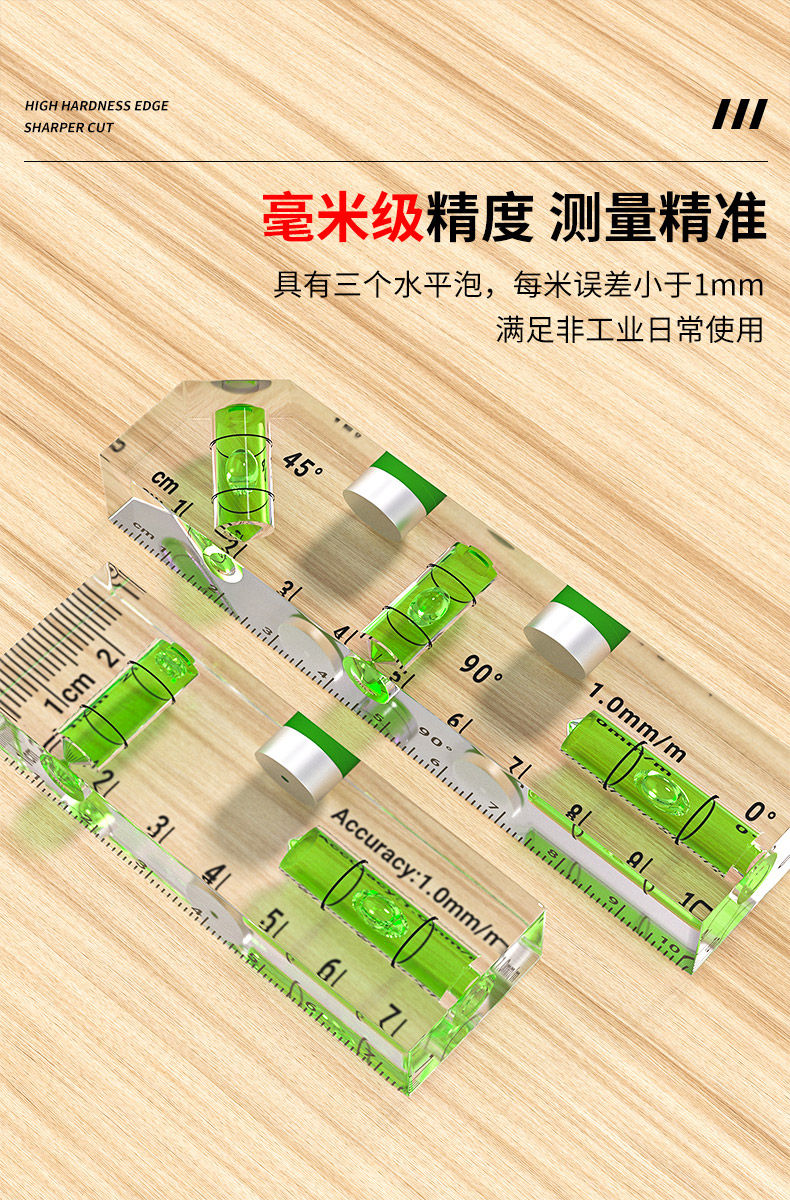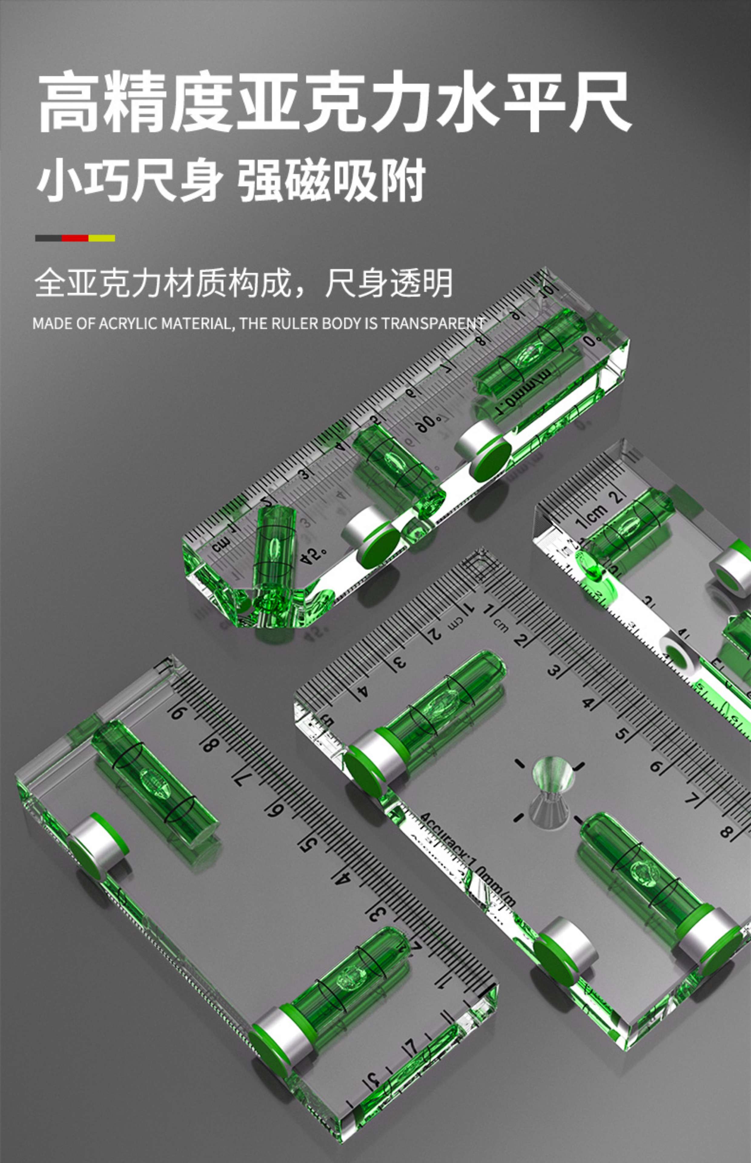Acrylic mini small level high-precision small magnetic household high-precision strong magnetic level level imported from Germany Mini acrylic 75*25*15MM horizontal+