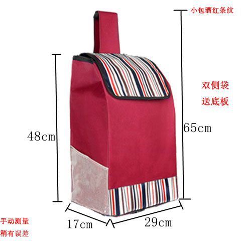 Spare bag for grocery shopping cart, extra large waterproof Oxford bag trolley, small trolley, shopping cart thickened bag, universal, small size - green stripe (with bottom plate)