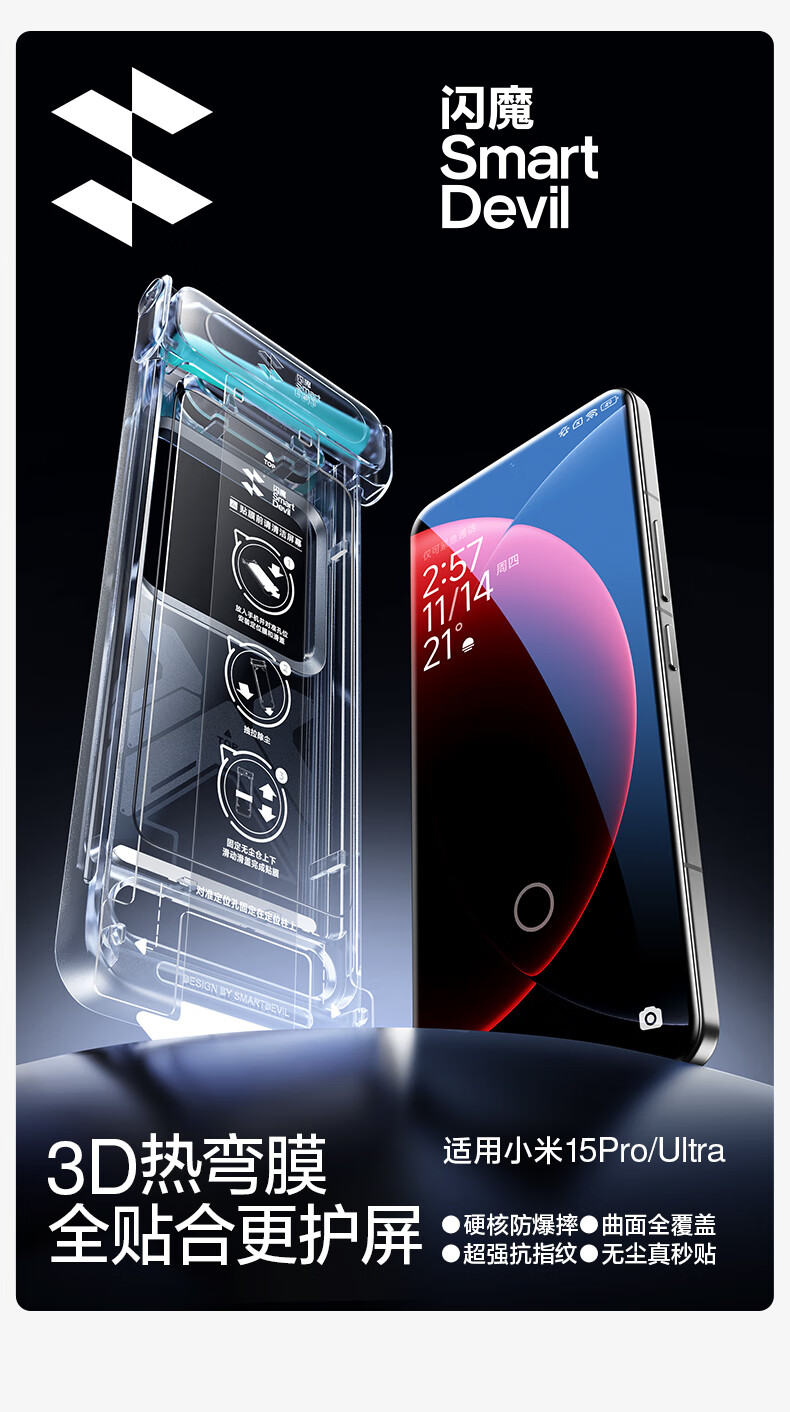 Flash Magic 3D Hot Bending Film丨Universal 15sPro suitable for Xiaomi 15Pro/Ultra tempered film Xiaomi15spro mobile phone film ultrasonic unlocking dust-free chamber protective film 1 piece pack*hot bending full adhesive film 3D full coverage*original screen smooth touch universal Xiaomi 15Pro/15Ultra
