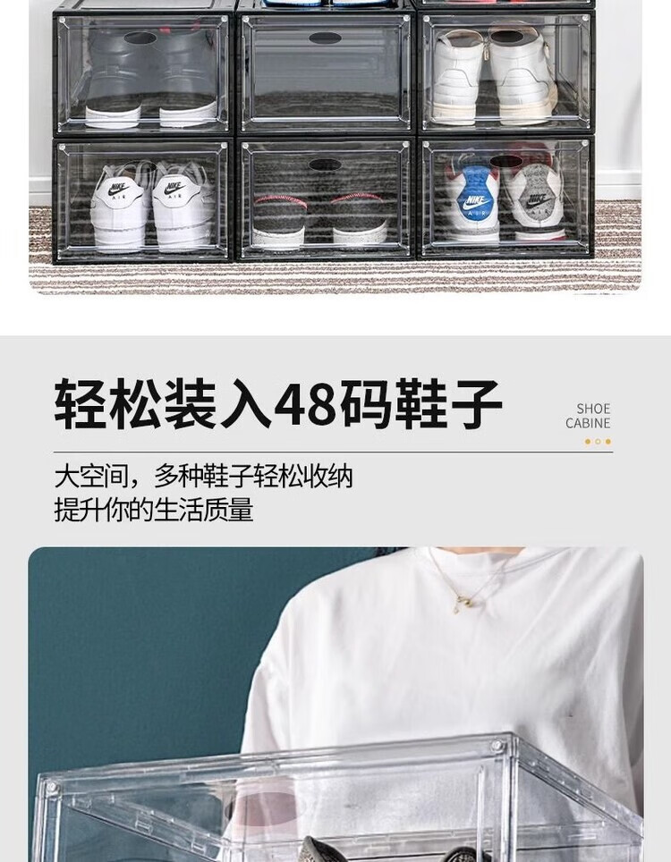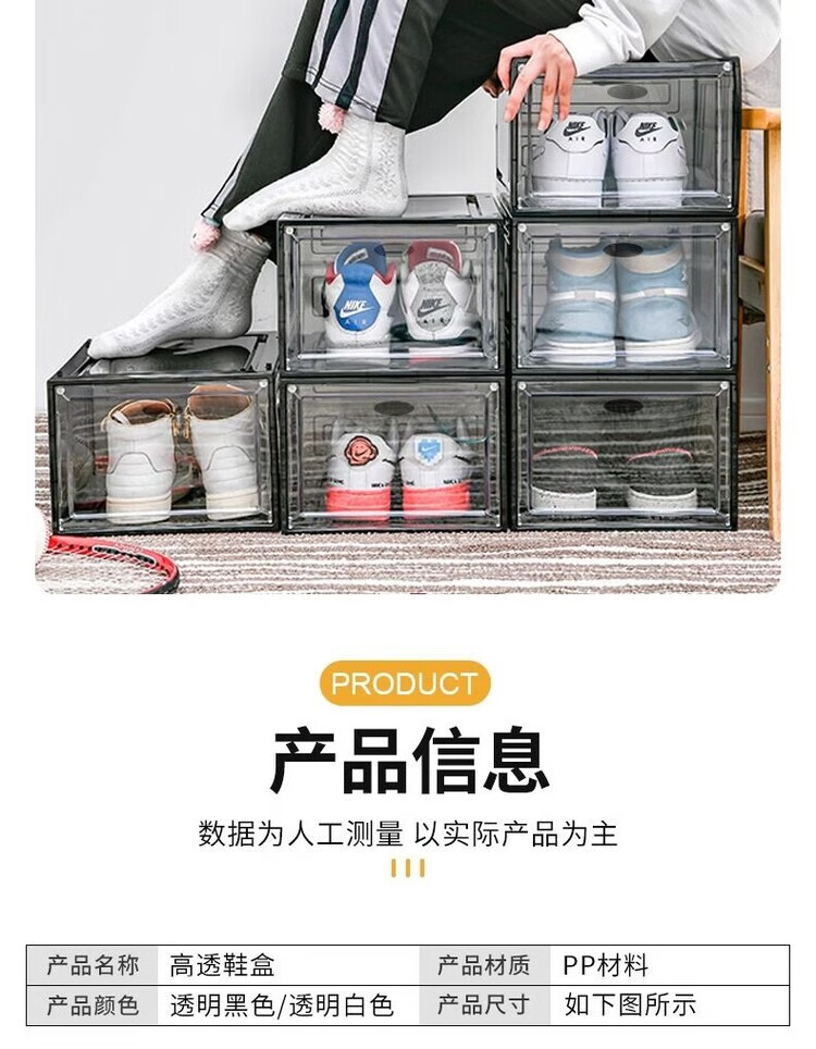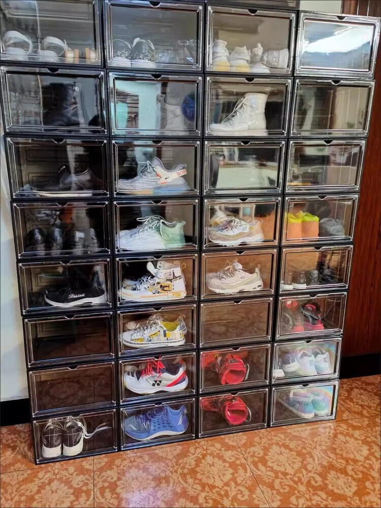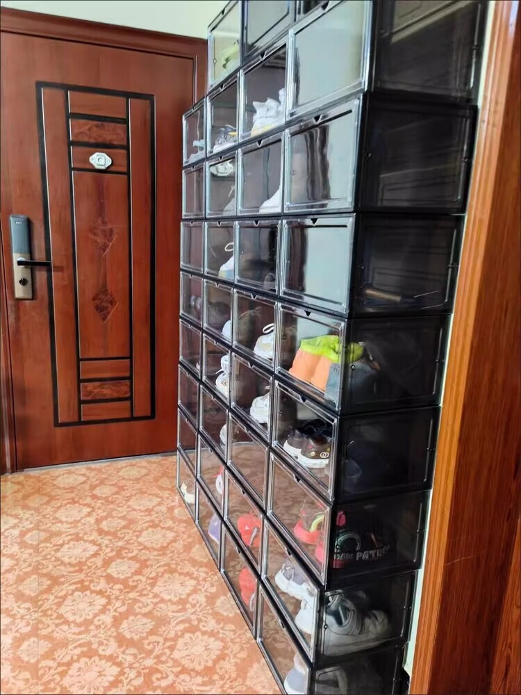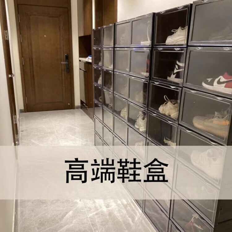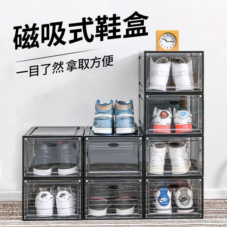 Raft core acrylic shoe box magnetically transparent transparent household shoe storage box dust-proof and oxidation-proof thickened space shoe rack shoe cabinet front door double magnetic suction multiple pieces more cost-effective transparent black 1 pack 48 size high-top shoes