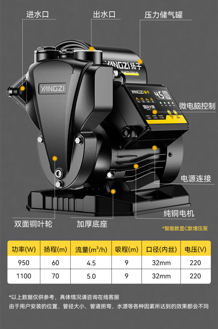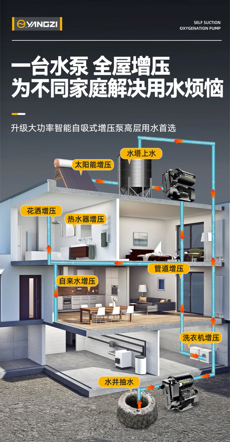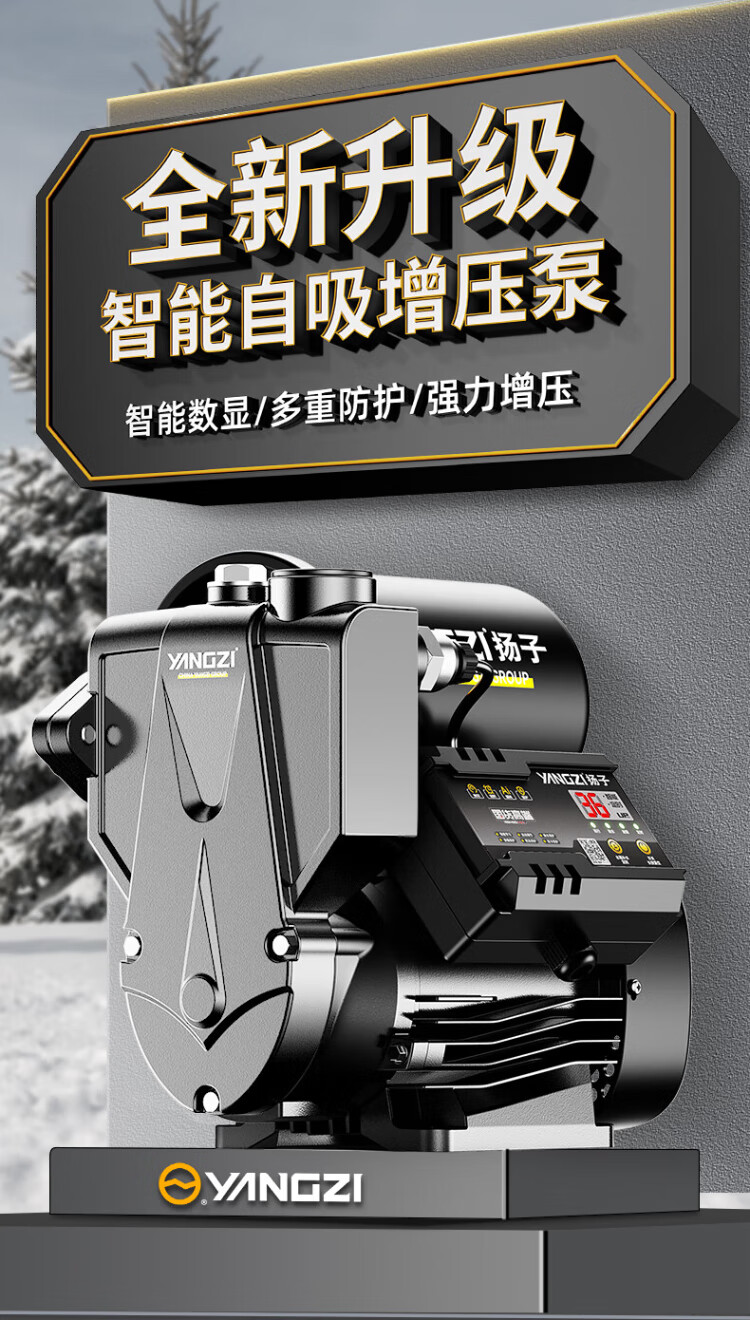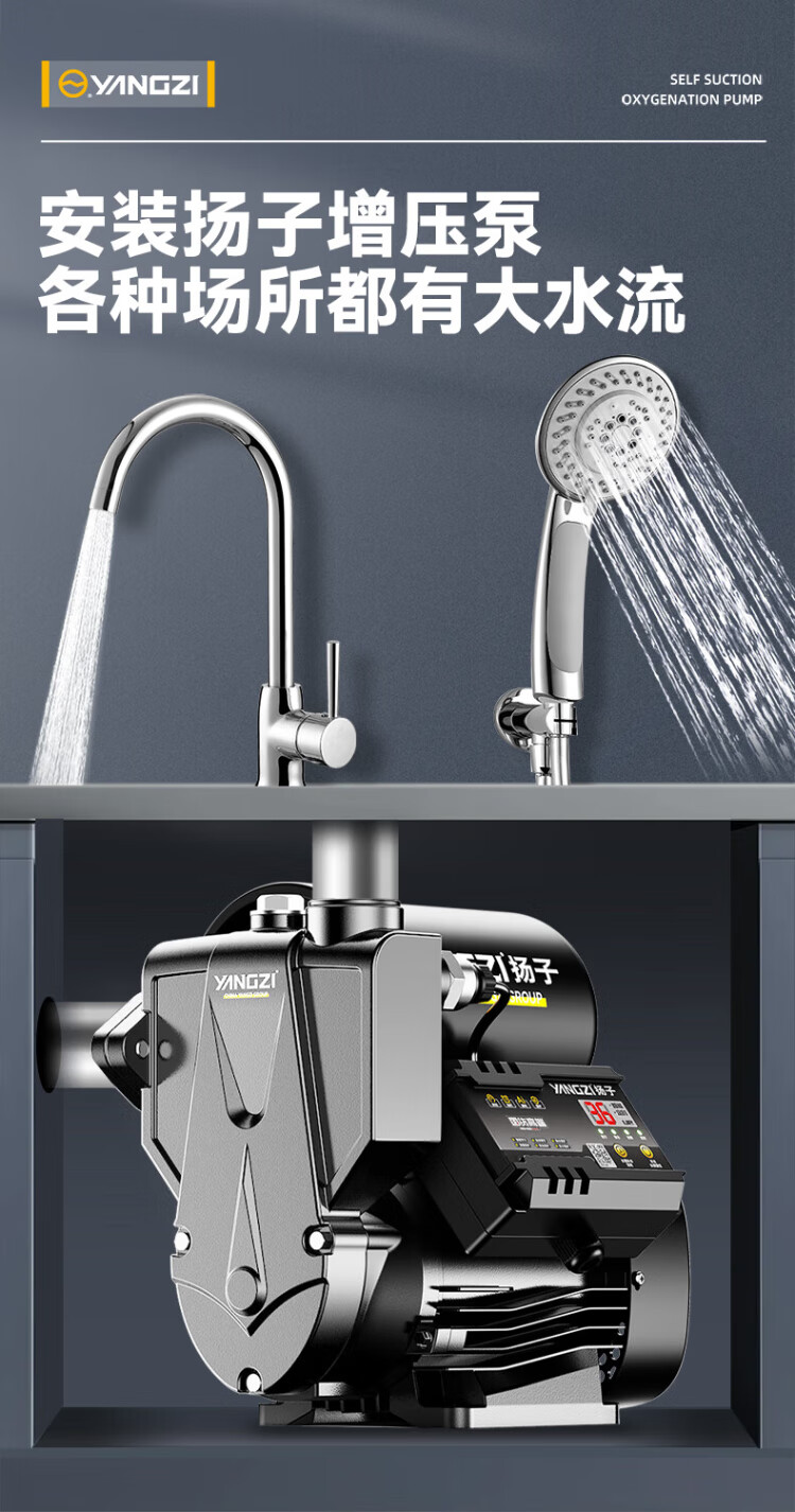 Yangzi booster pump household fully automatic booster self-priming pump bass water heater solar tap water whole house pump 480 intelligent adjustment-free digital display self-priming pump