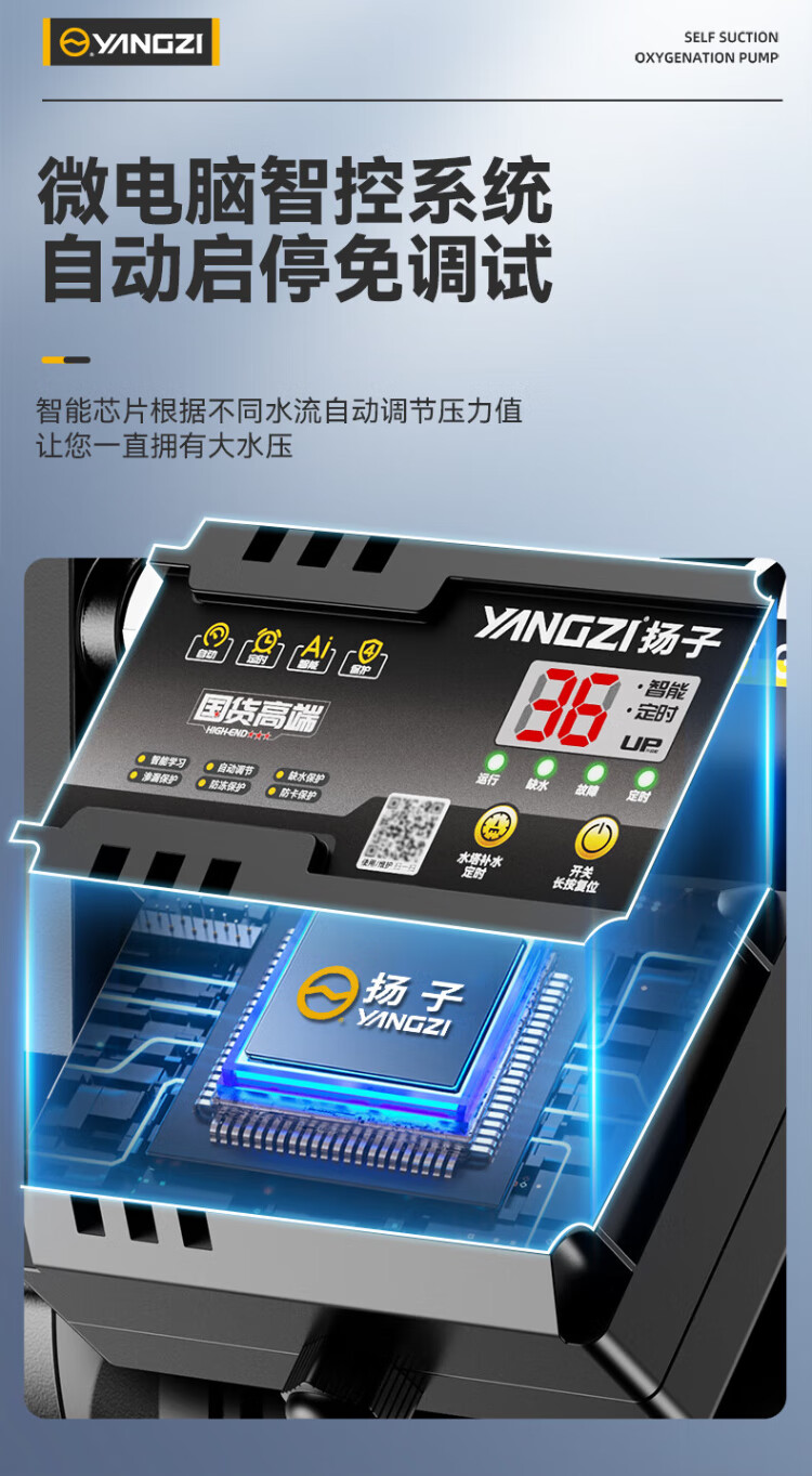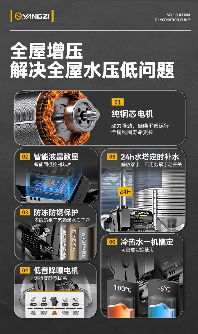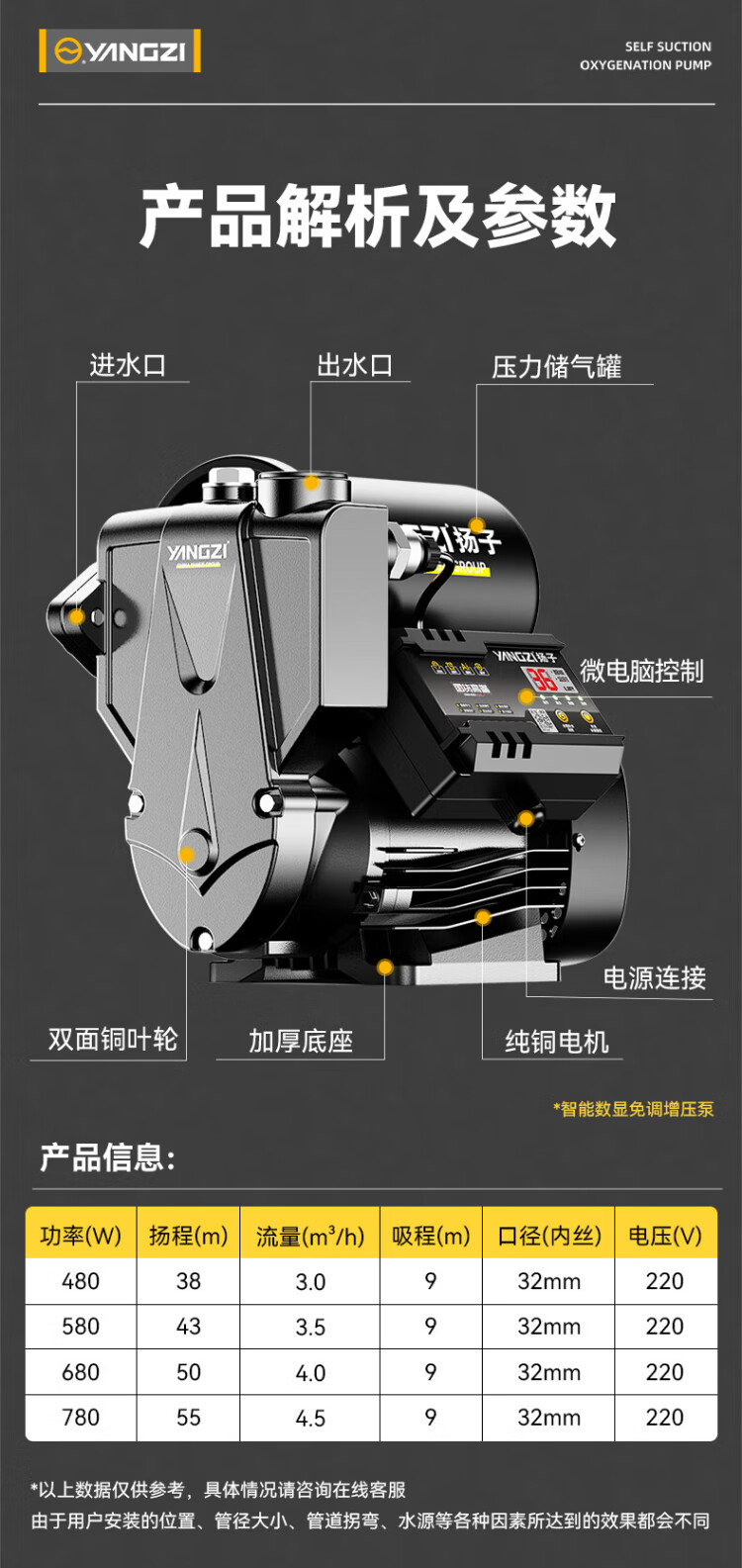 Yangzi booster pump household fully automatic booster self-priming pump bass water heater solar tap water whole house pump 480 intelligent adjustment-free digital display self-priming pump