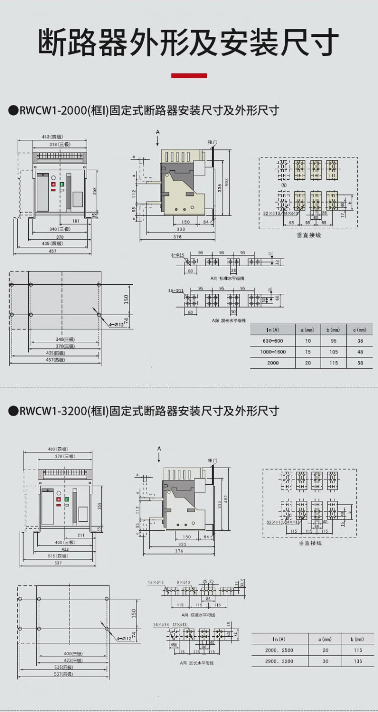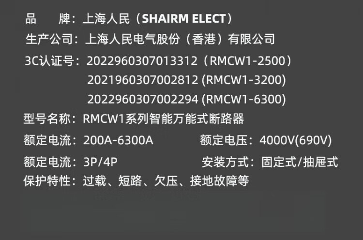 Shanghai People's RMCW1-2000 frame circuit breaker 1600a 3200A switch 1000A 630A drawer type 3P 4000A