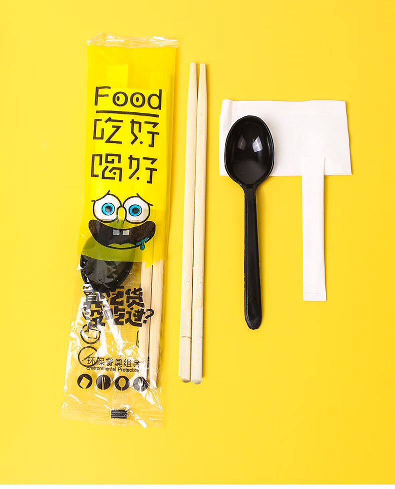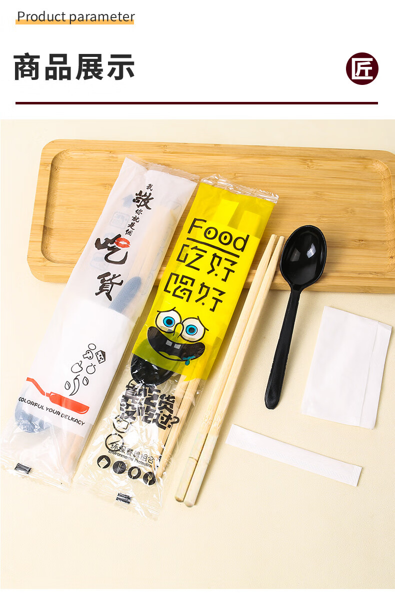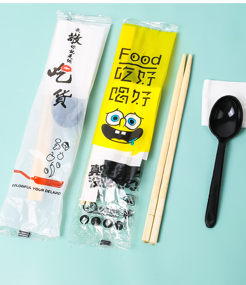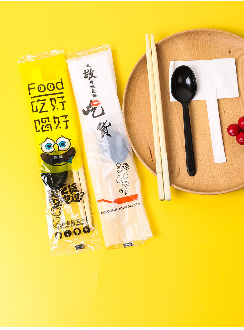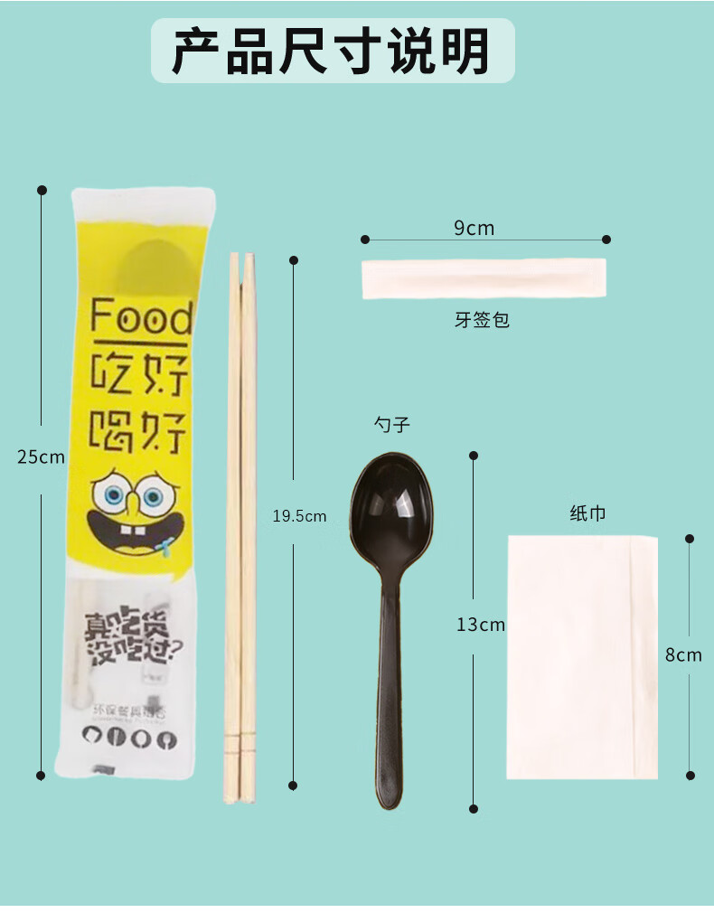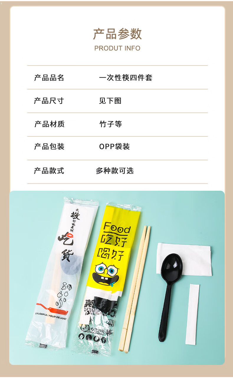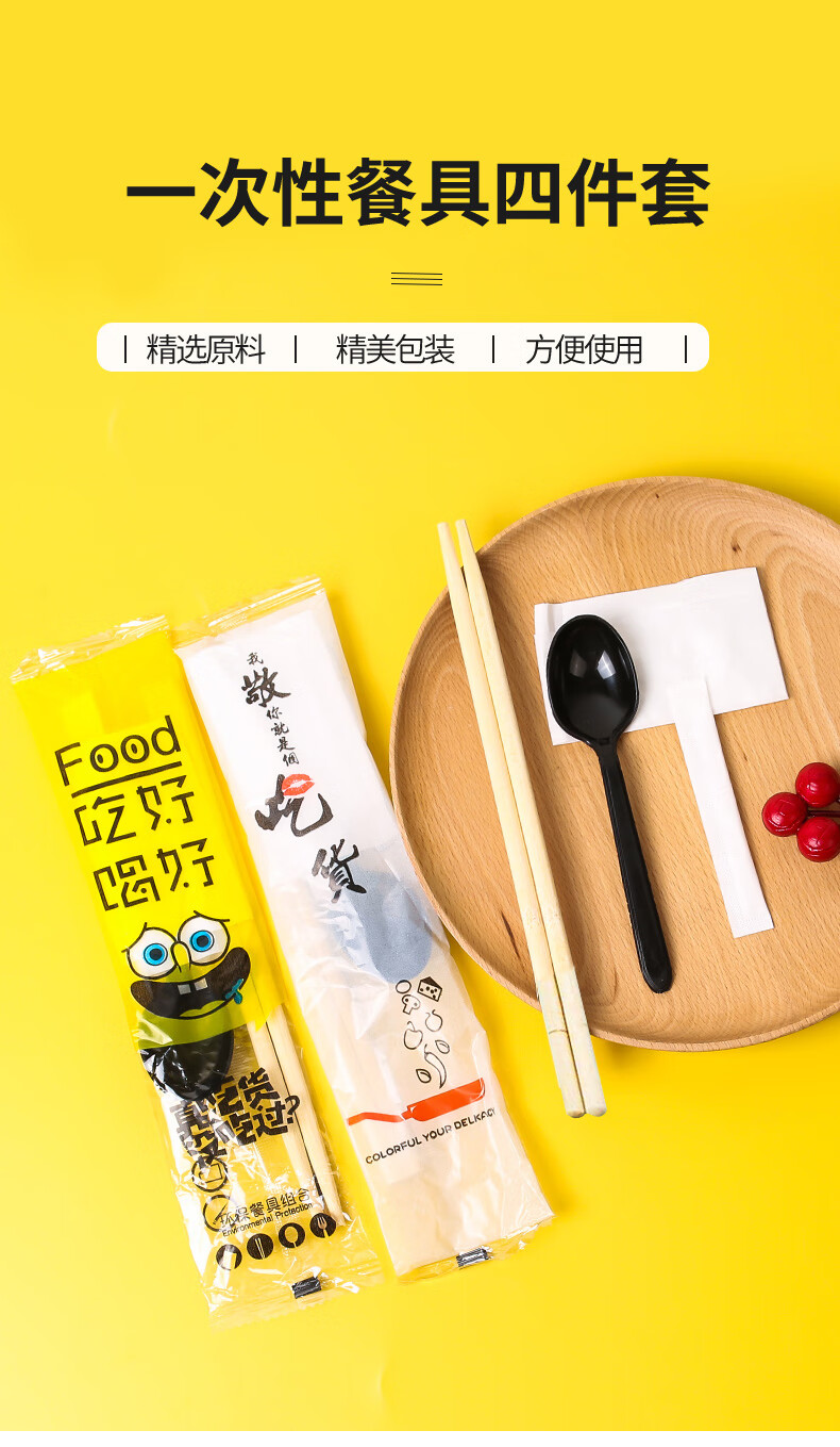 Disposable four-piece set of chopsticks, takeaway packaging tableware, restaurant canteen, commercial, household, convenient and hygienic, round chopsticks, 100 packs
