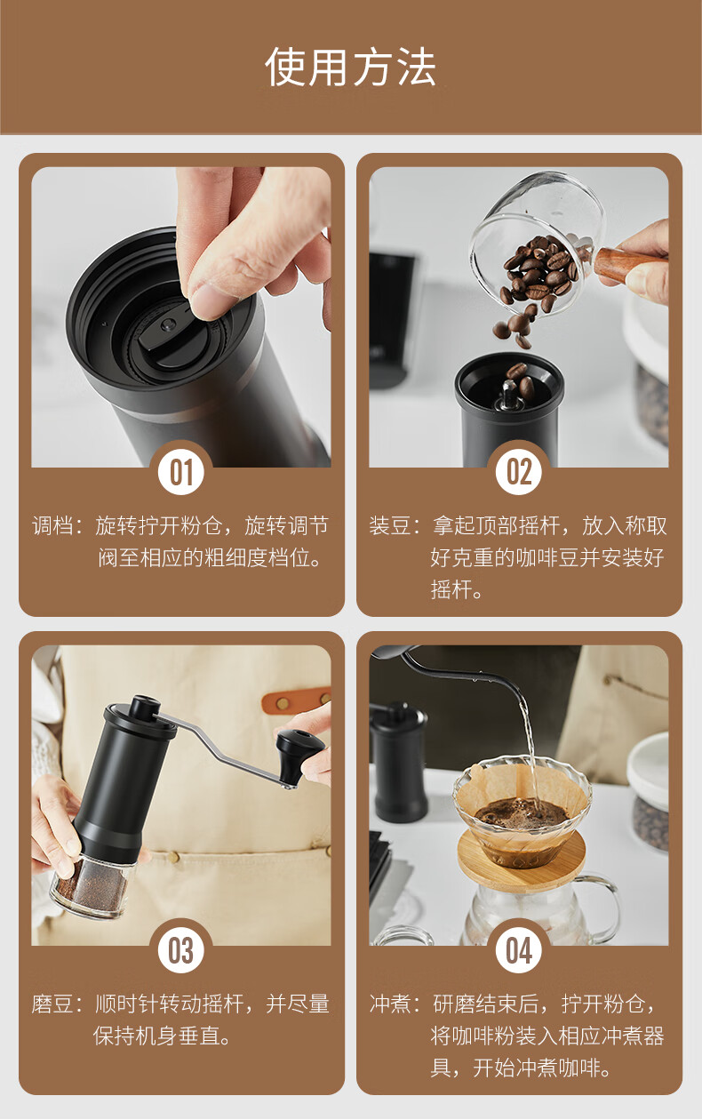 CLITON hand grinder, coffee bean grinder, hand grinder, portable coffee machine, manual grinder, automatic grinder, Yahei-internal adjustment version, free cleaning brush
